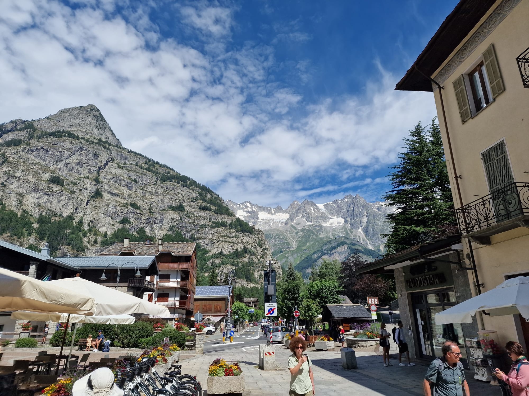 Die erste Etappe startete in Courmayeur. Der Ort liegt in Italien, genau gegenüberliegend von Chamonix, aus unserer Sicht also südlich dem Mont Blanc-Massiv. Zu unserem Glück fuhr ein Bus durch den Tunnel und brachte uns so zu unserem Startpunkt.