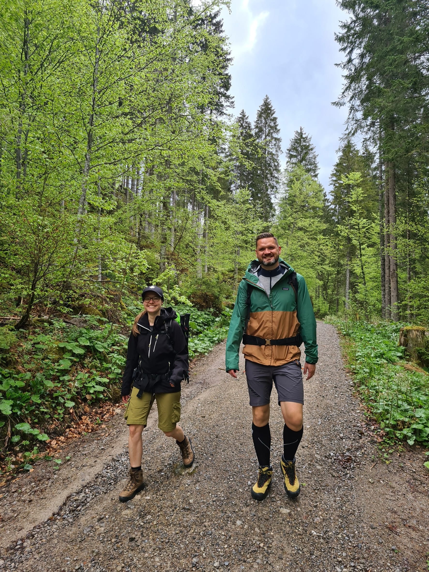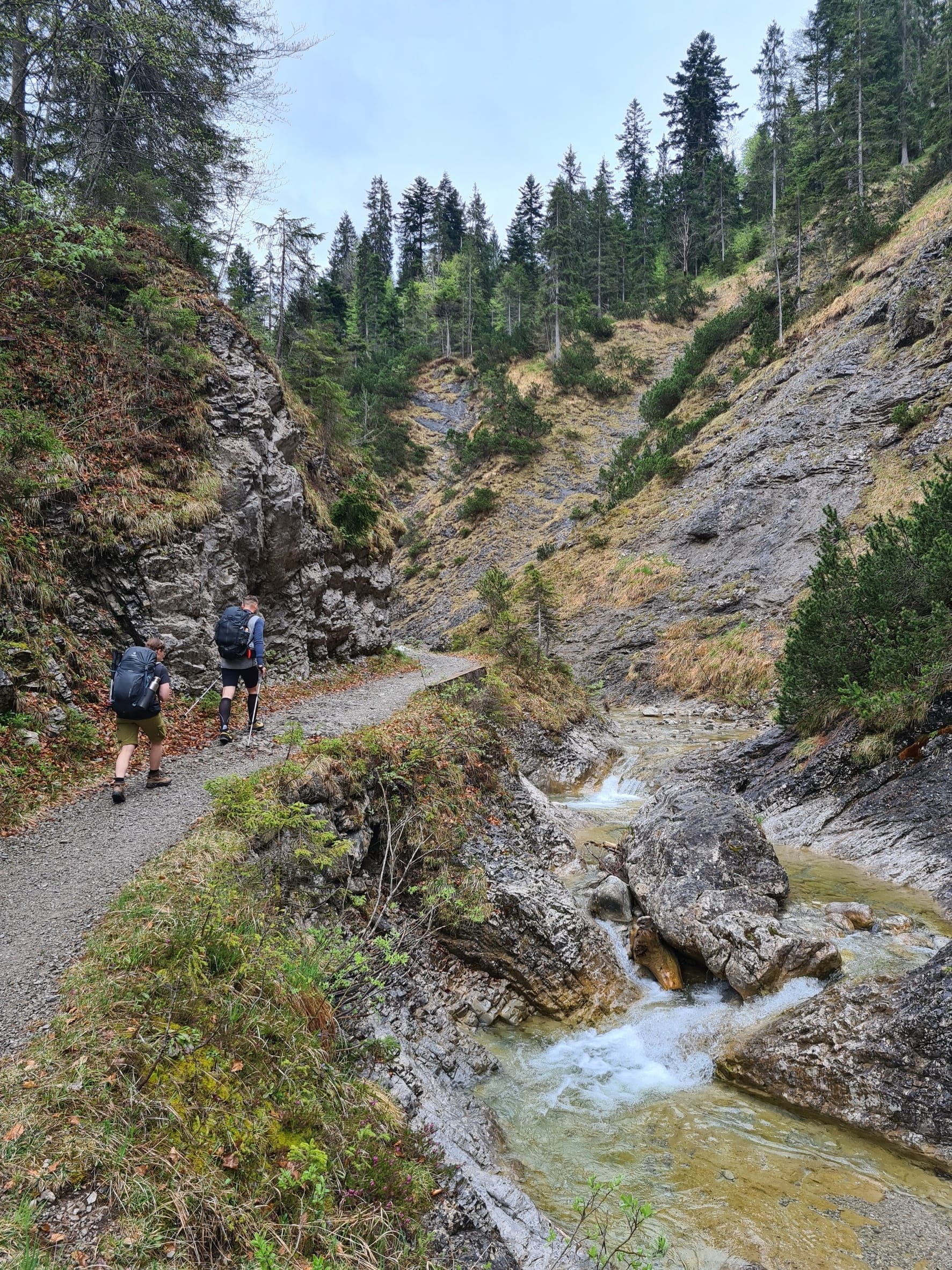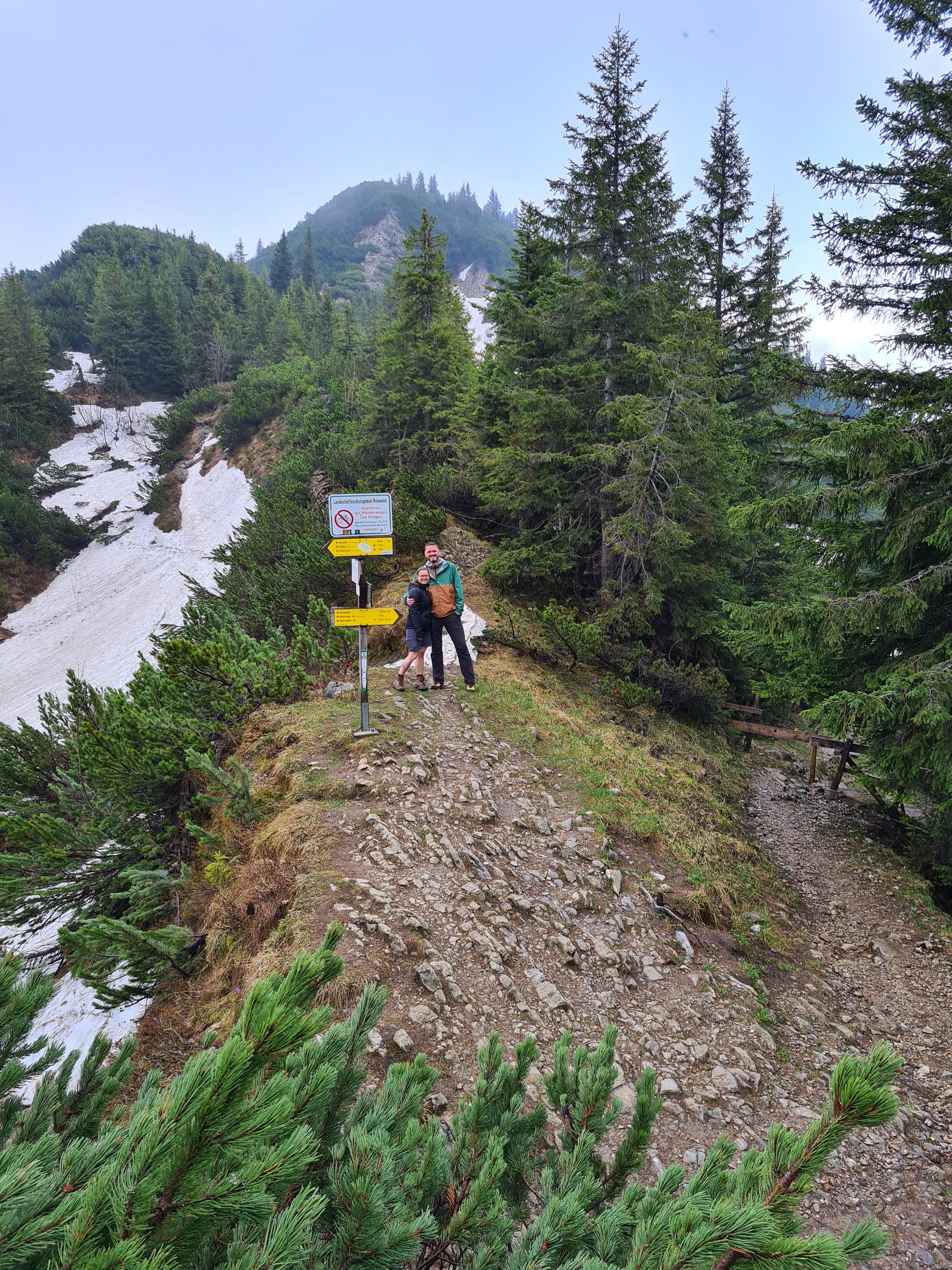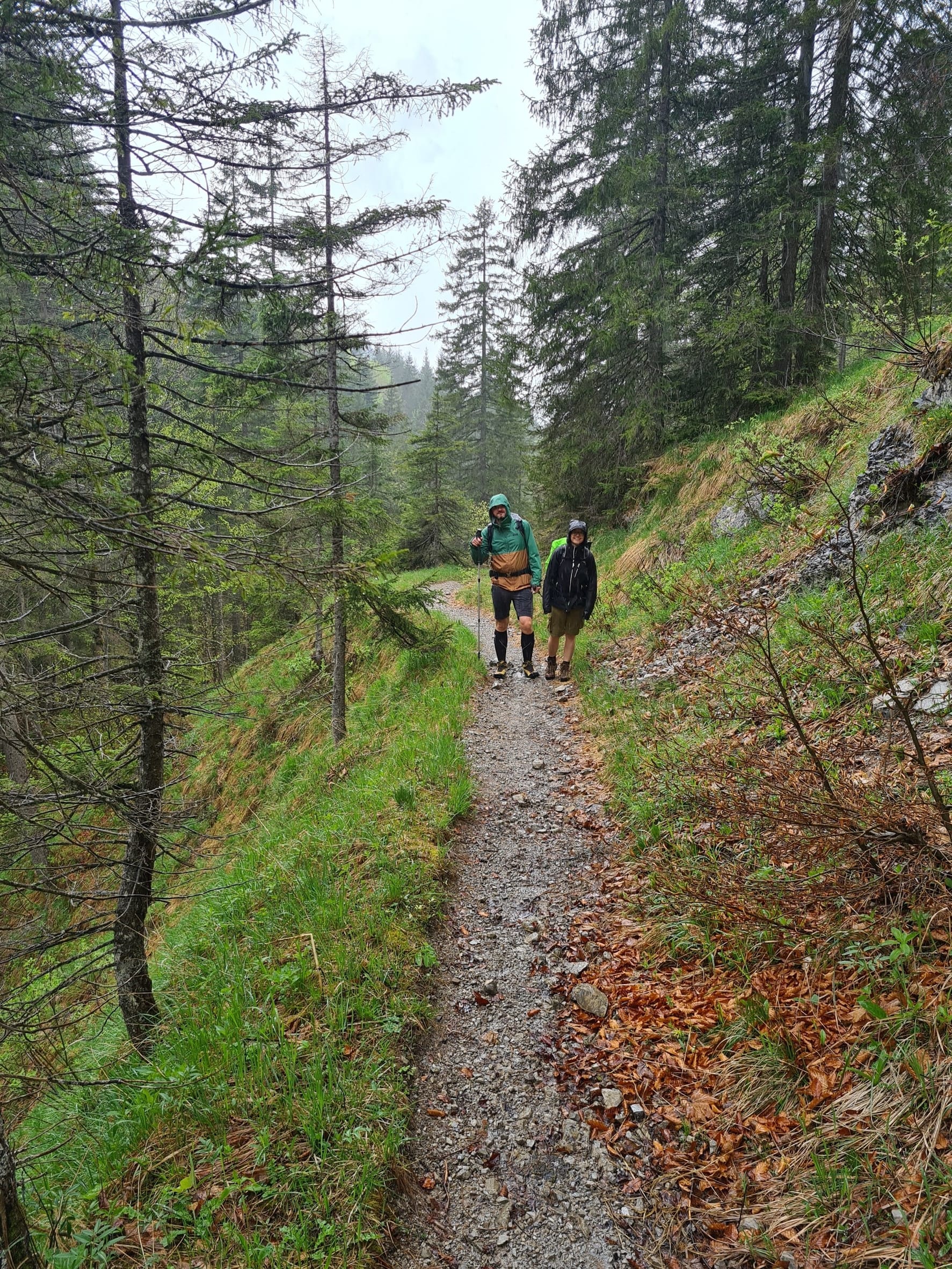 Wir kamen ziemlich genau 12 Uhr am Spitzingsee an und hatten kein Problem einen Parkplatz für die kommenden zwei Tage zu finden. Und dann ging es auch schon los, endlich wieder, mit den gewonnenen Freunden, gemeinsam in die Berge.