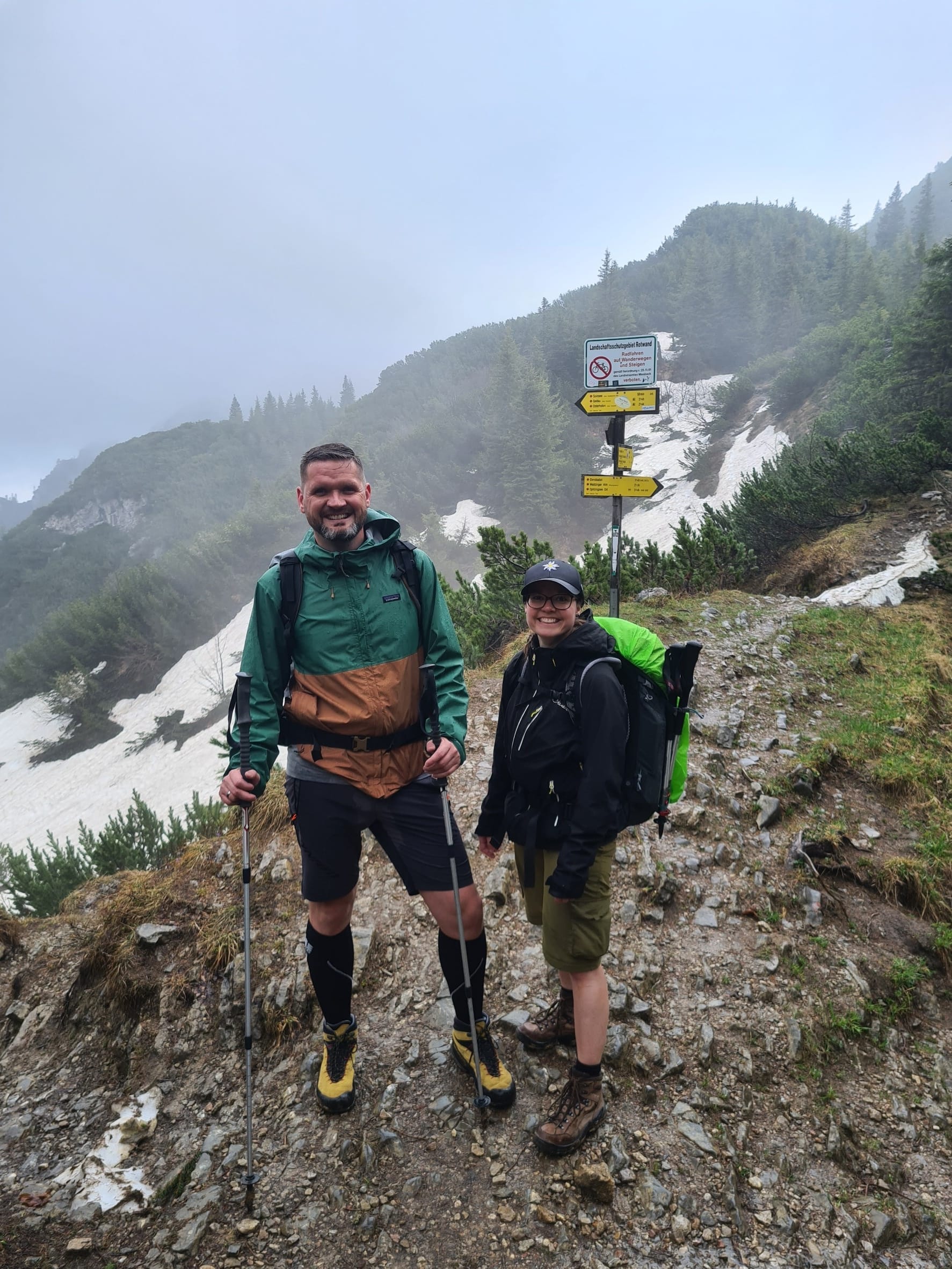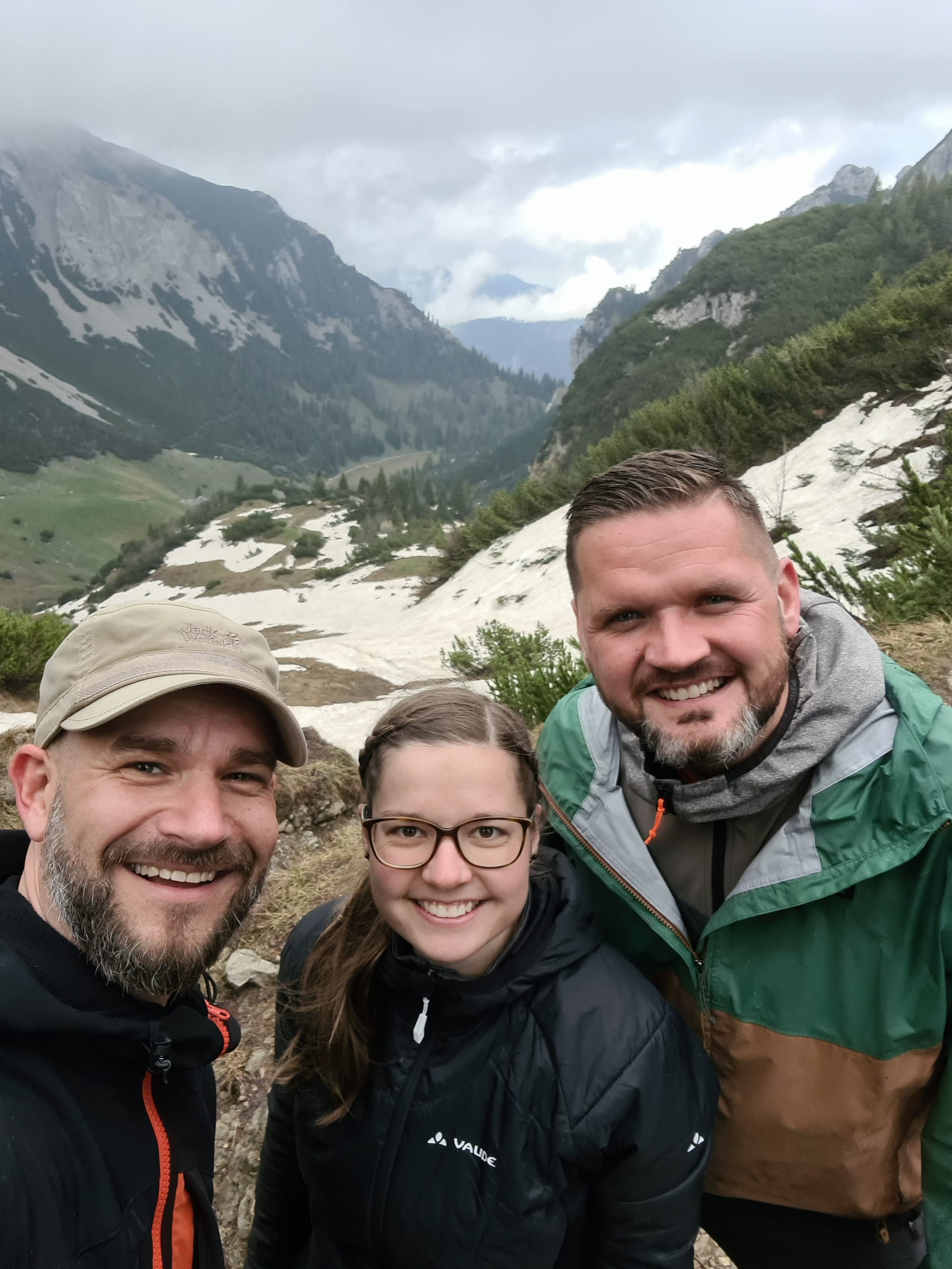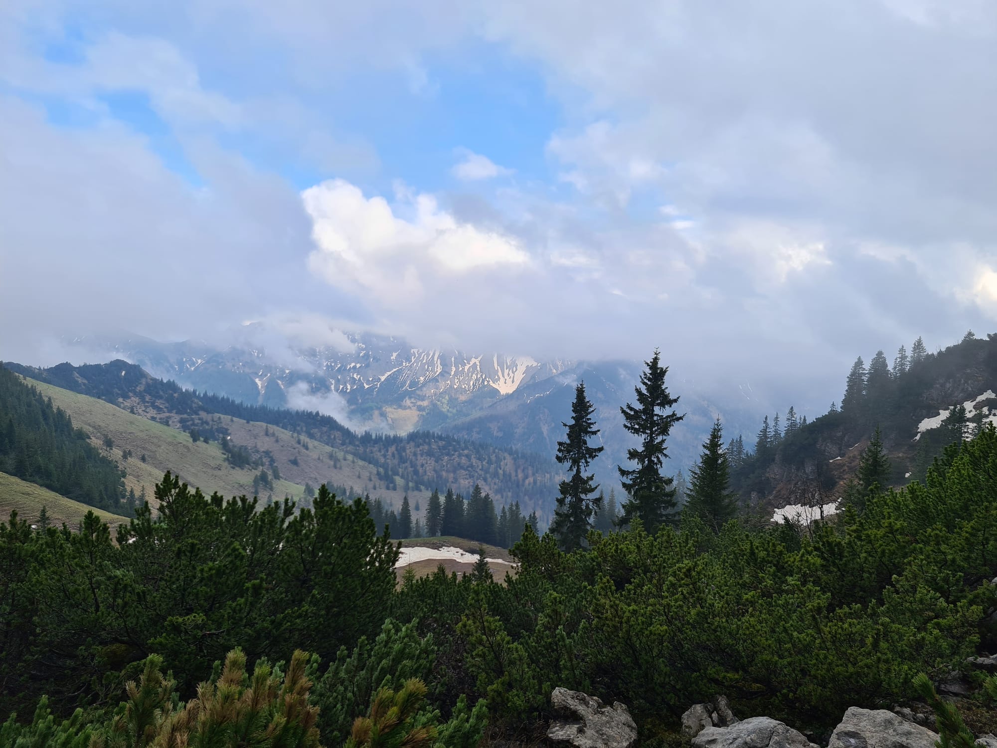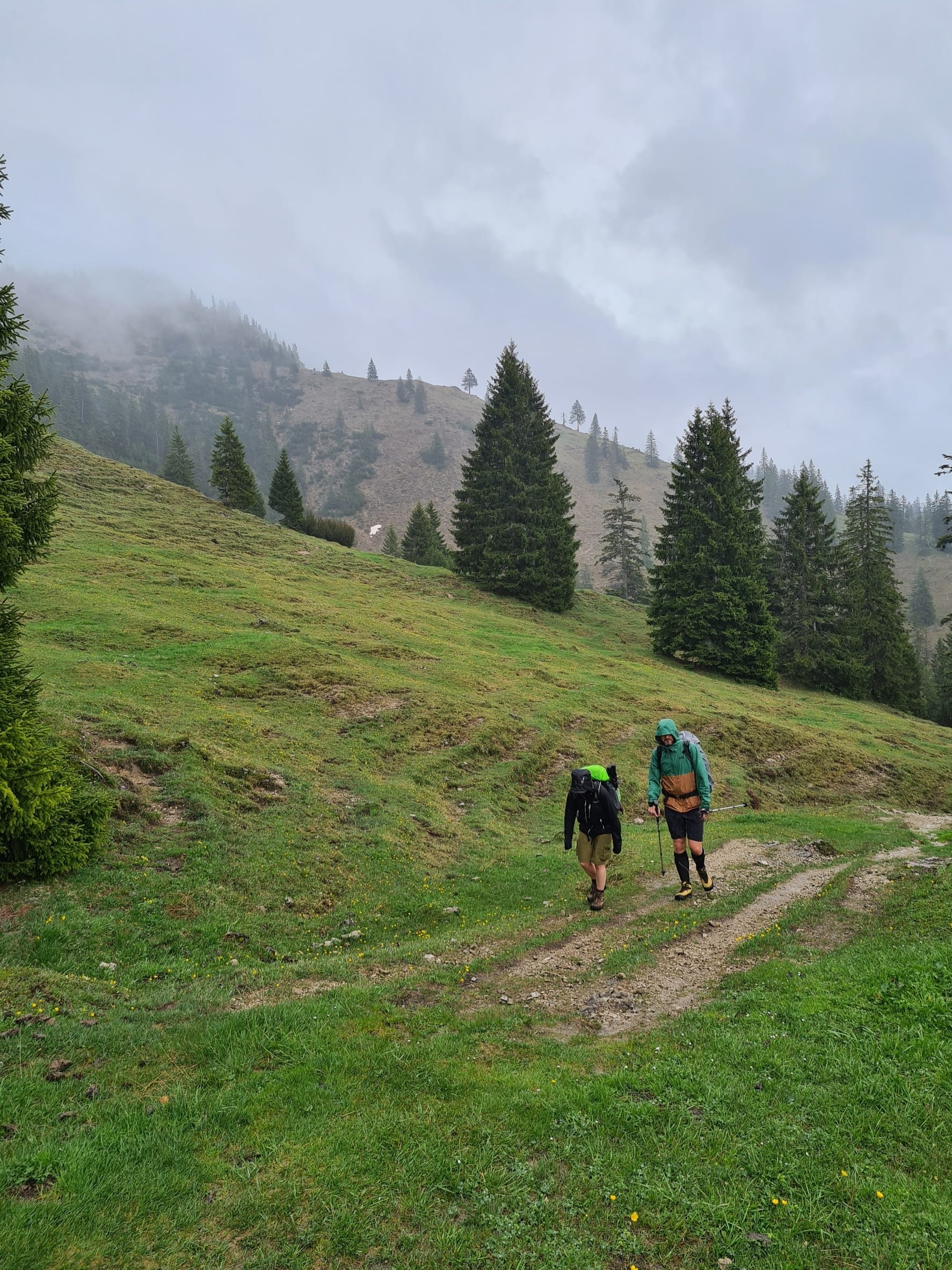 Wir kamen ziemlich genau 12 Uhr am Spitzingsee an und hatten kein Problem einen Parkplatz für die kommenden zwei Tage zu finden. Und dann ging es auch schon los, endlich wieder, mit den gewonnenen Freunden, gemeinsam in die Berge.