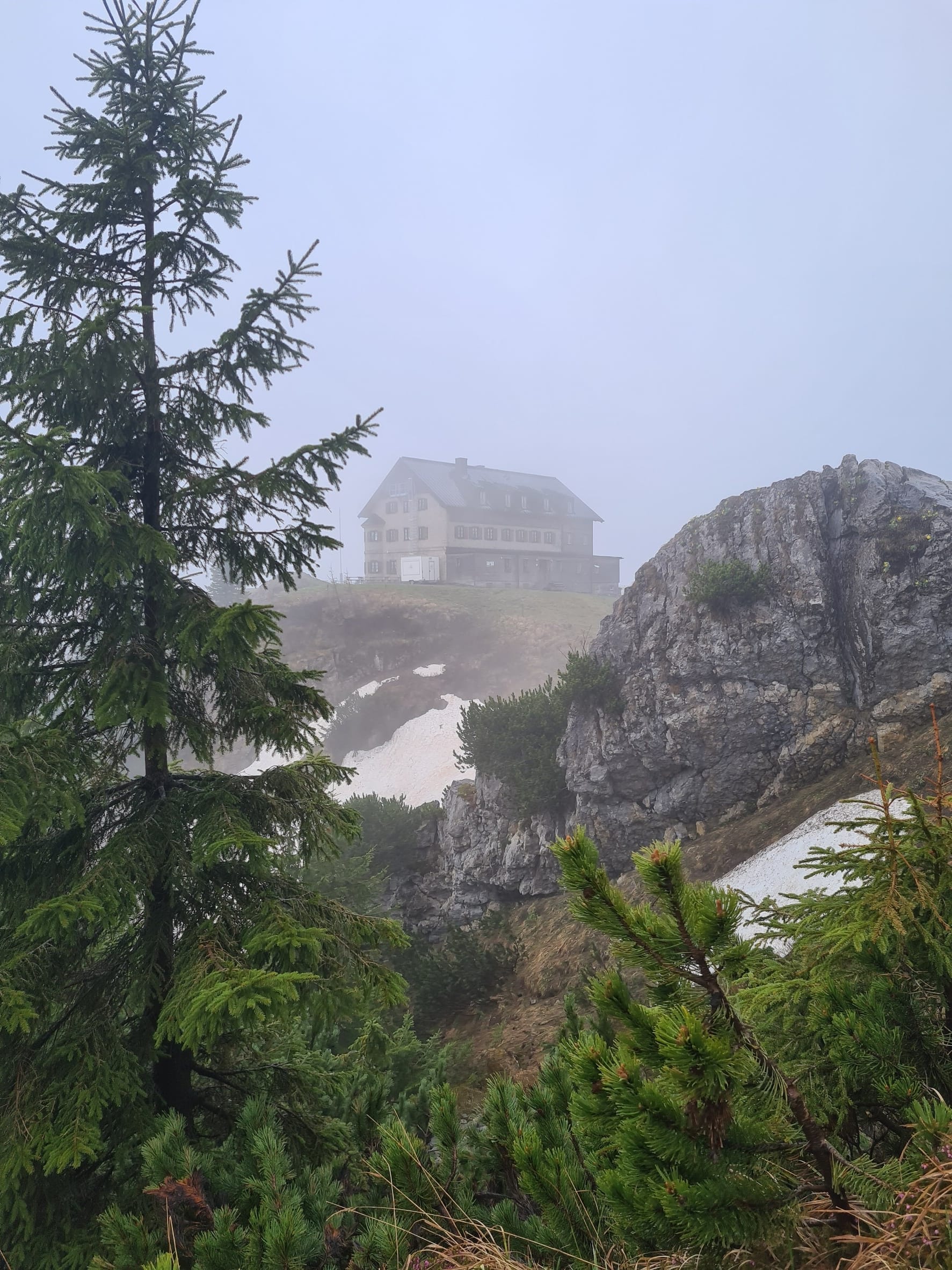 Auf dem Rotwandhaus angekommen, wollten wir noch auf die nahegelegene Auerspitz wandern, doch, obwohl der Regen inzwischen gänzlich aufgehört hatte, waren die Schnee-Bedingungen alles andere als ideal und wir kehrten ohne diesen Gipfel zum Rotwandhaus zurück.