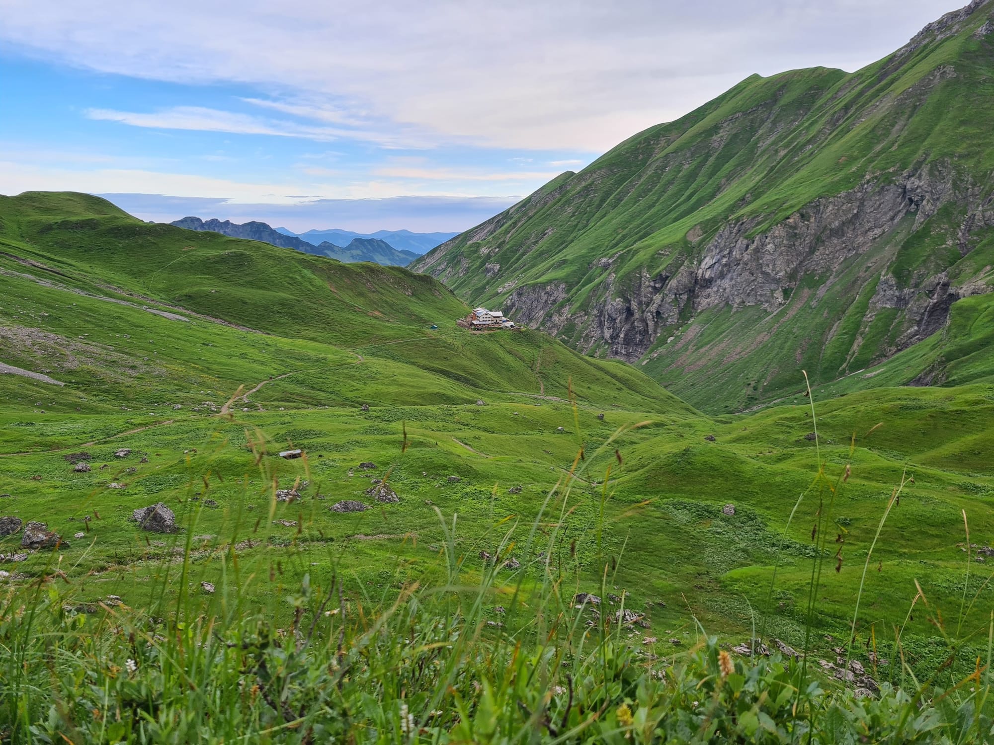 Nach etwas 2 Stunden Aufstieg erreichten wir die Memminger Hütte auf 2.242 Metern.