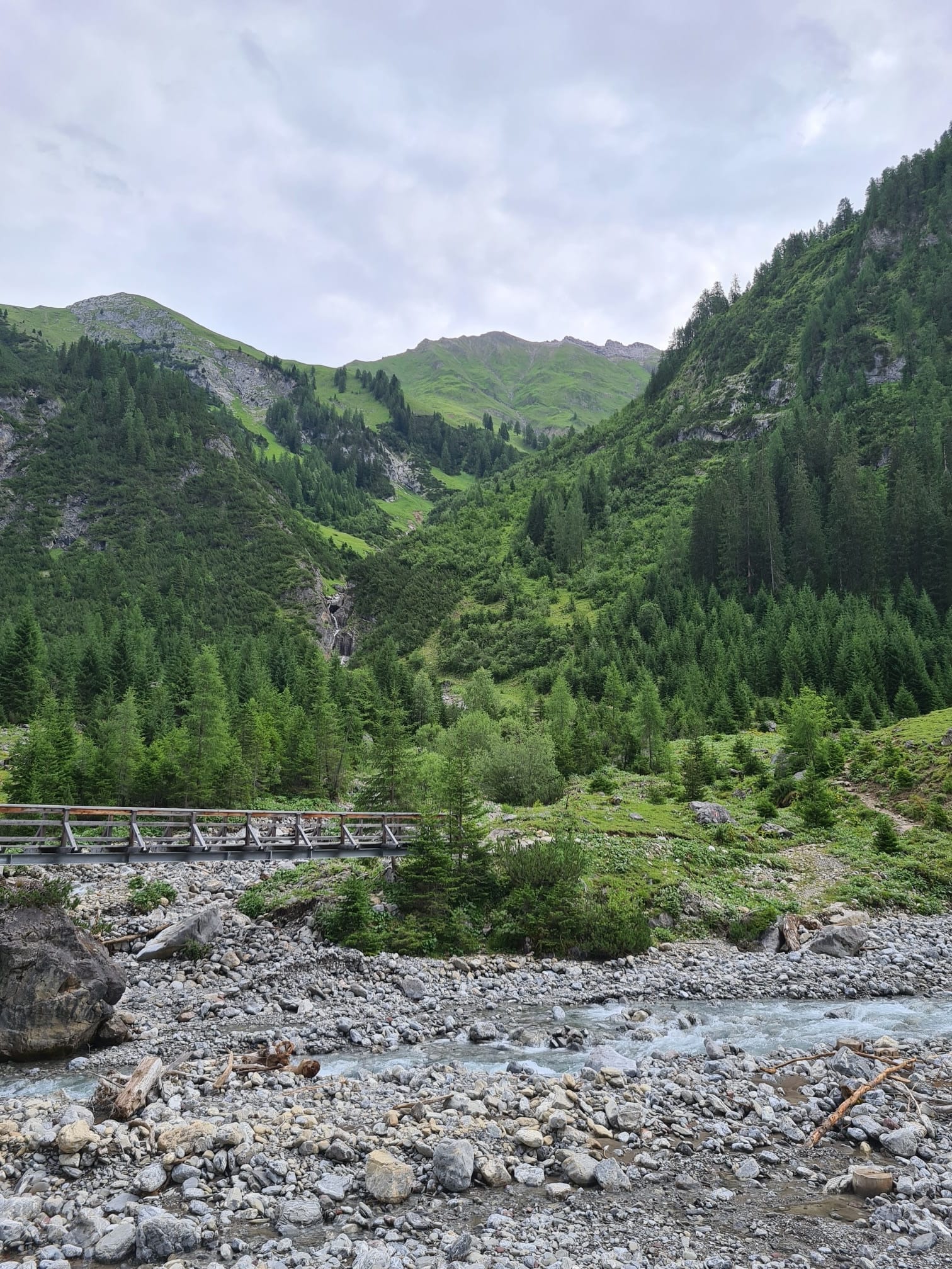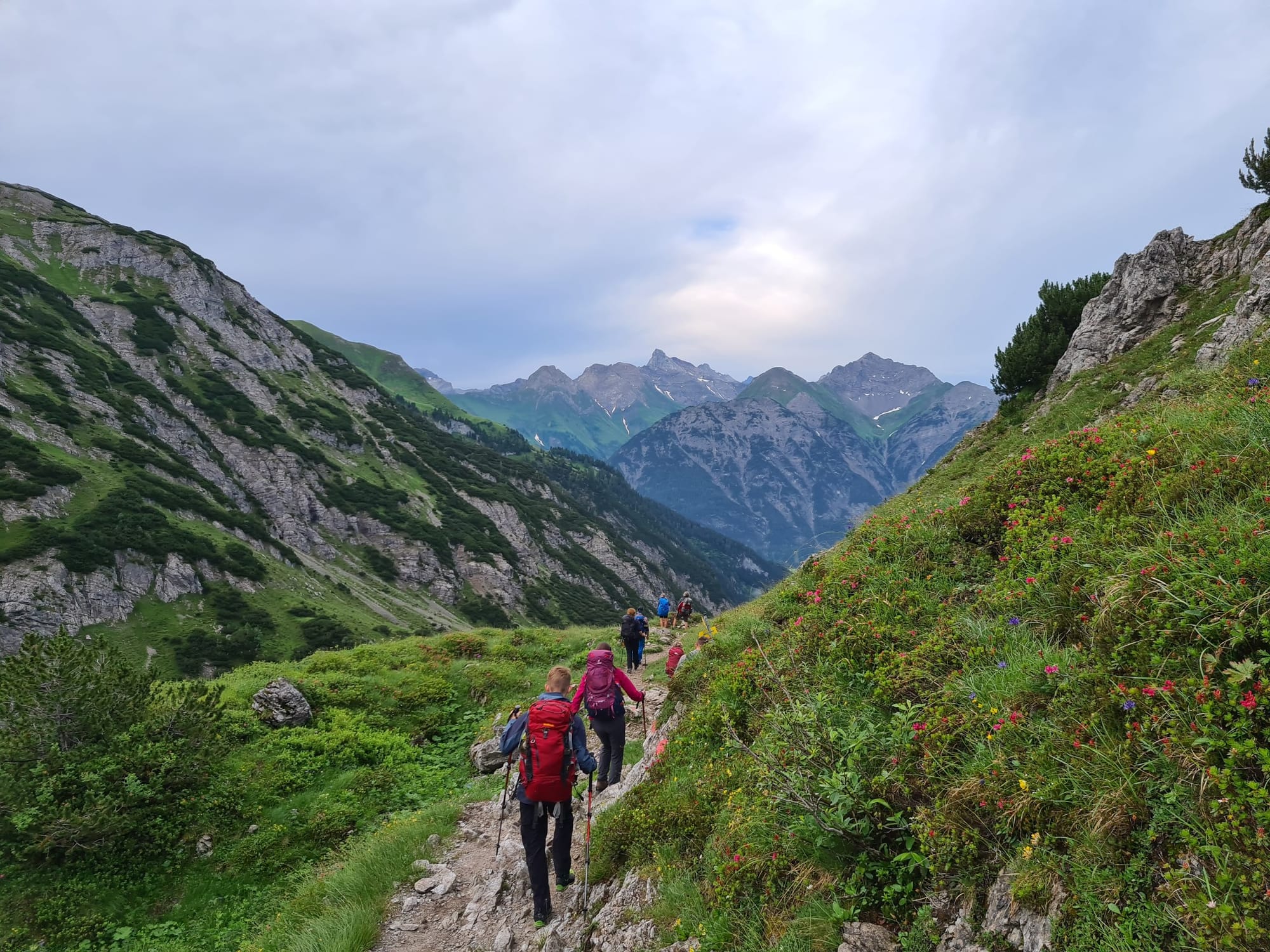 Auf der zweiten Etappe des E5 ging es auf dem ersten Teil von der Kemptner Hütte über das Mädele-Joch hinüber nach Österreich und dann im Tal hinab nach Holzgau. Am Ende des Abschnitts wartete die längste Hängebrücke für Fußgänger in Österreich auf uns.