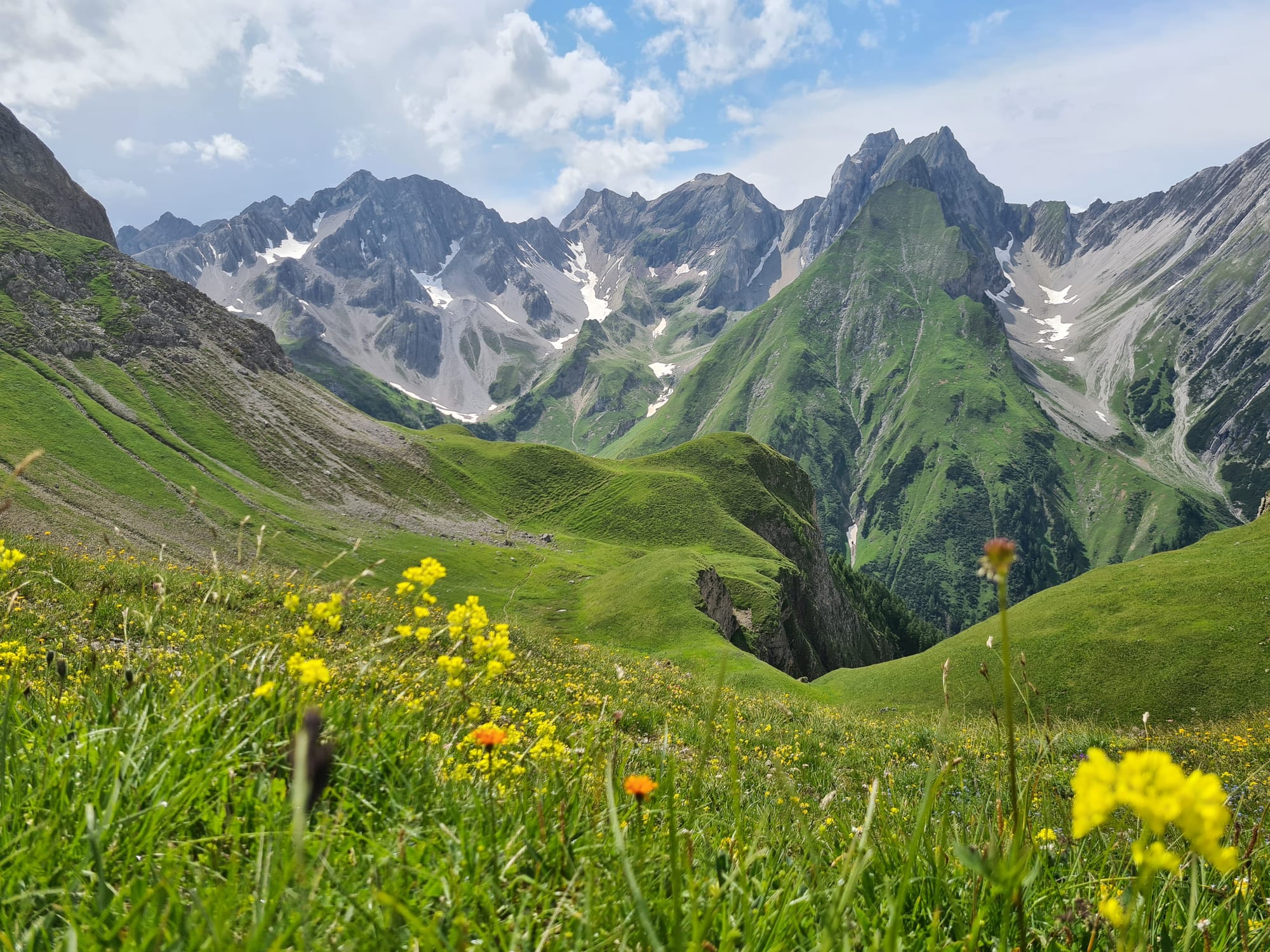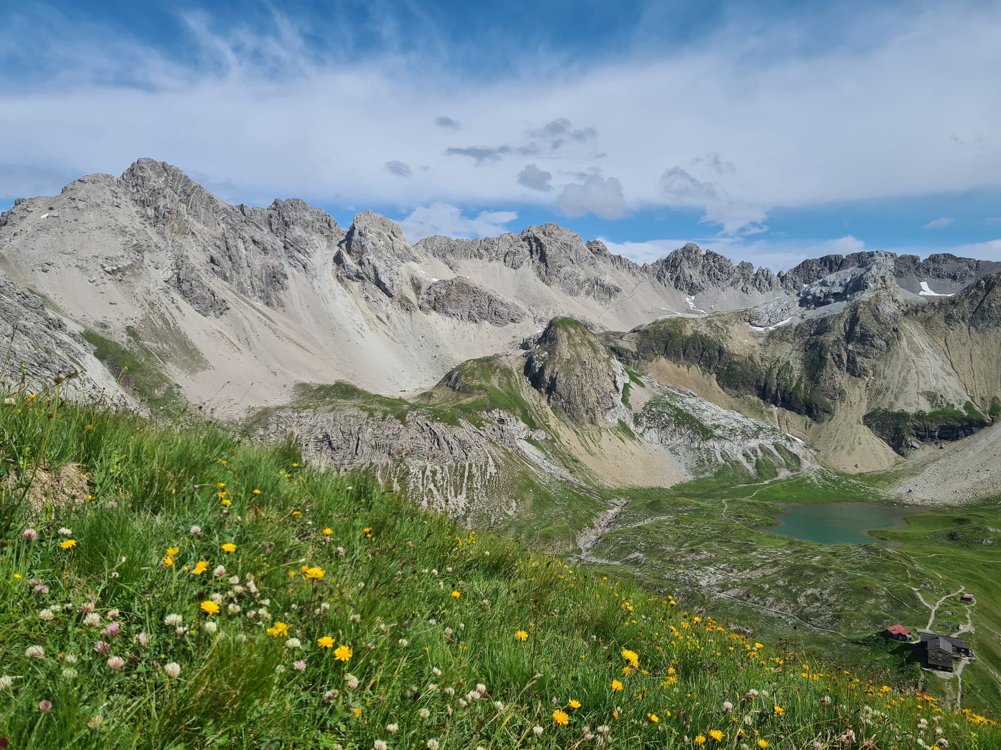 Auf der Memminger Hütte angekommen, entschieden wir, noch auf den Hausberg, den Seekogel mit 2.412 Metern, zu wandern. Was für eine wunderschöne Aussicht uns dort bot.