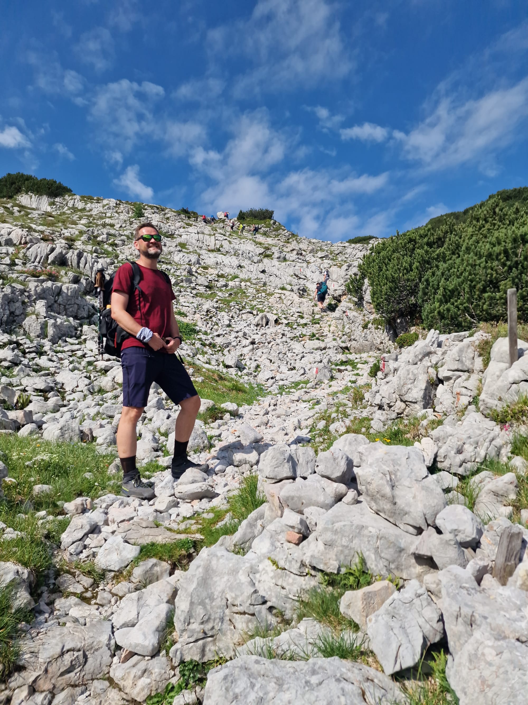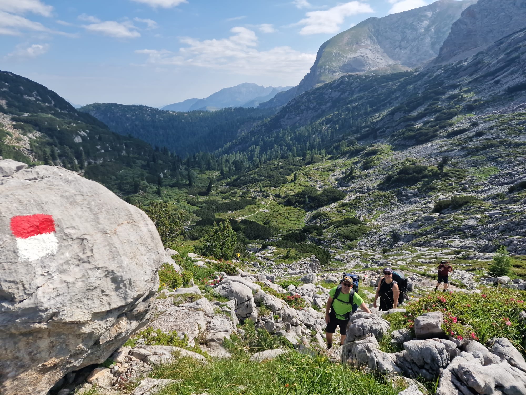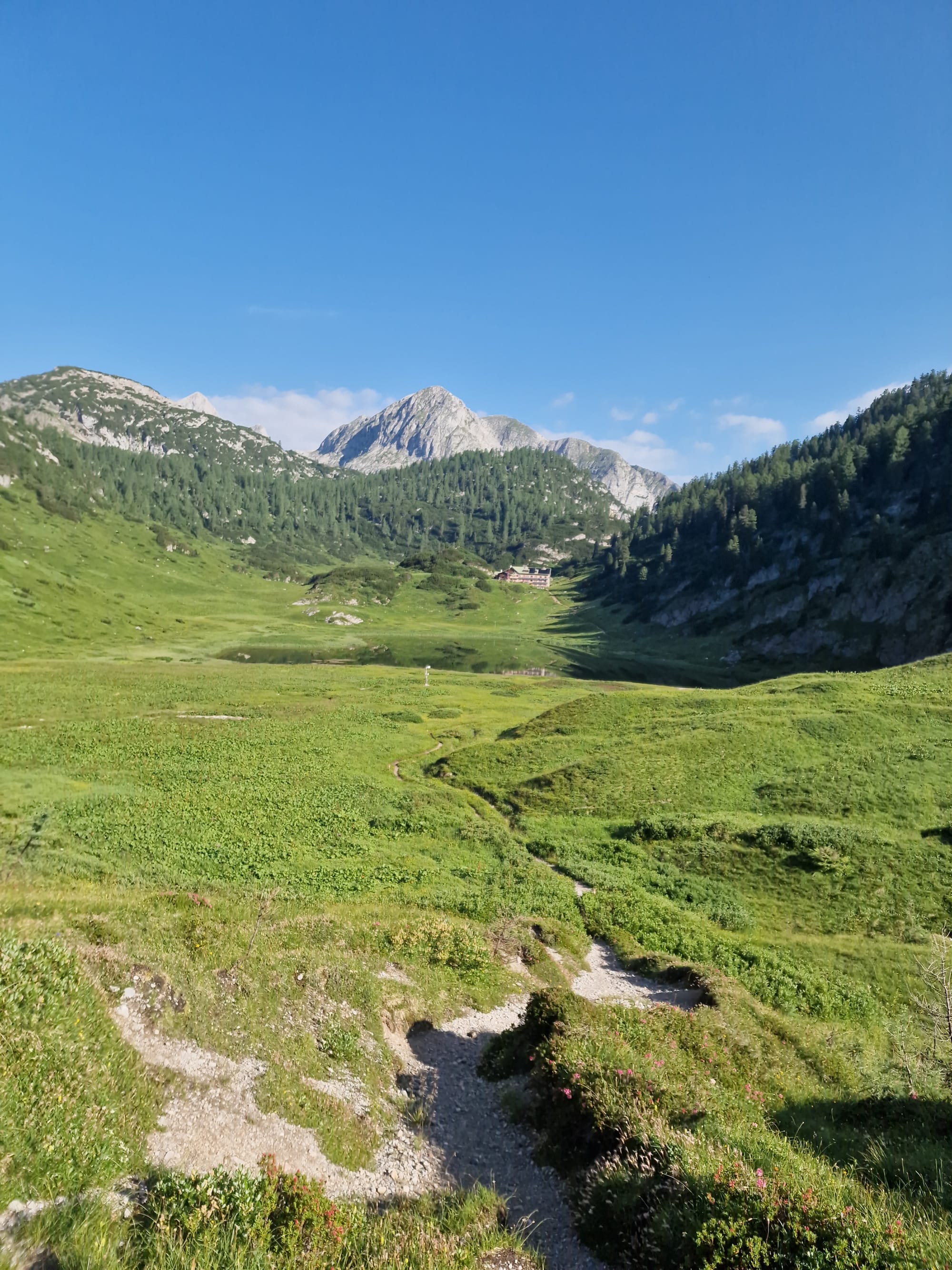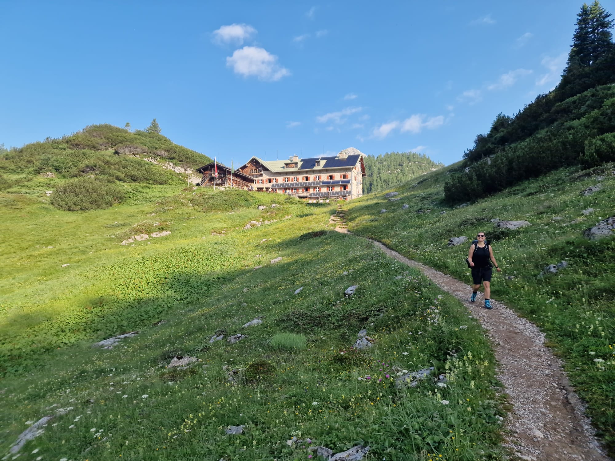 Bei wunderschönem Wetter und Sonnenschein starteten wir in unsere zweite Etappe, auf der wir zunächst am Funtensee vorbei, hinauf durch das steinerne Meer zum Riemannhaus wanderten.
