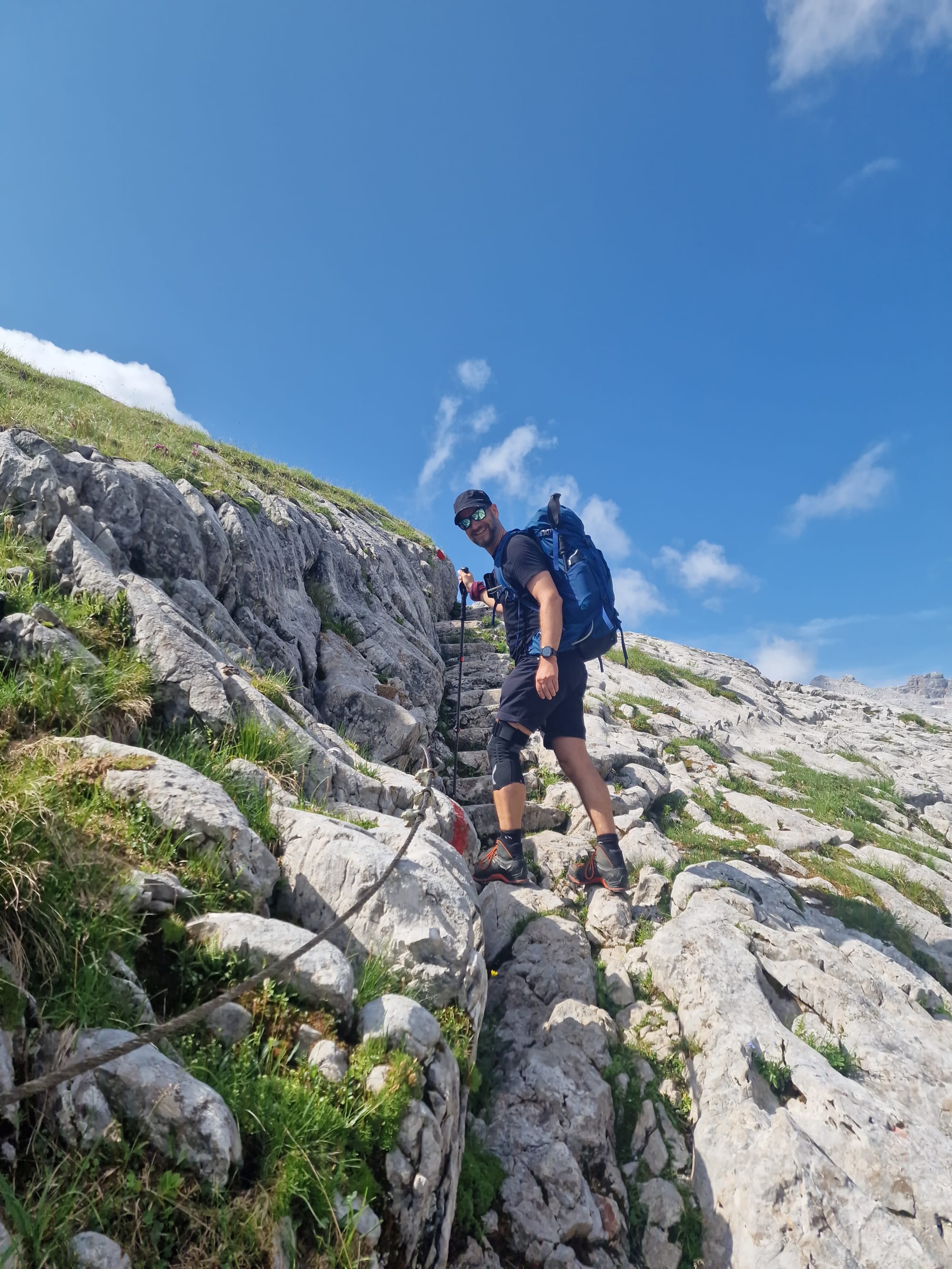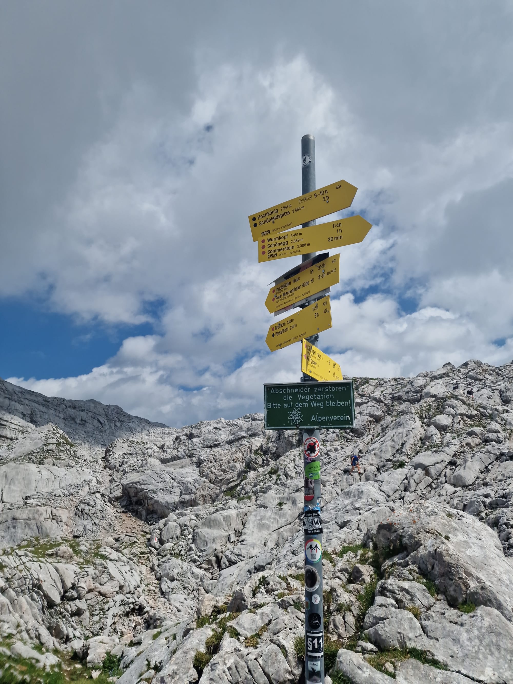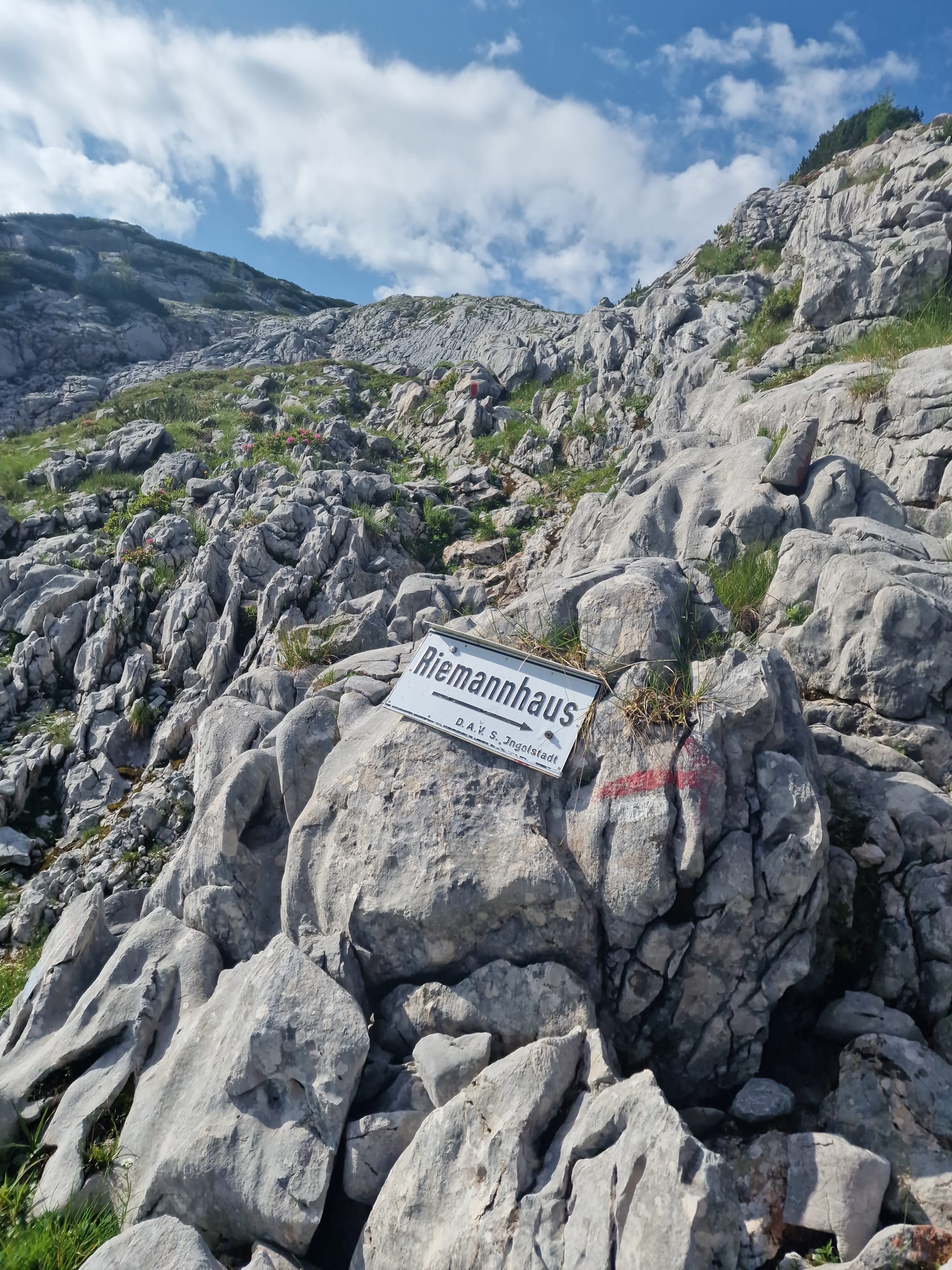 Gegen Mittag erreichten wir das Riemannhaus und füllten unsere Trinkflaschen auf, die wir bei der Sonne und den Anstrengungen fast vollständig geleert hatten. Mareike und Felix stiegen im Anschluss auf den Sommerstein, während Daniel und ich bereits in Richtung Ingolstädter Haus aufbrachen, da der Wetterbericht eventuelle Gewitter ankündigte.
