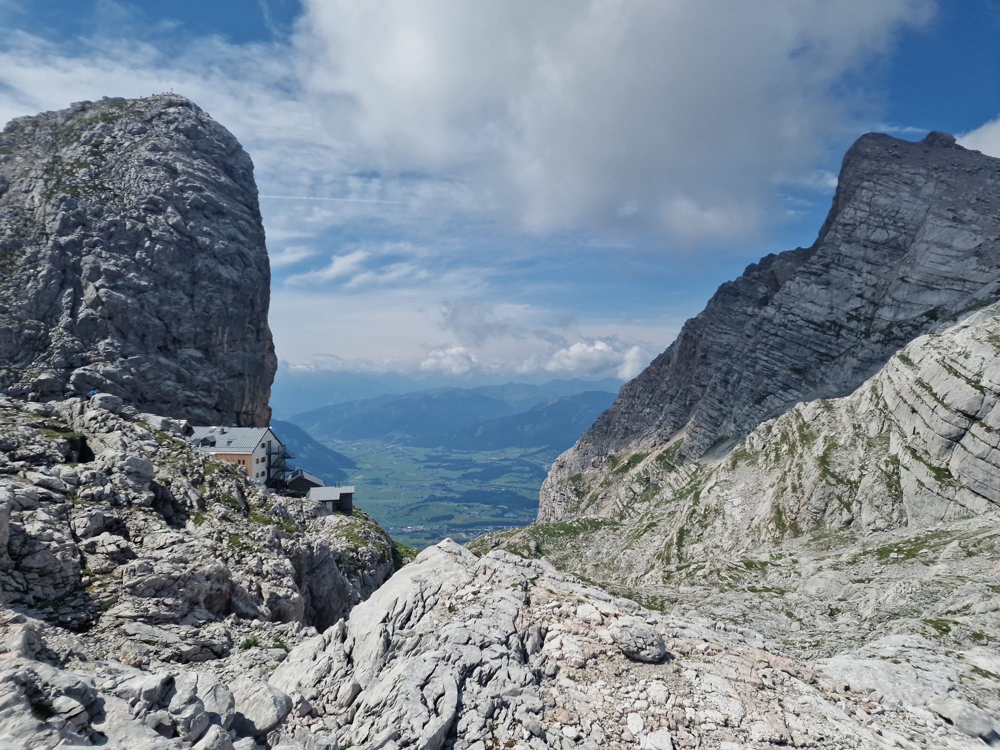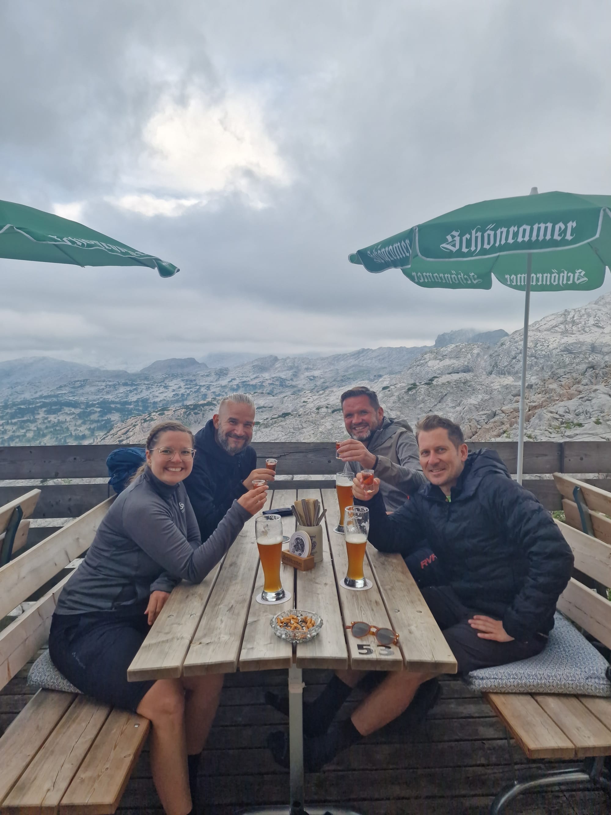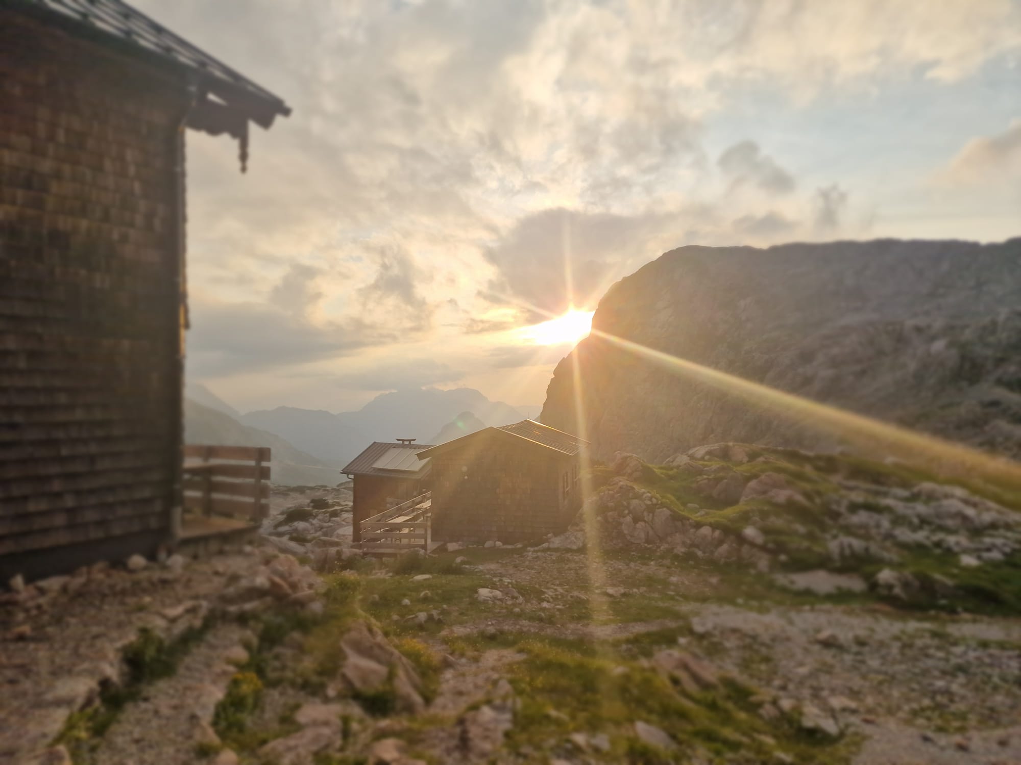 Überglücklich und zufrieden setzte wir uns und genossen unser Bier und Kaiserschmarrn in einer wirklich atemberaubenden Landschaft, die ich so zuvor noch nie gesehen hatte. Wenig später kamen dann auch Mareike und Felix an und wir hatten unseren obligatorischen Schnapps. Es herrschte eine wundervolle Abendstimmung nach dem Sonnenuntergang im steinernen Meer.