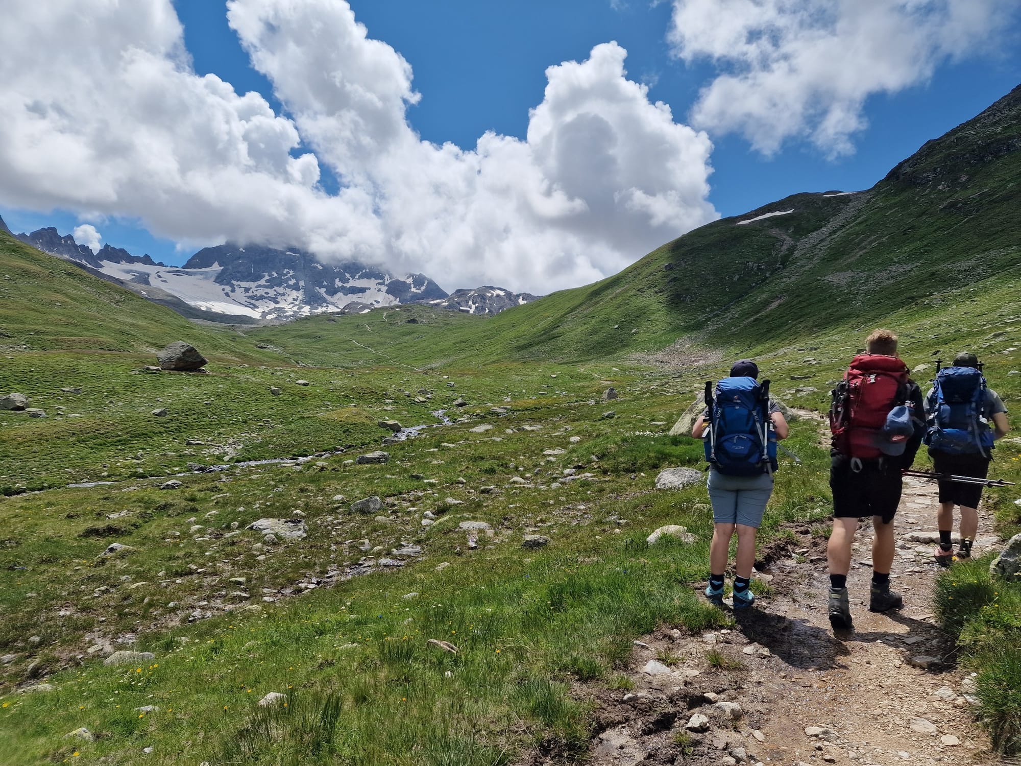 Am zweiten Tag stand eine traumhafte Etappe vor uns. Nach einem guten Frühstück machten wir uns auf unseren Weg, der uns zunächst talwärts führte, nur um wenig später erneut bergan auf den nächsten Pass zu wandern.