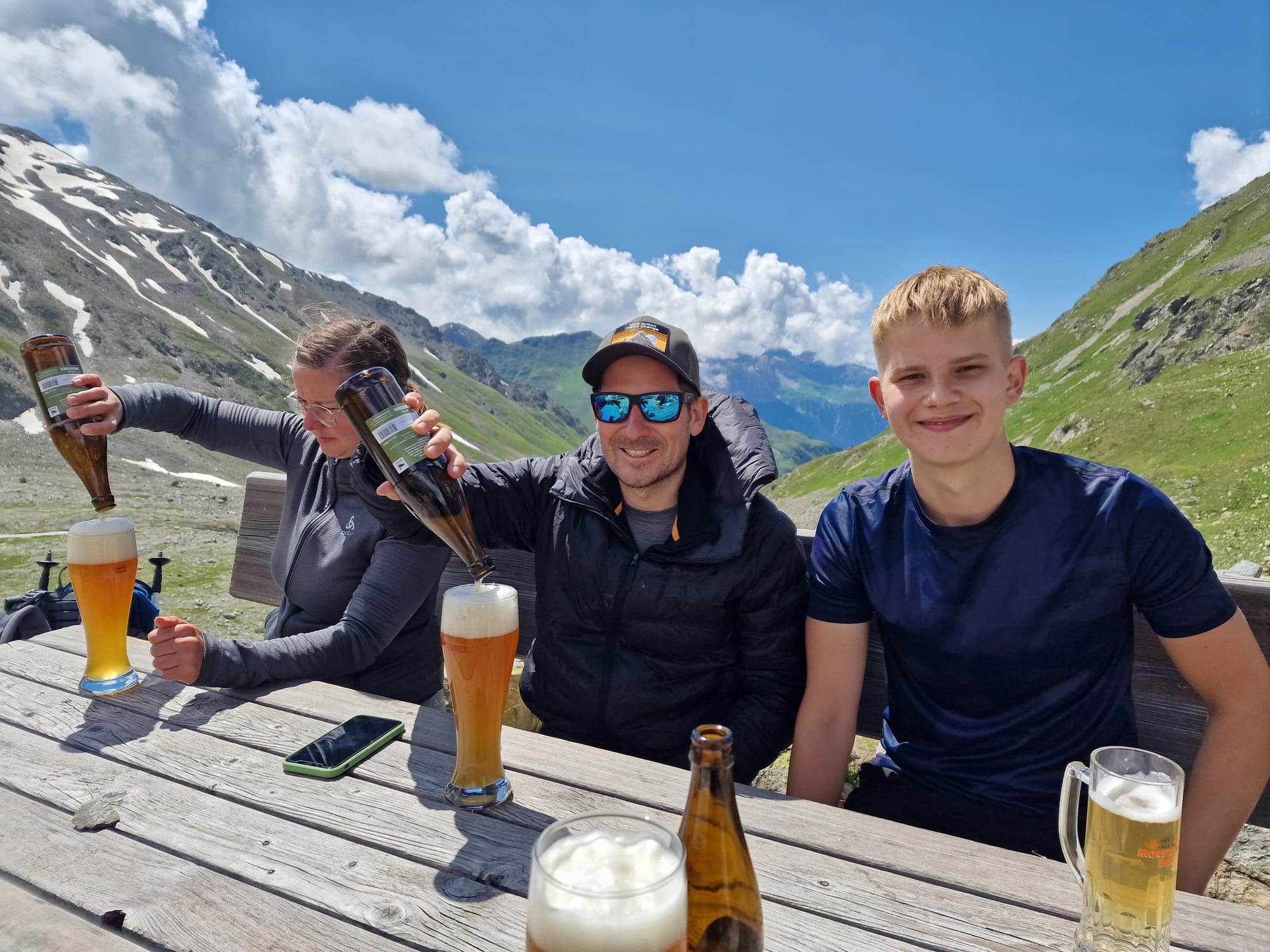 Als wir am Nachmittag unsere Hütte erreichten, war das Wetter inzwischen komplett sonnig und einfach nur schön. Selbstverständlich genossen wir ein kühles Bier in der Sonne und auch am Abend gab wieder Schnapps und leckeres Essen.