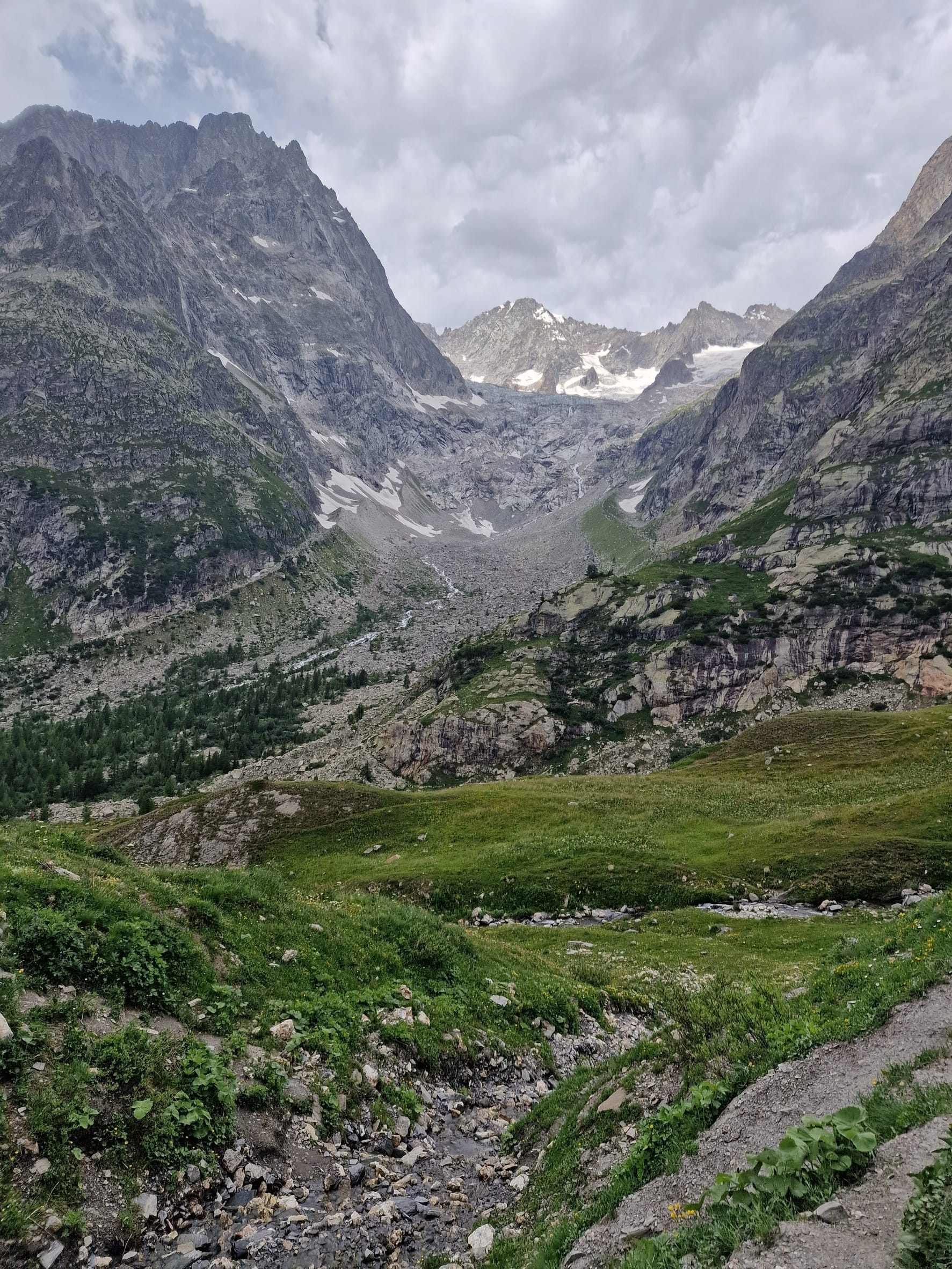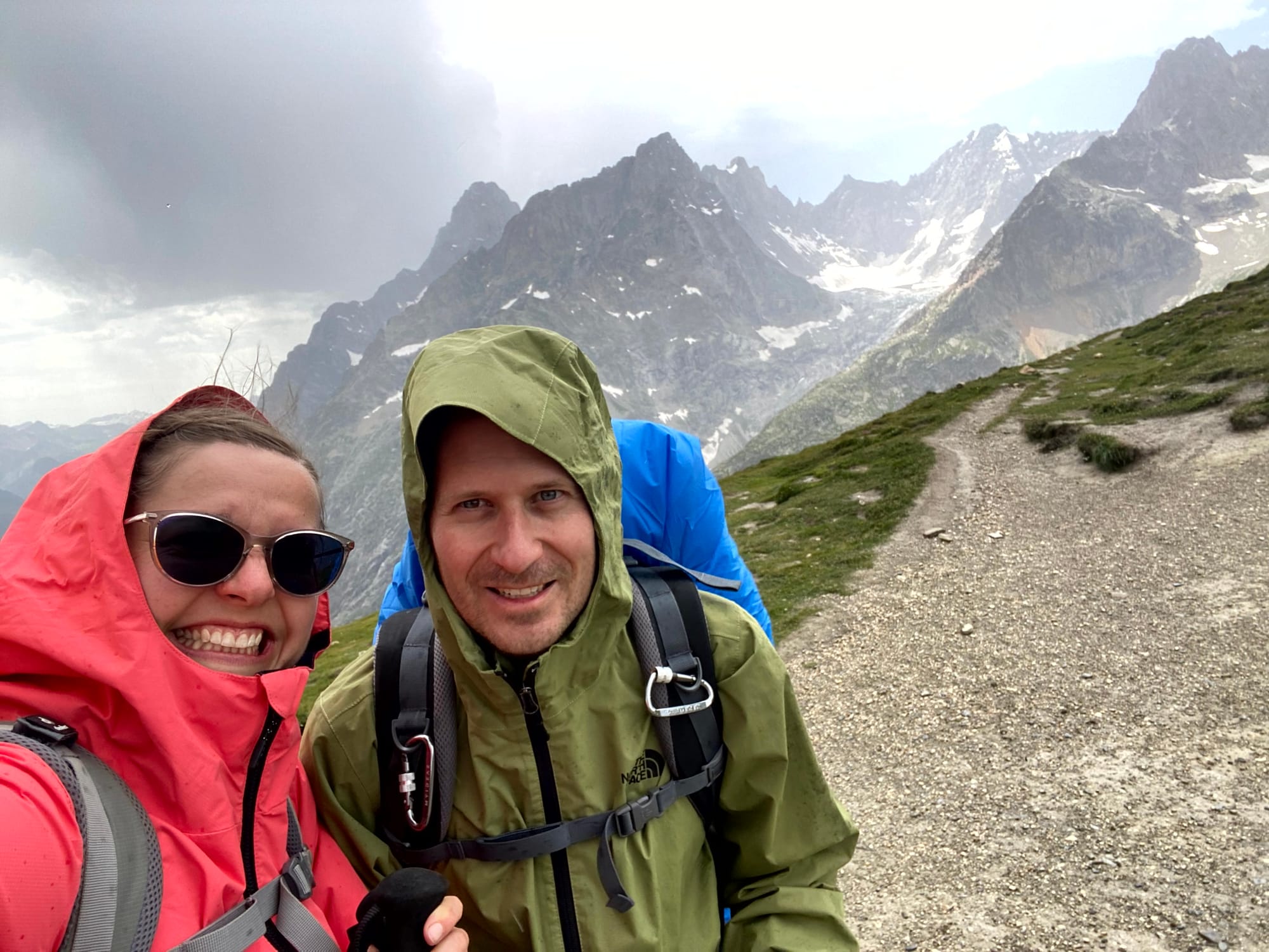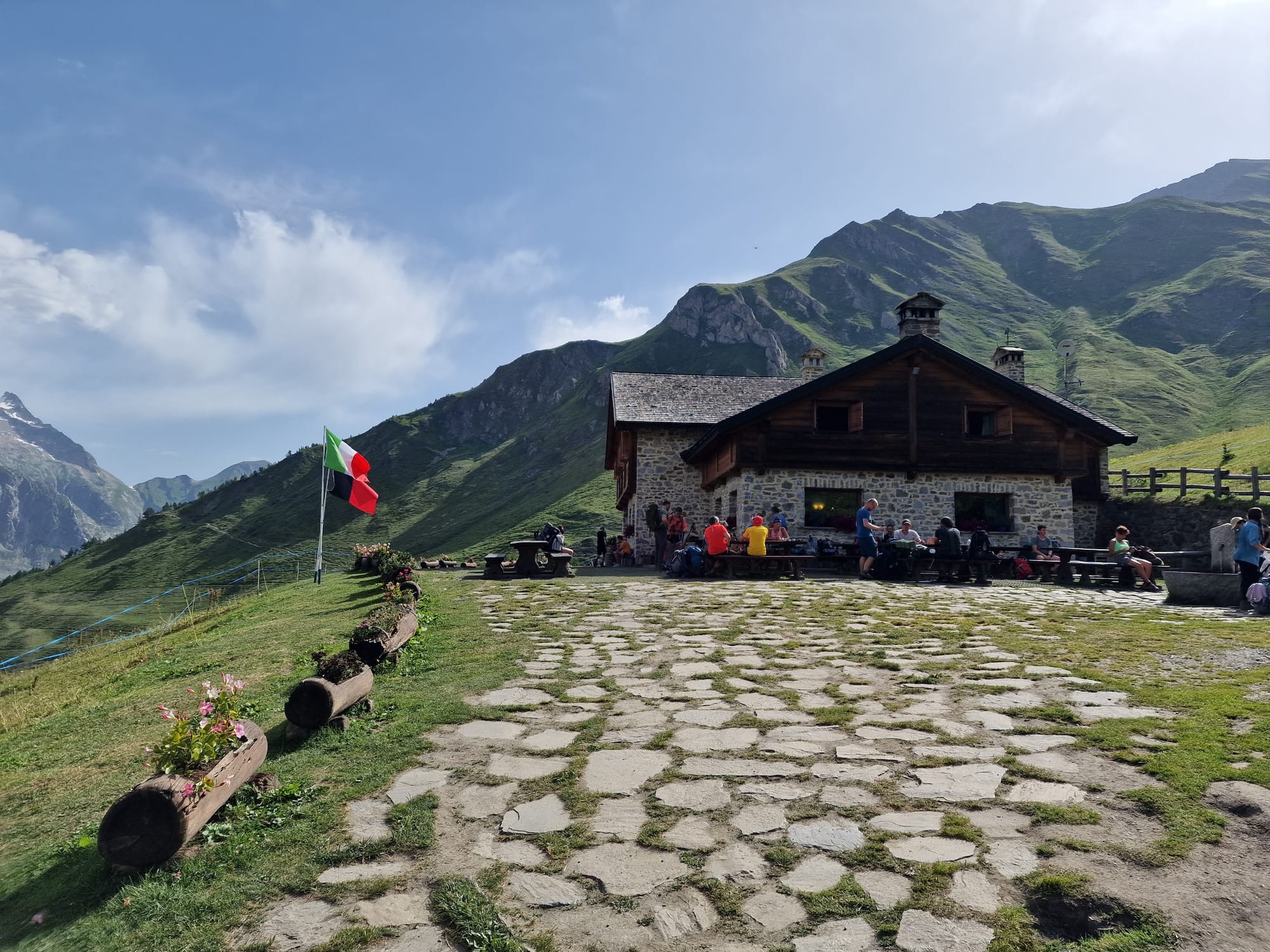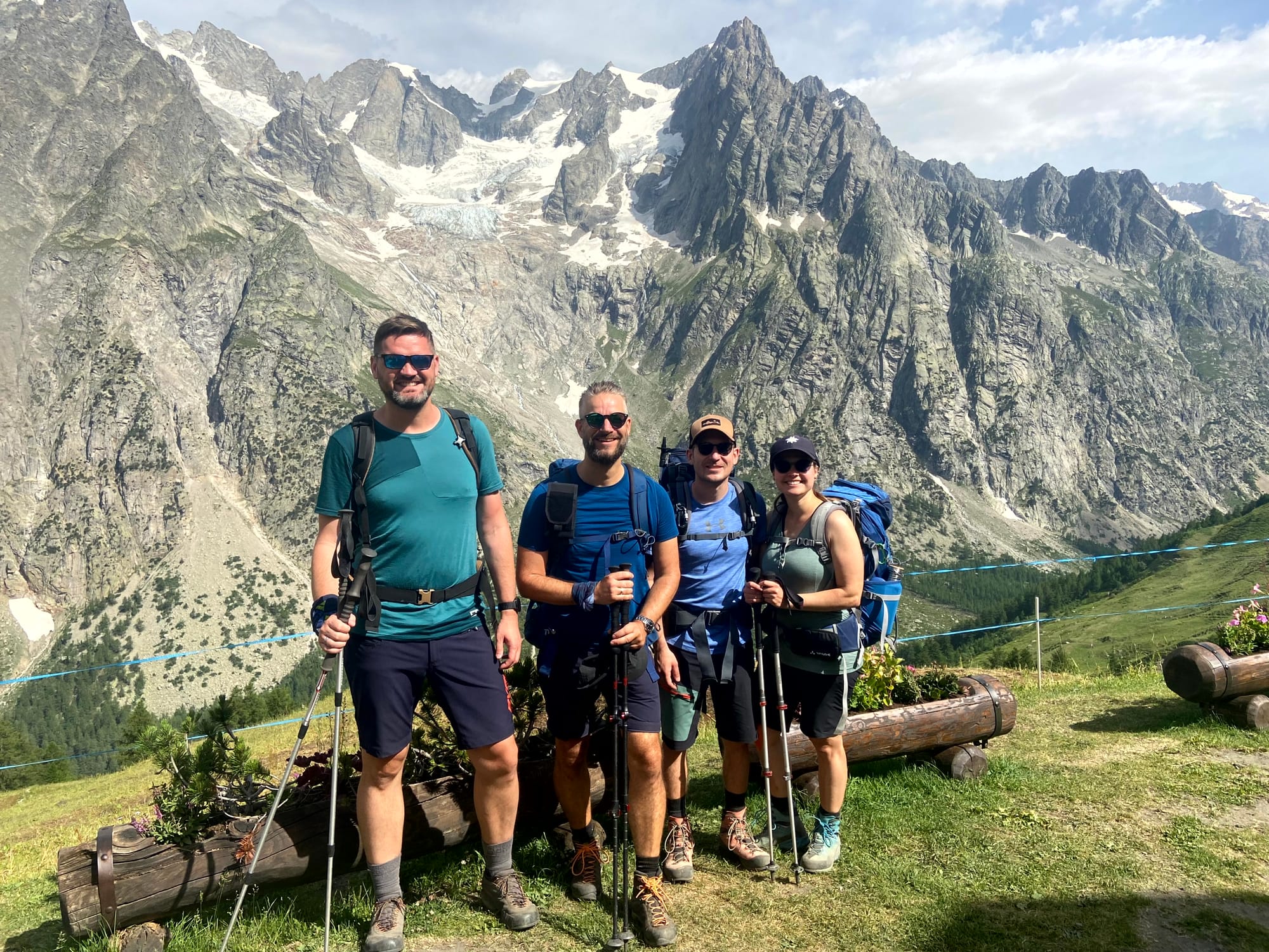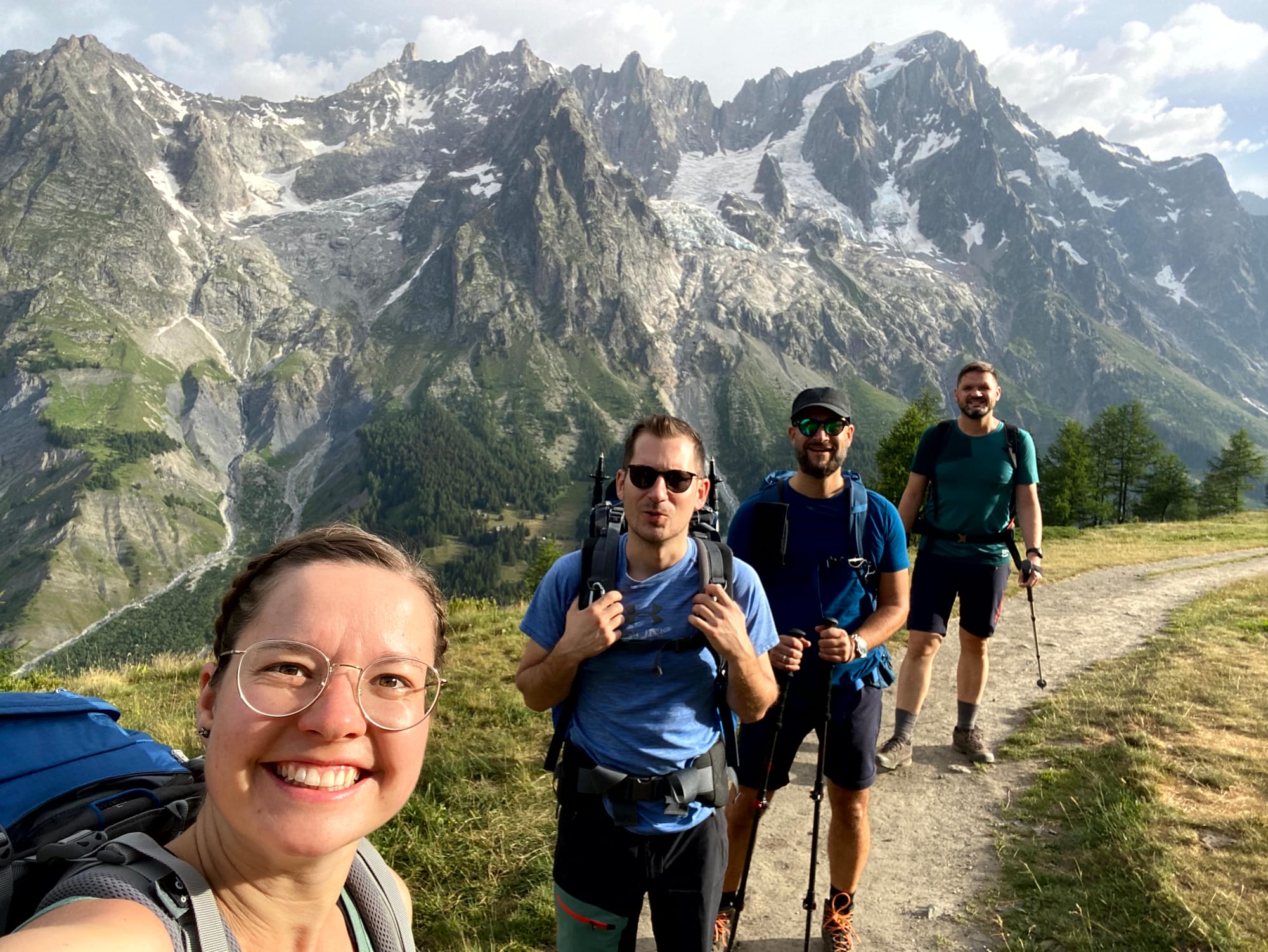 Bei der Refugio Walter Bonatti machten wir unsere erste Rast und stellten fest, dass uns das Mont Blanc-Massiv fast den Atem verschlug, gewaltige Berge, die unsere Blicke fast schon magisch auf sich zogen und fesselten.