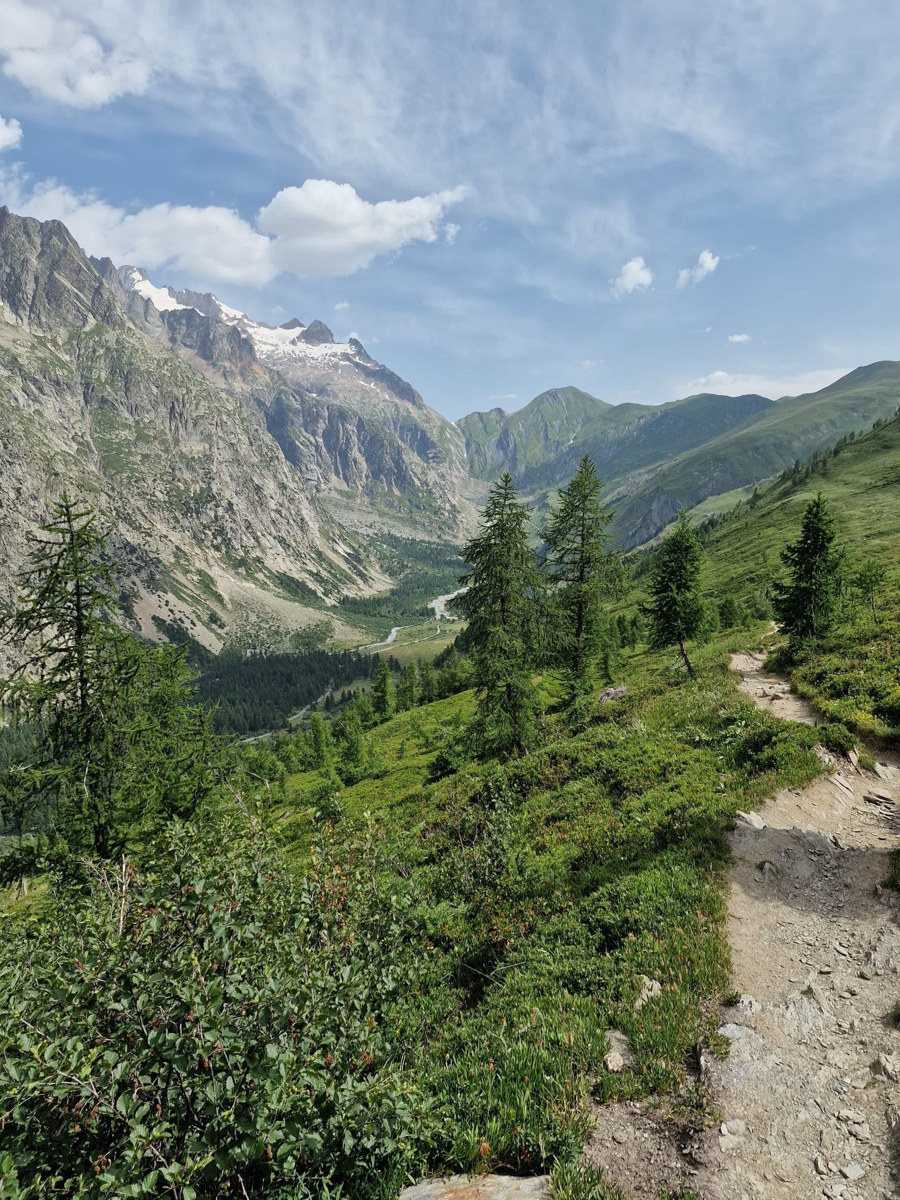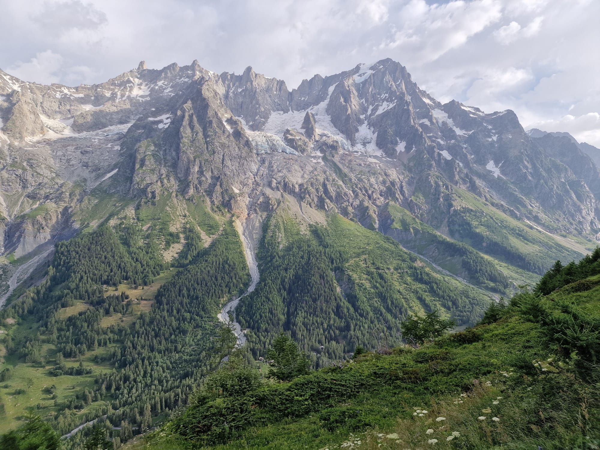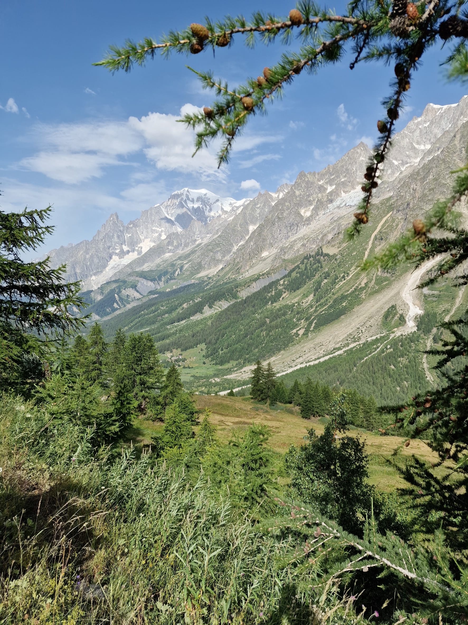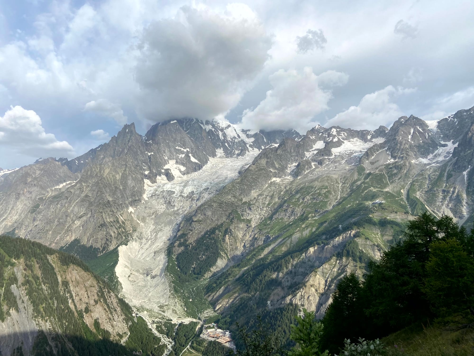 Bei der Refugio Walter Bonatti machten wir unsere erste Rast und stellten fest, dass uns das Mont Blanc-Massiv fast den Atem verschlug, gewaltige Berge, die unsere Blicke fast schon magisch auf sich zogen und fesselten.