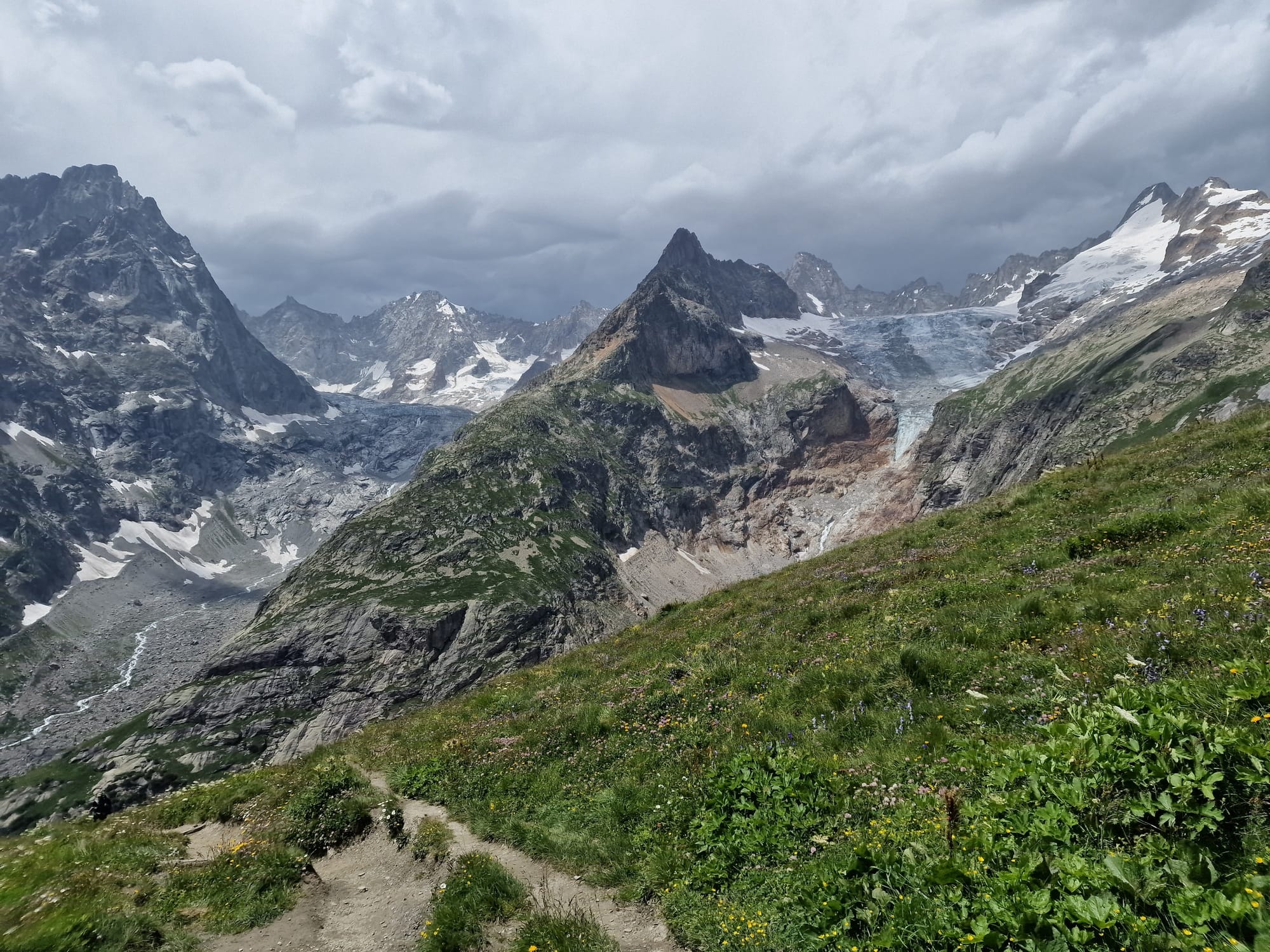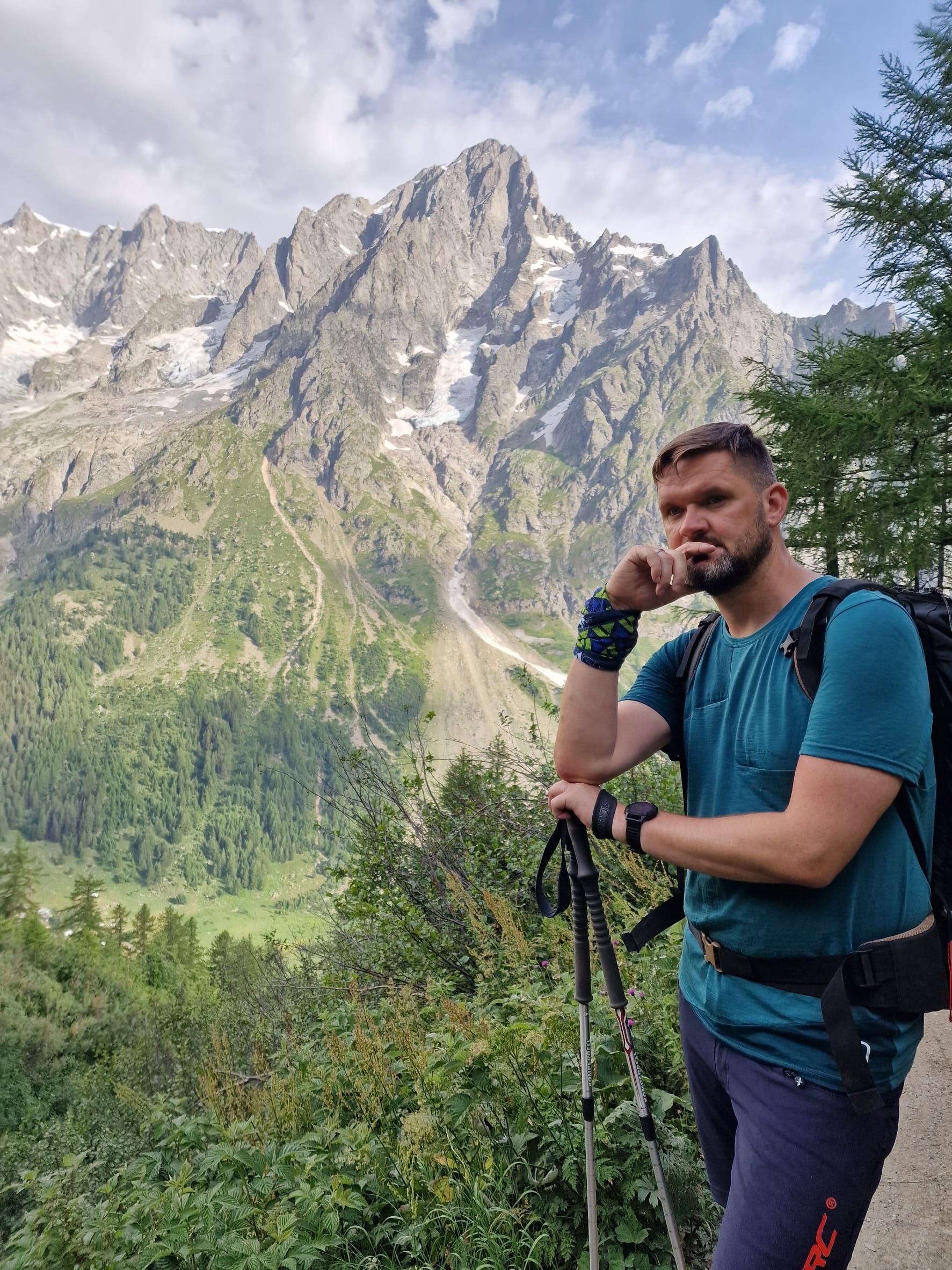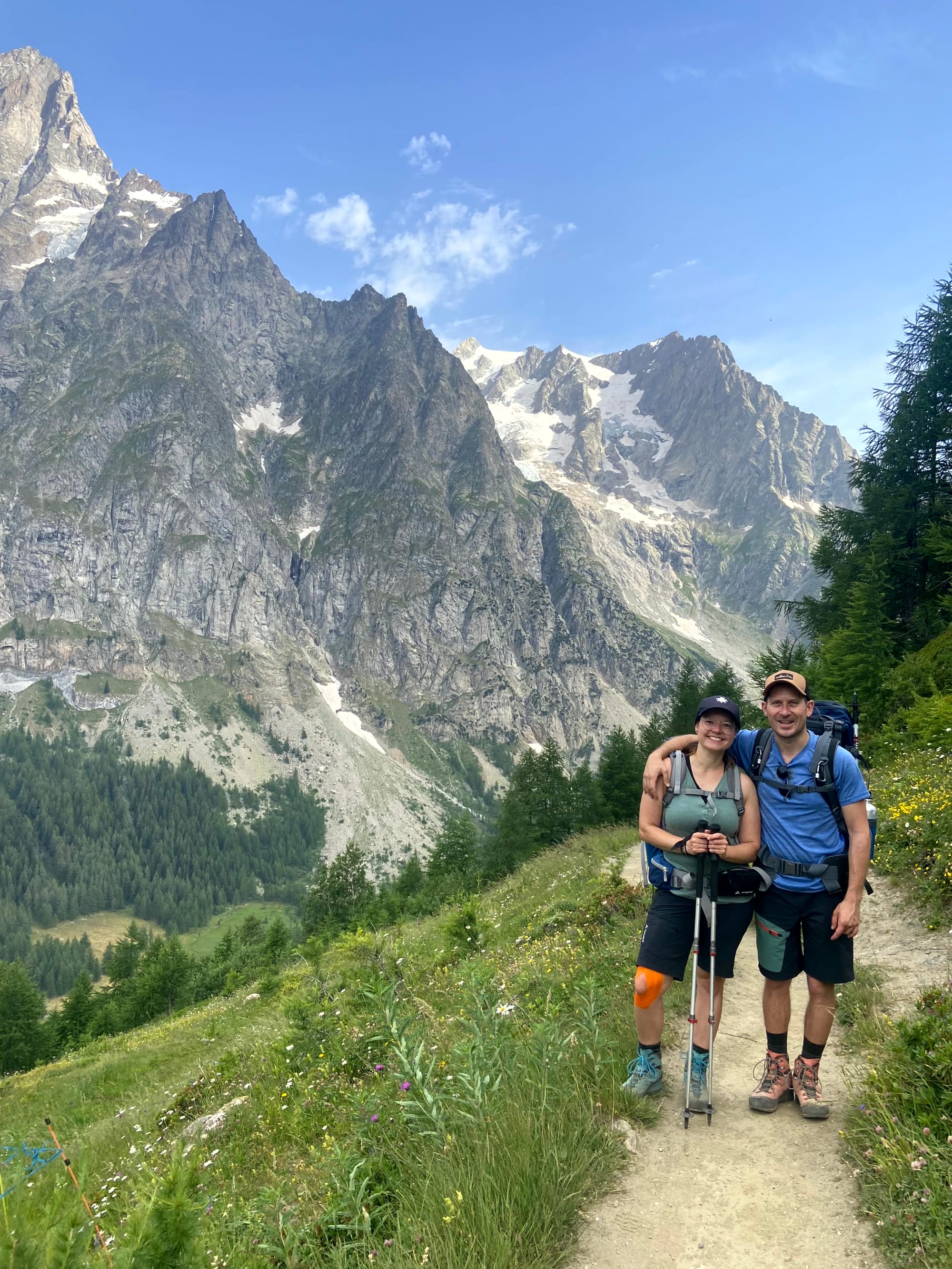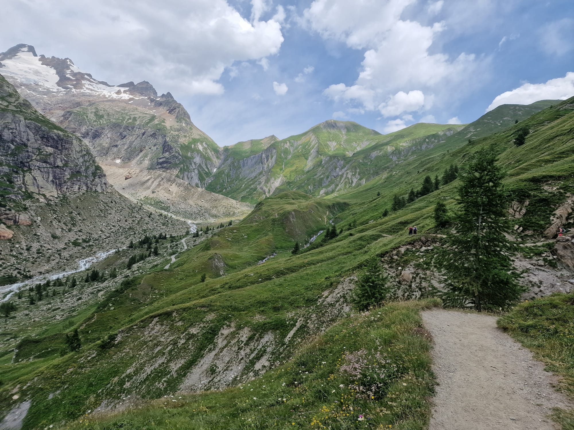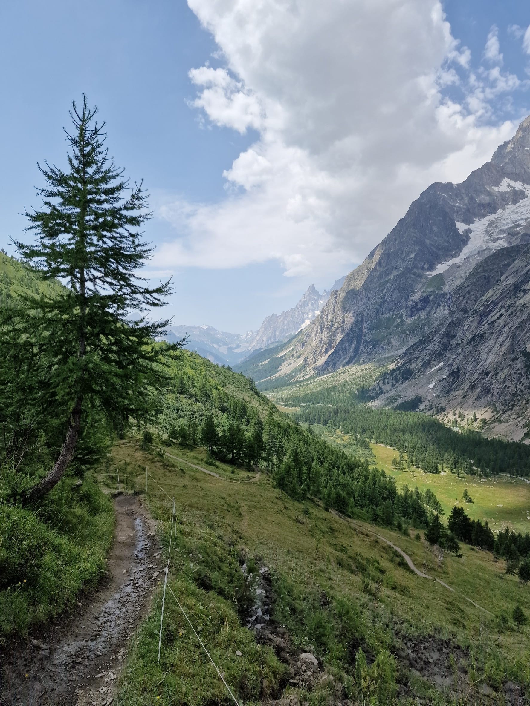 Bei der Refugio Walter Bonatti machten wir unsere erste Rast und stellten fest, dass uns das Mont Blanc-Massiv fast den Atem verschlug, gewaltige Berge, die unsere Blicke fast schon magisch auf sich zogen und fesselten.