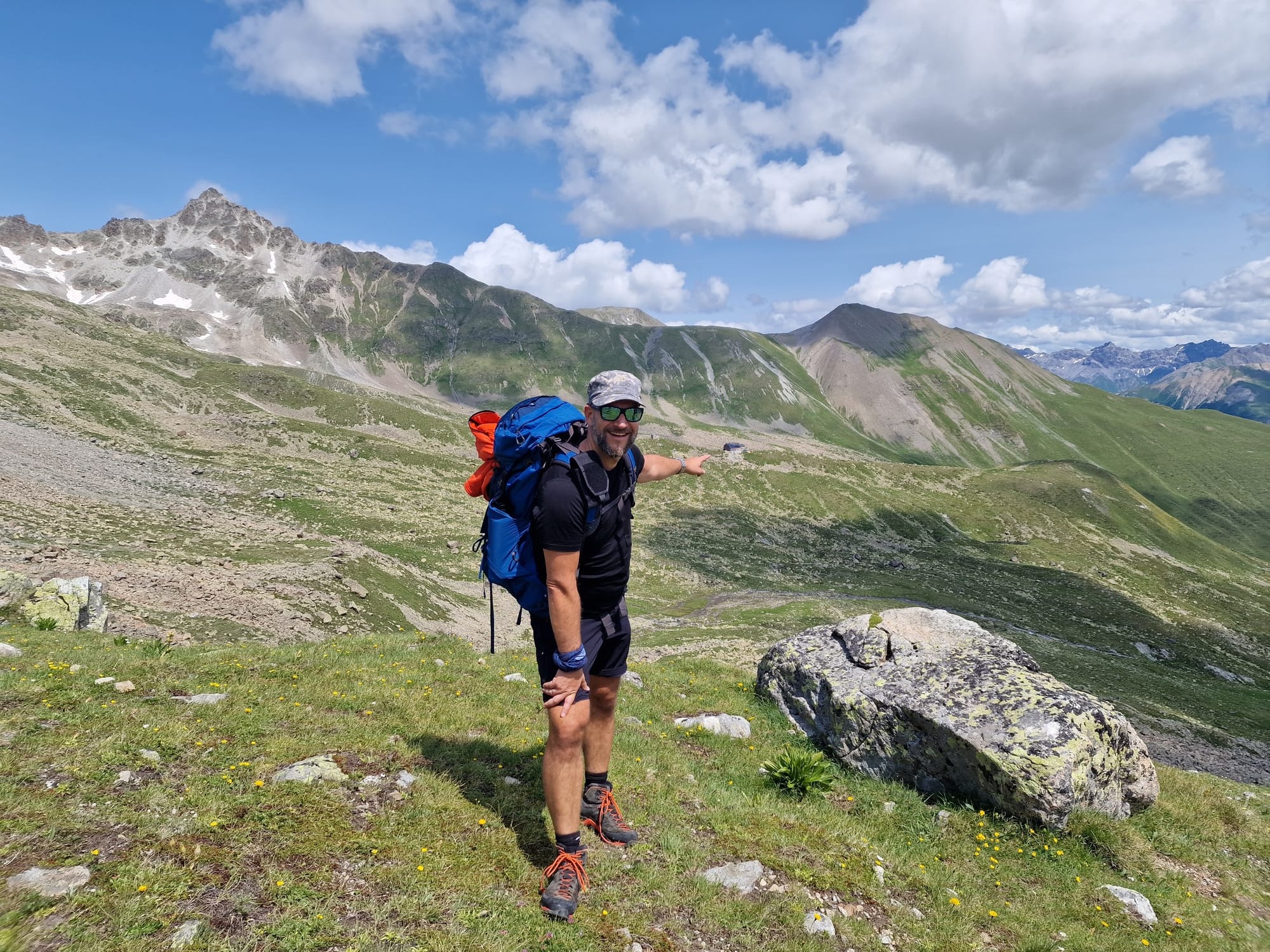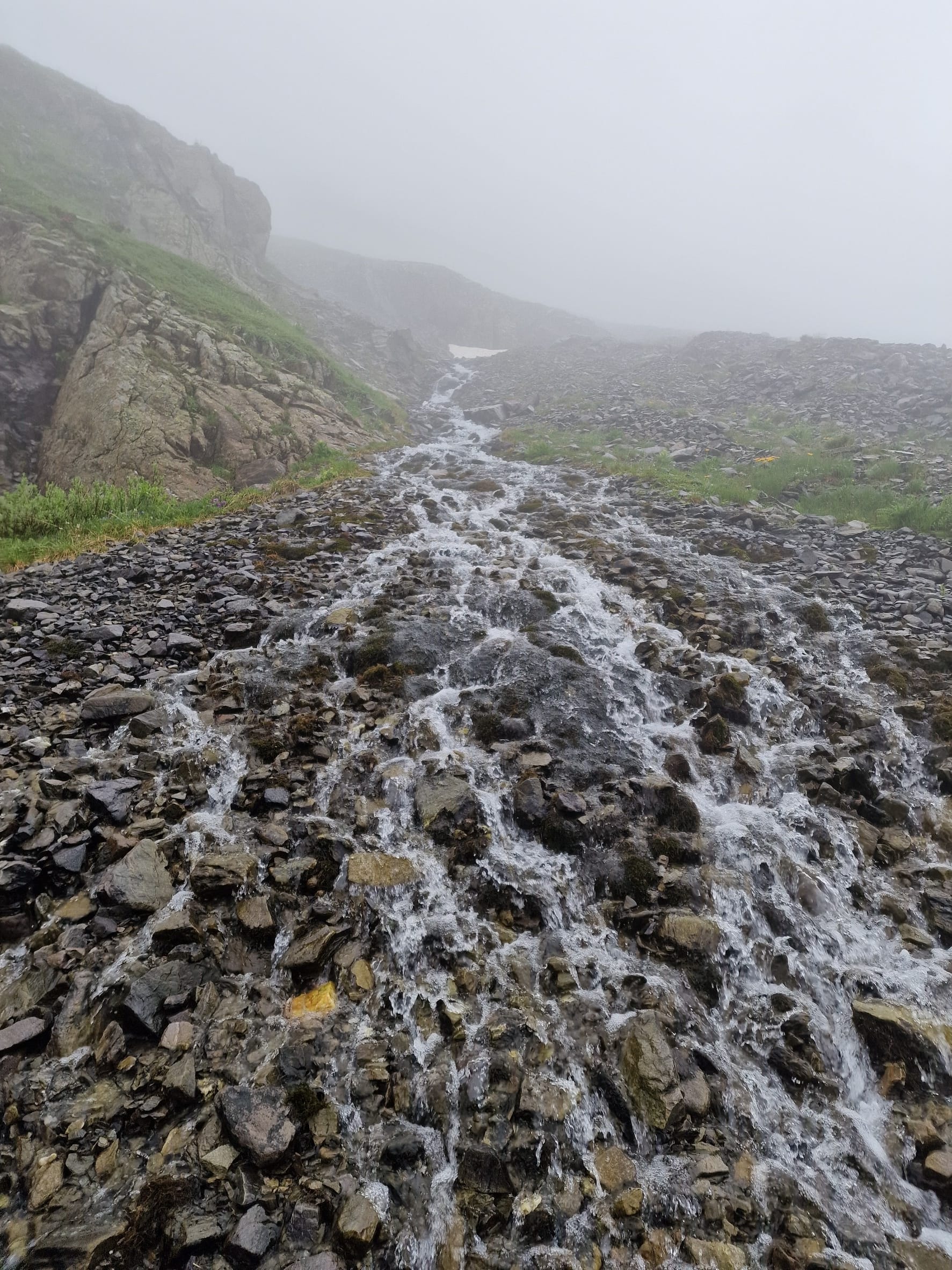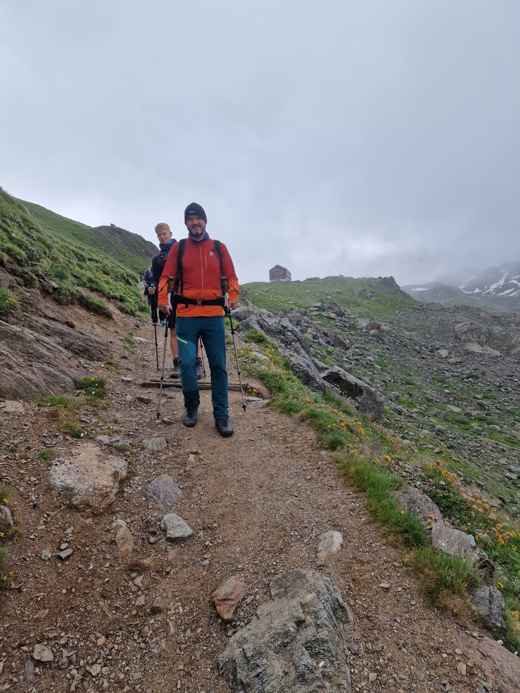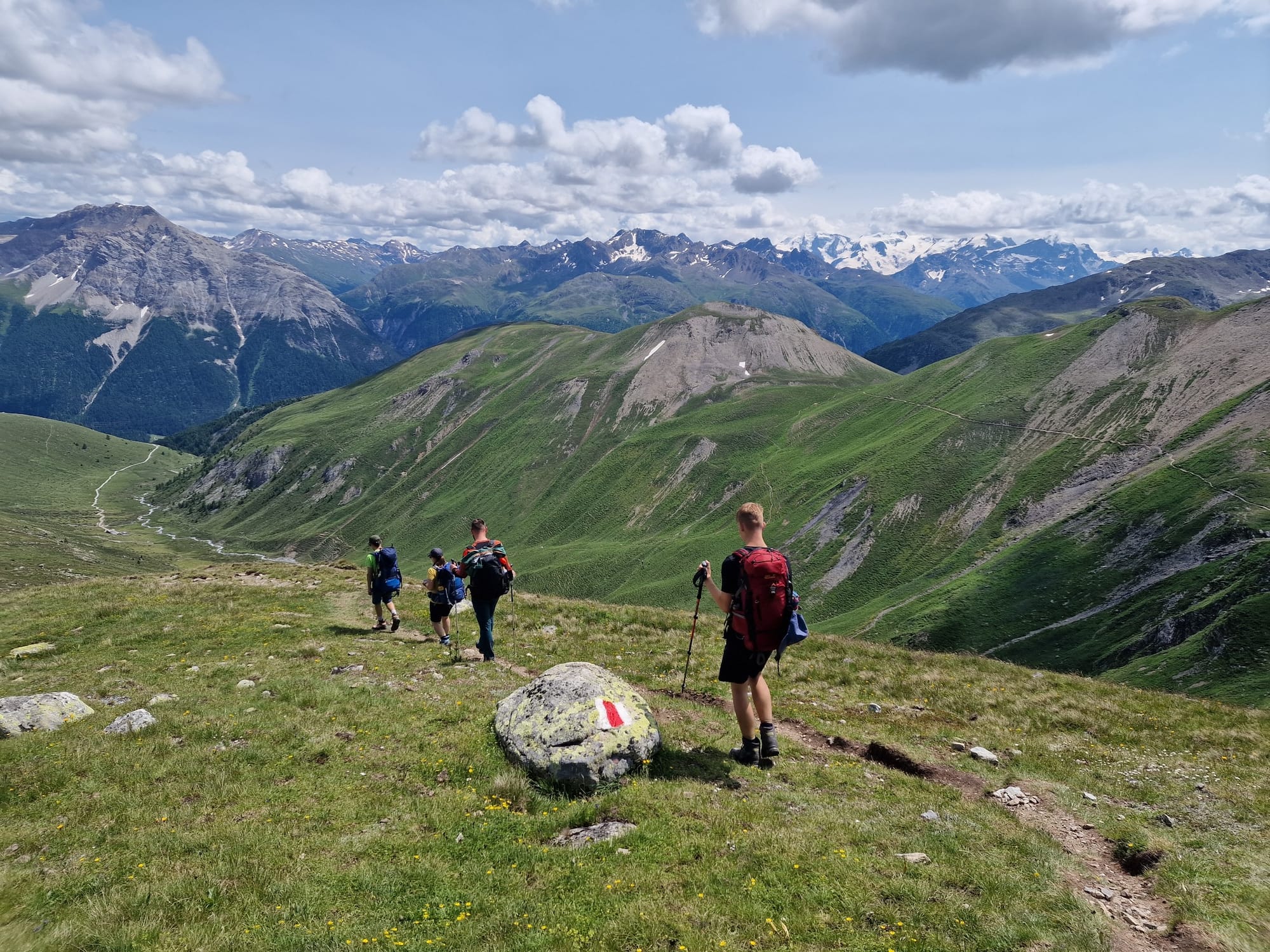 Am dritten Tag auf unserem Kesch-Trek liefen wir zunächst viele Meter ins Tal hinab, in dichten Wolken und teilweise auch einigen kleinen Regenschauern. Aber das machte uns alles nichts aus.