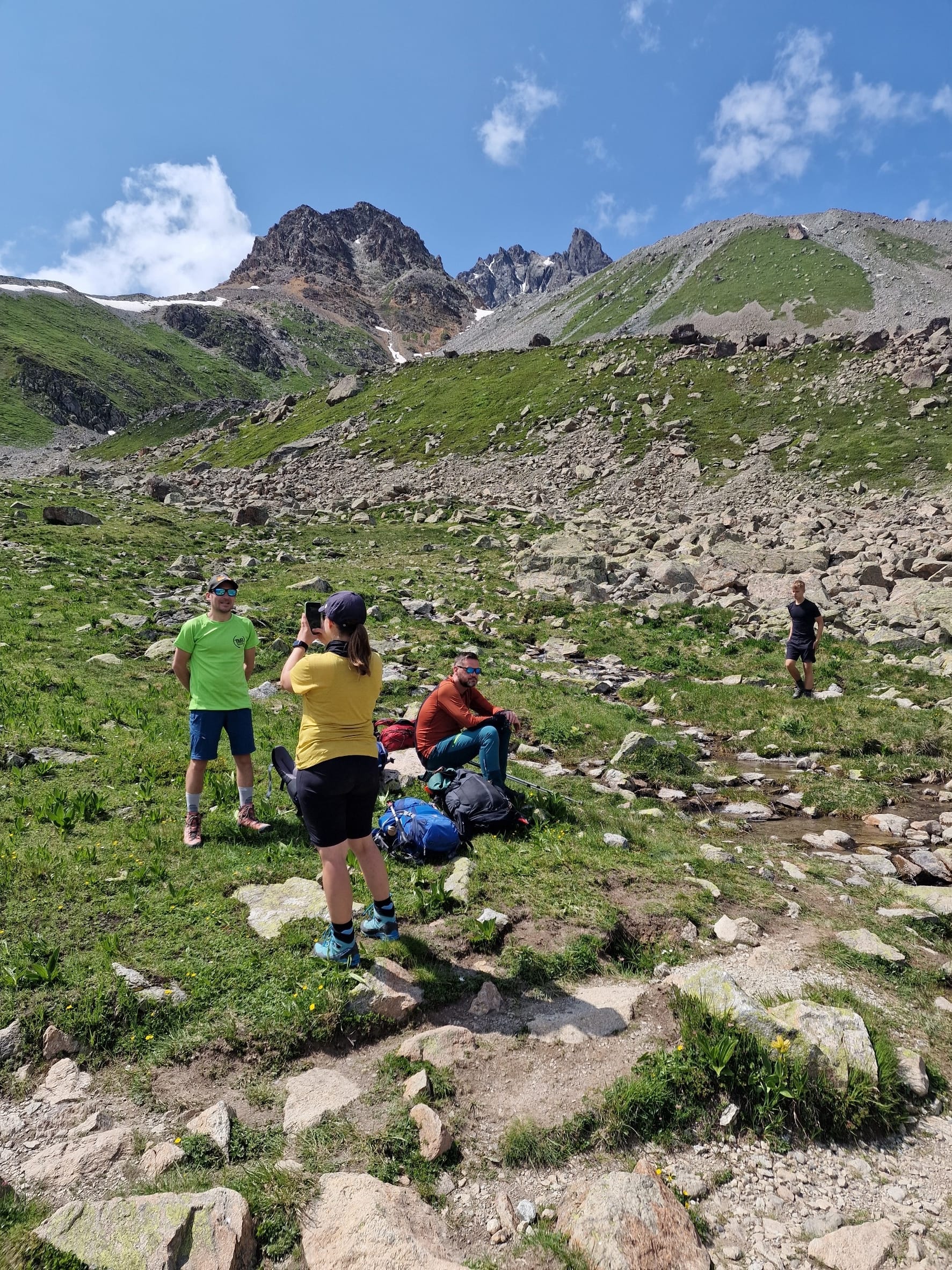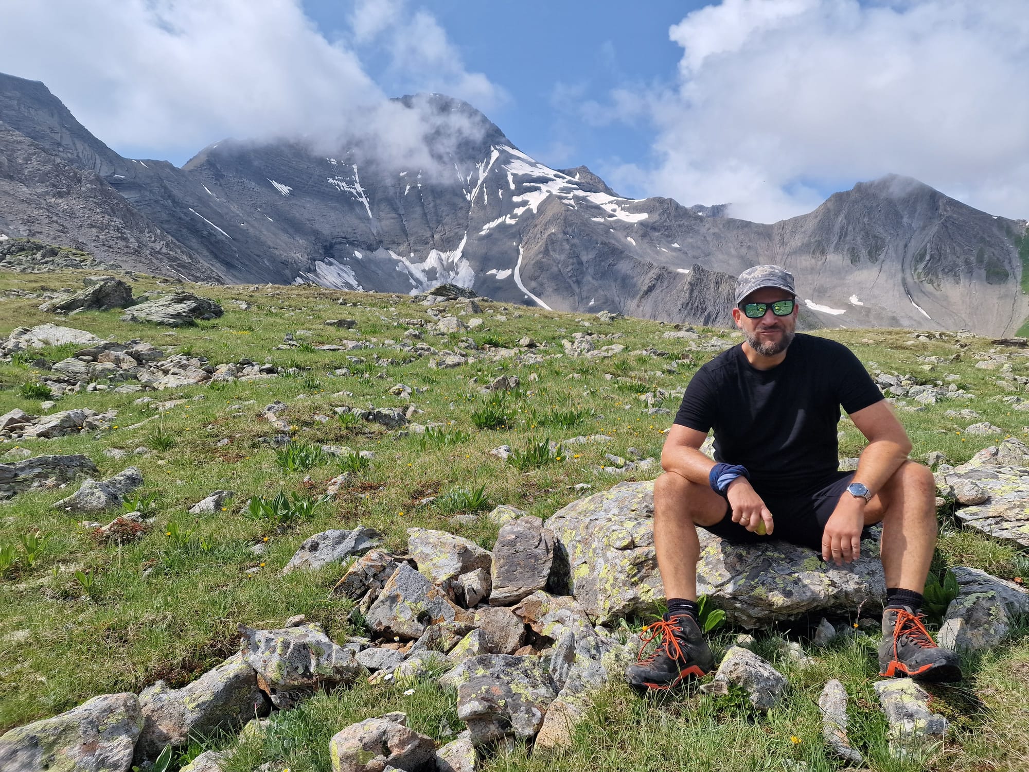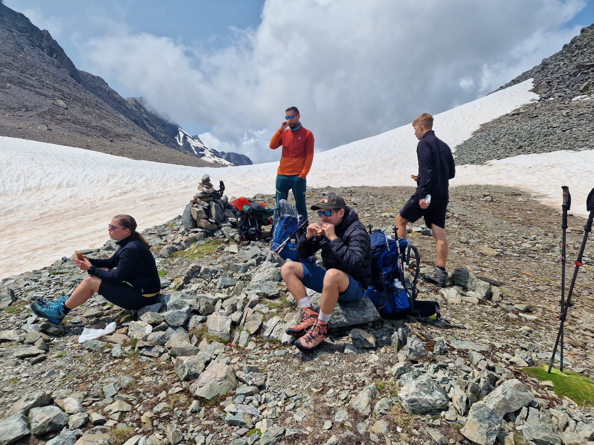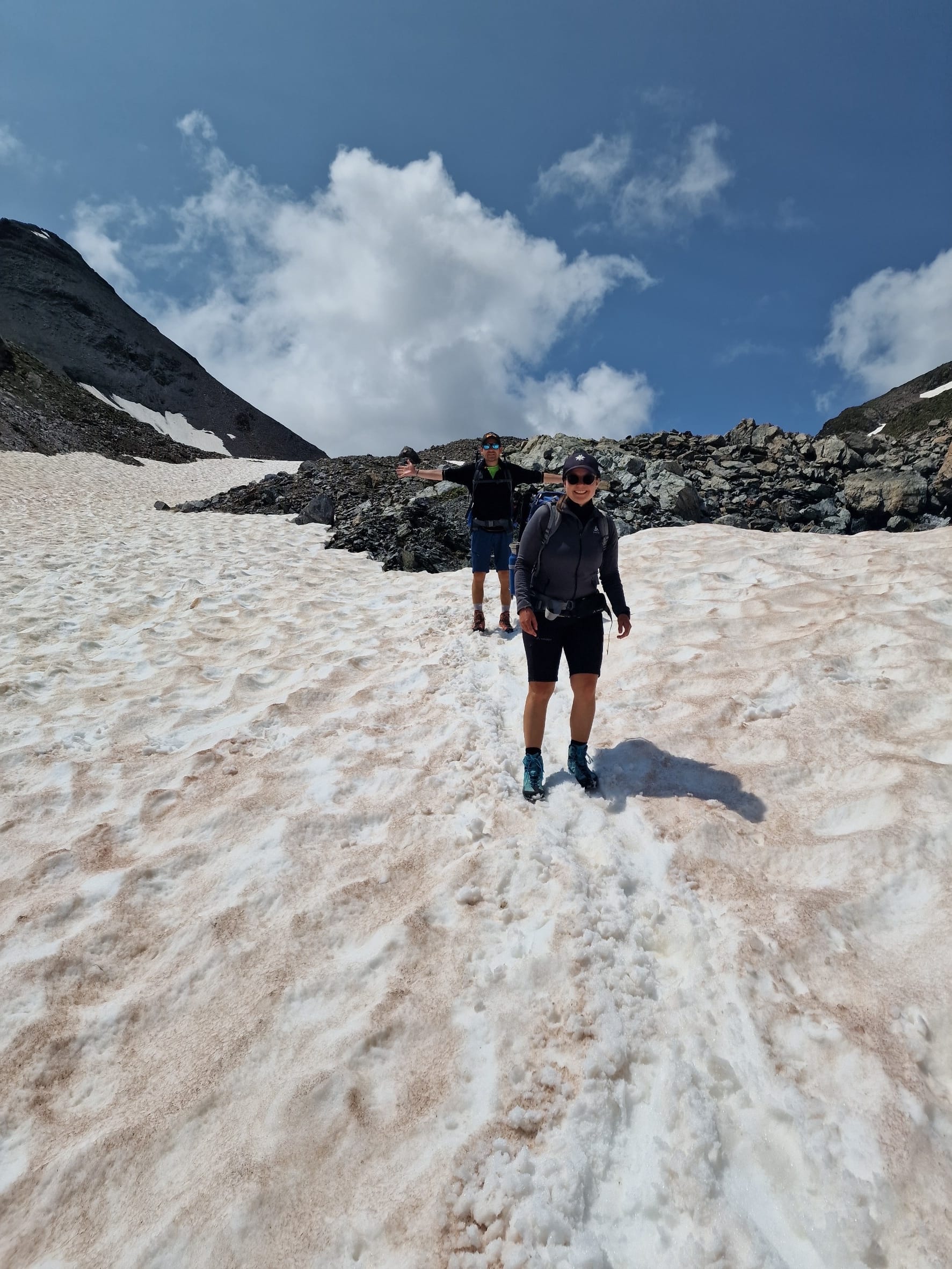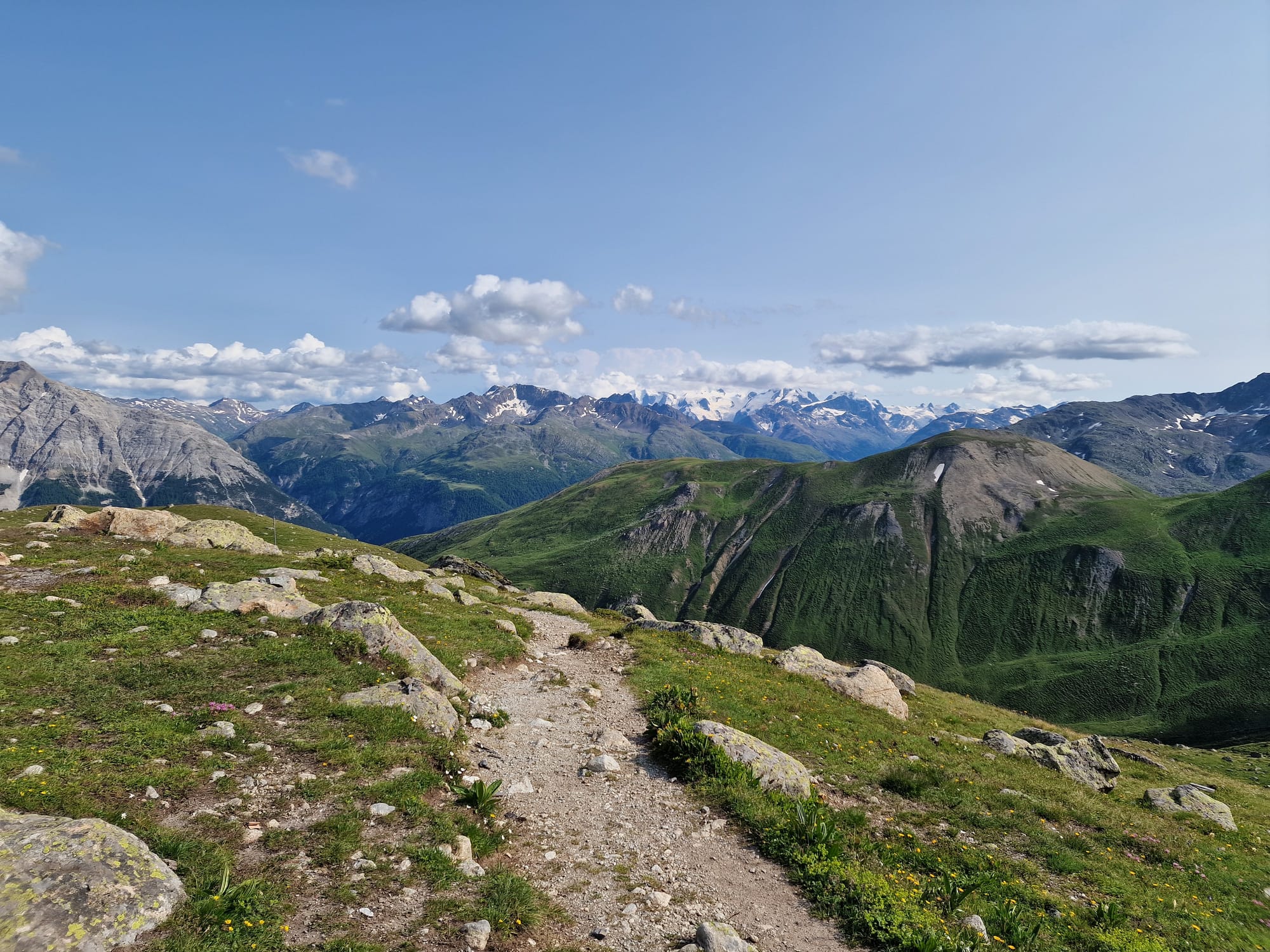 Am dritten Tag auf unserem Kesch-Trek liefen wir zunächst viele Meter ins Tal hinab, in dichten Wolken und teilweise auch einigen kleinen Regenschauern. Aber das machte uns alles nichts aus.