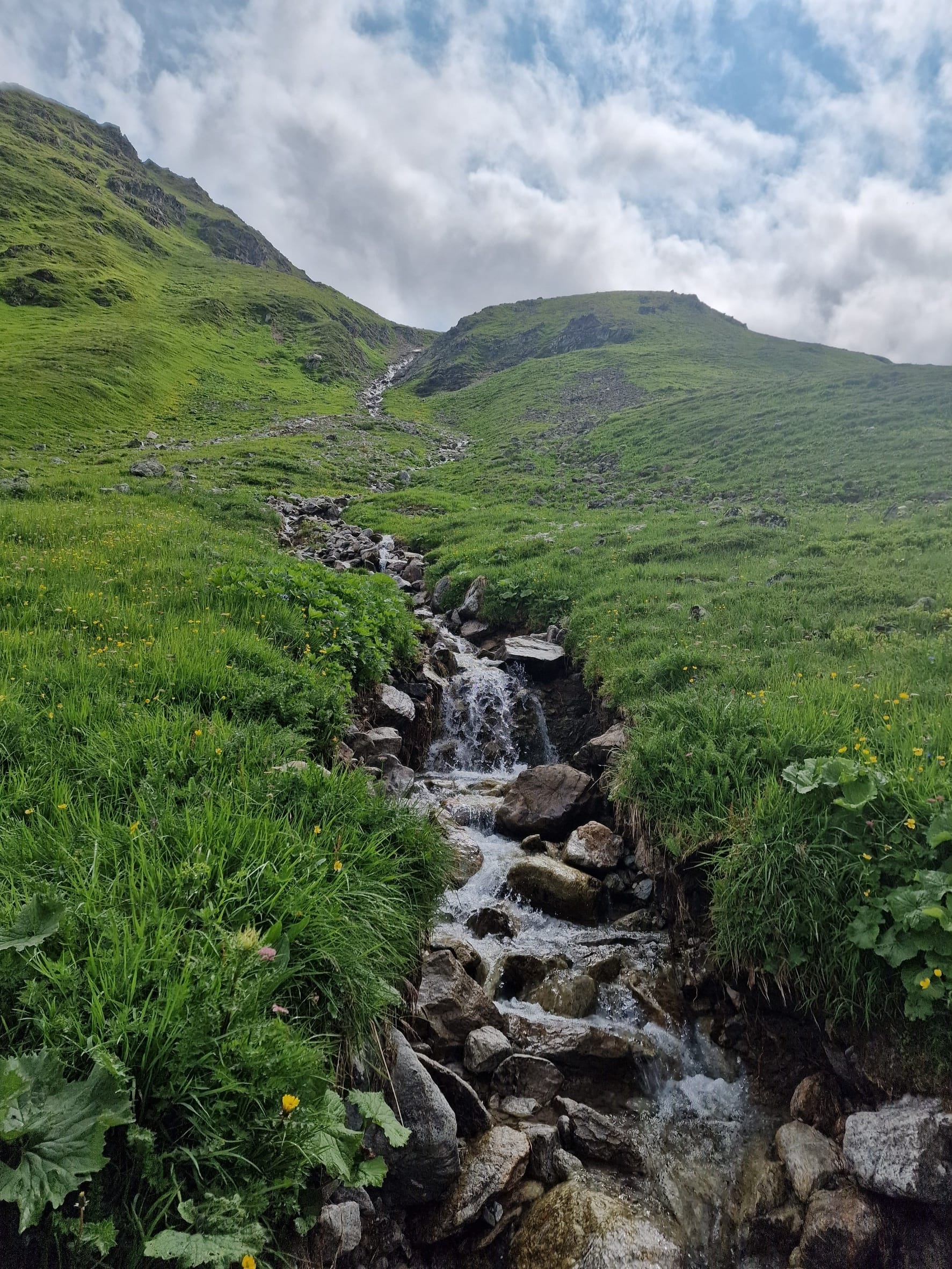 Denn wenig später lichtete sich der Himmel und wir liefen zuerst ein grünes Tal entlang, um dann im klassischen Zick-Zack schnell an Höhe zu gewinnen.