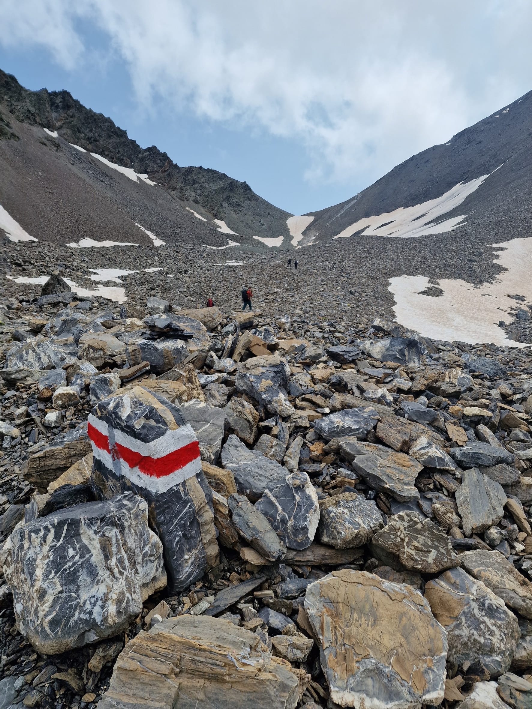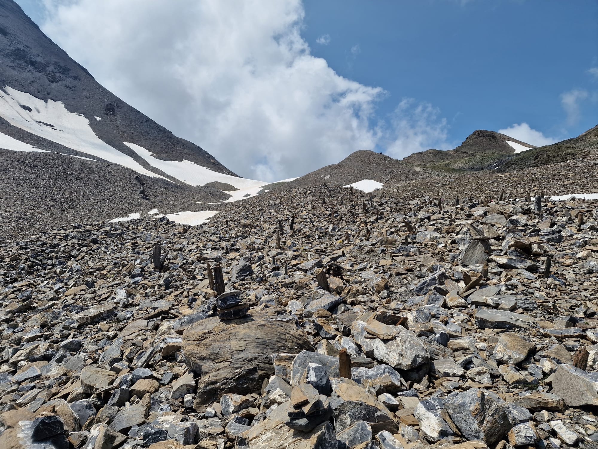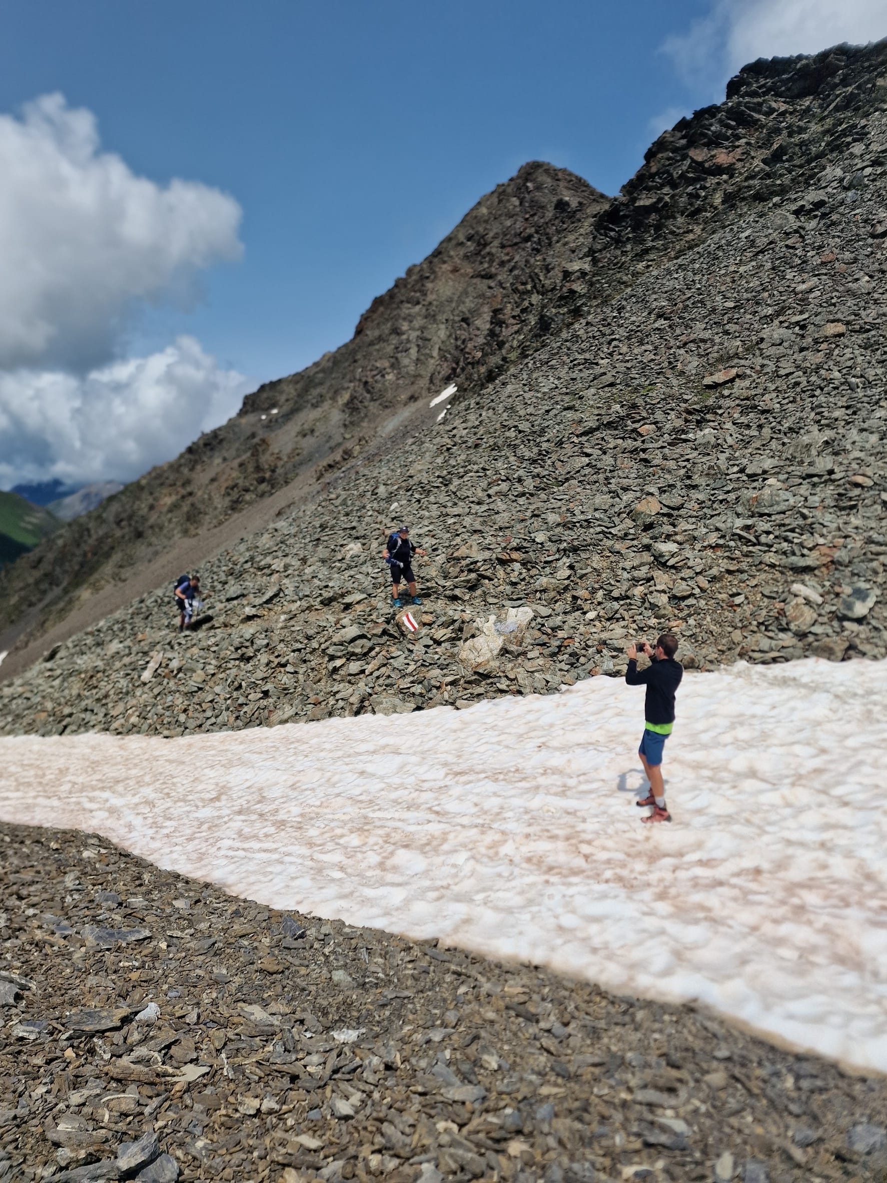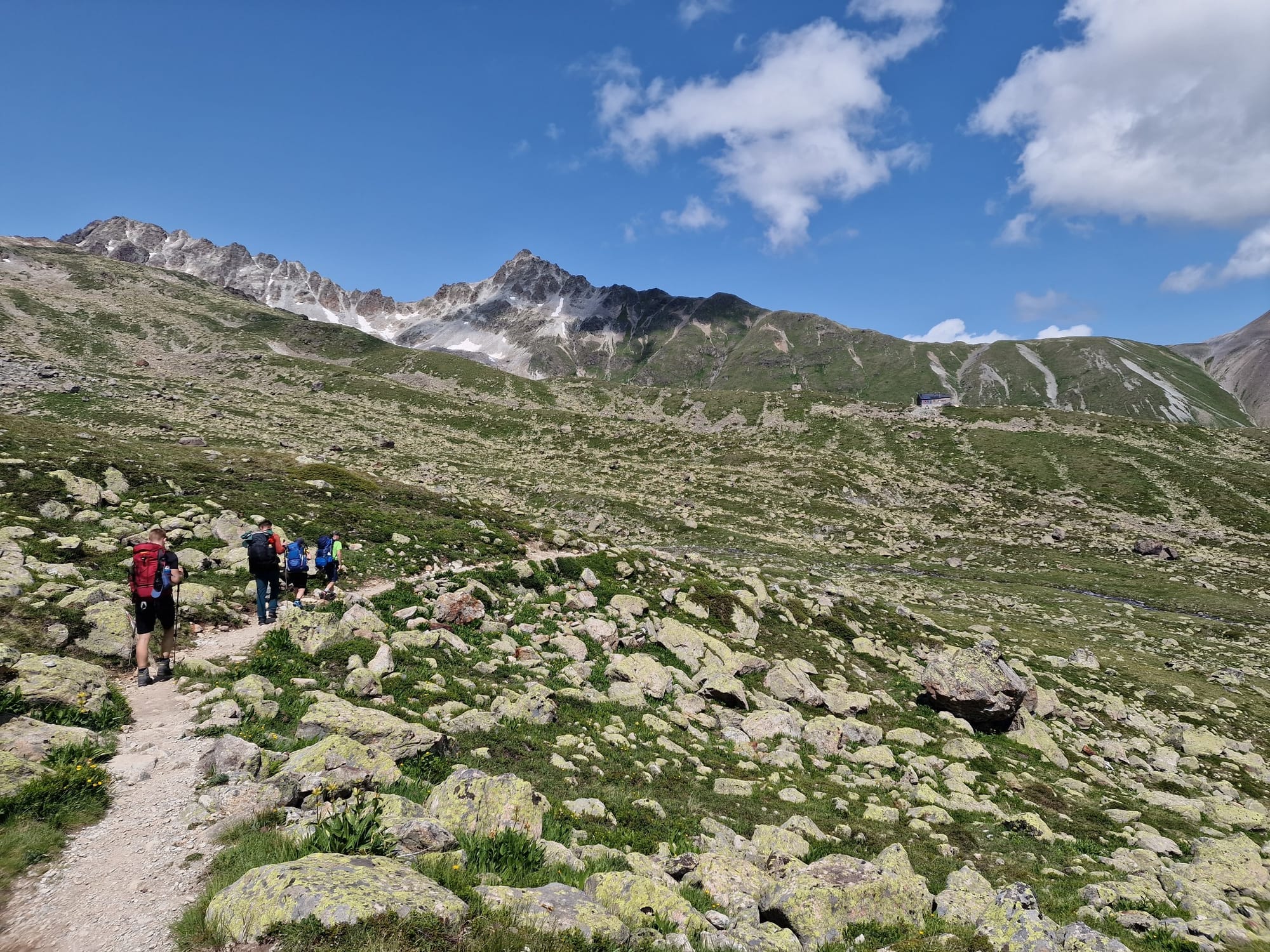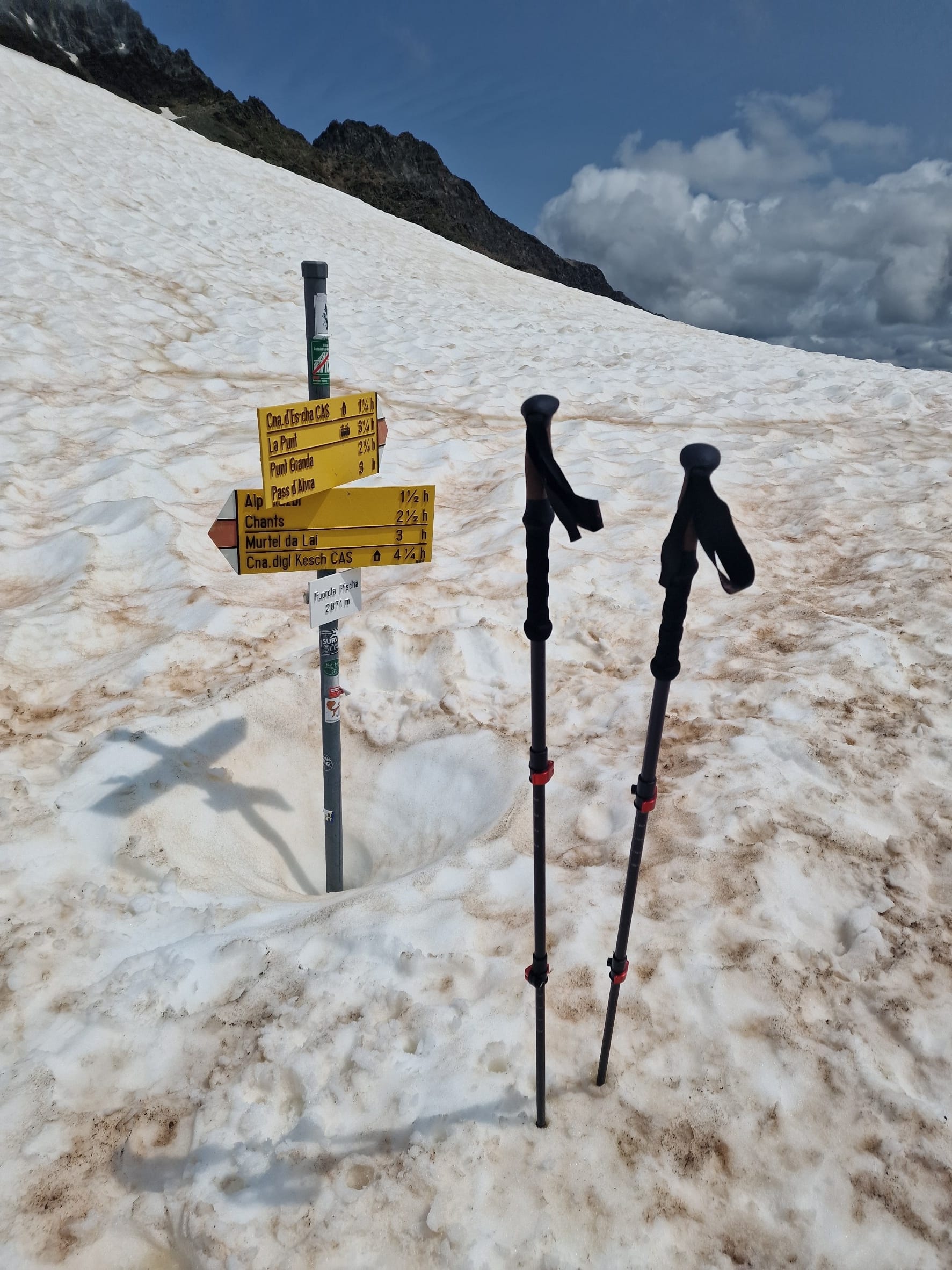 Auf halber Höhe kam die Sonne wieder heraus und war danach unser Begleiter auf dem restlichen Tag. Nach einer kurzen Verschnaufpause ging es dann hinauf auf den Pass, die Fuorcla Pischa auf 2871 Metern.