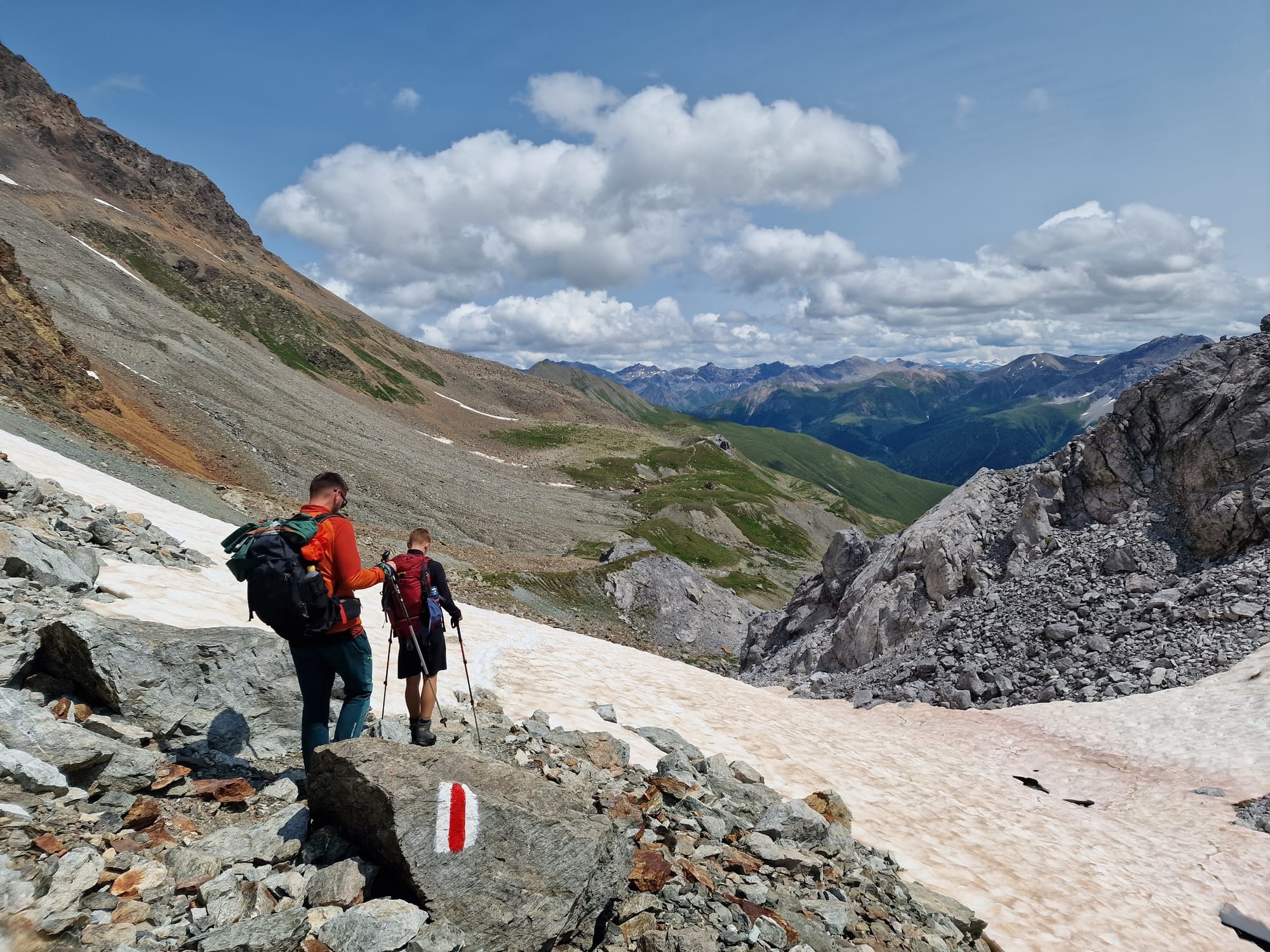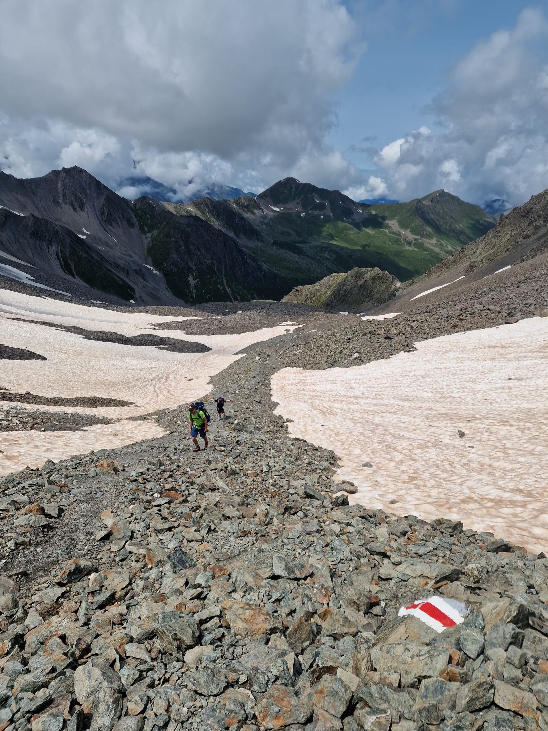 Auf dem Abstieg zur Hütte kamen wir erst an einem riesigen Steinfeld vorbei, wirklich beeindruckend. Danach eröffnete sich uns ein Fernblick mit so wundervollen Aussichten, dass wir aus dem Staunen und Fotografieren kaum herauskamen.