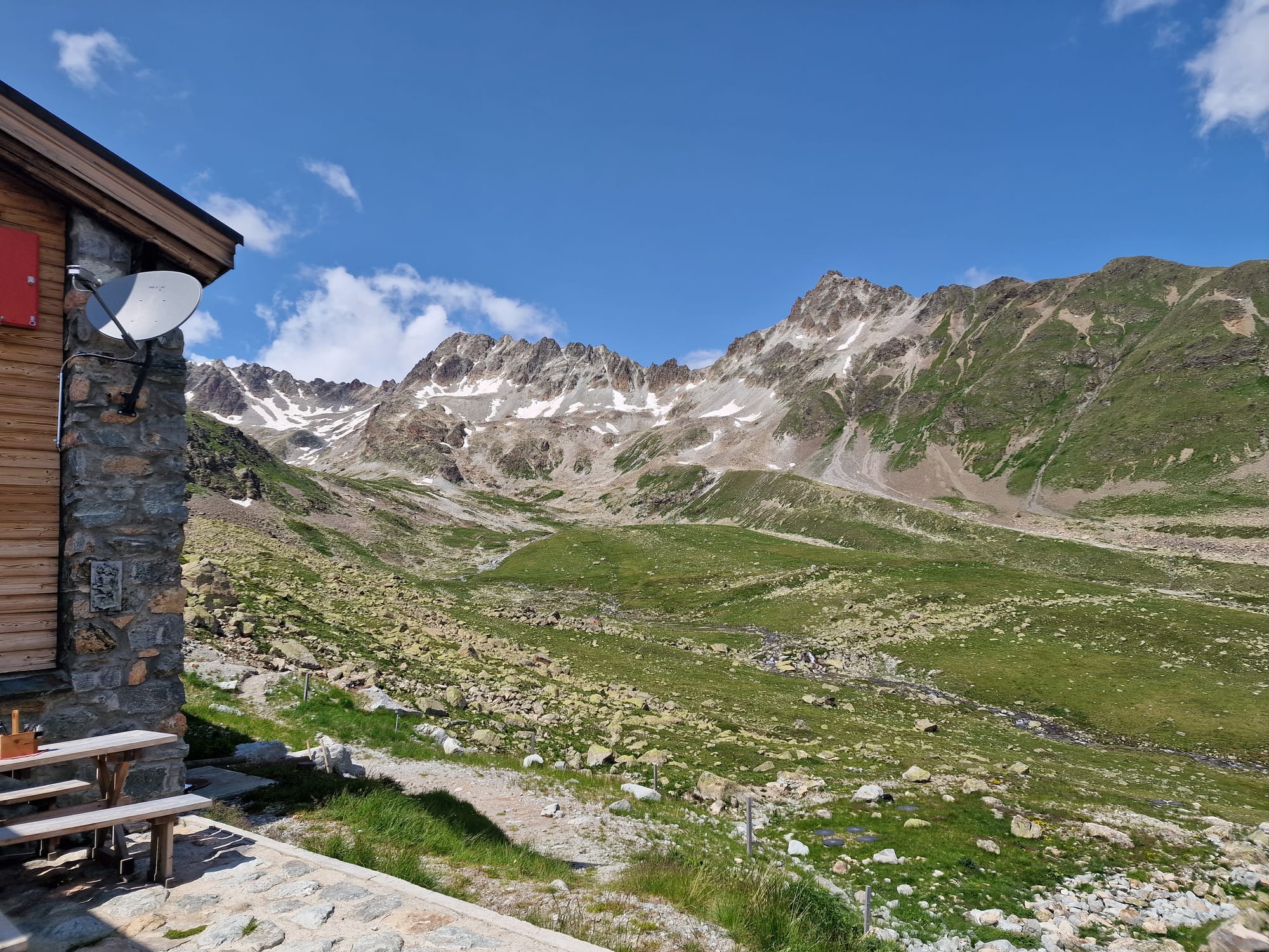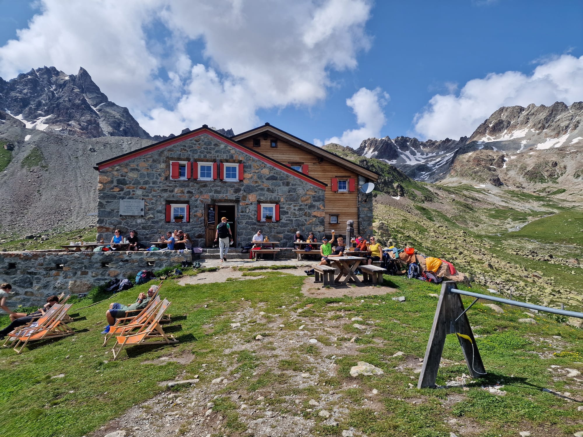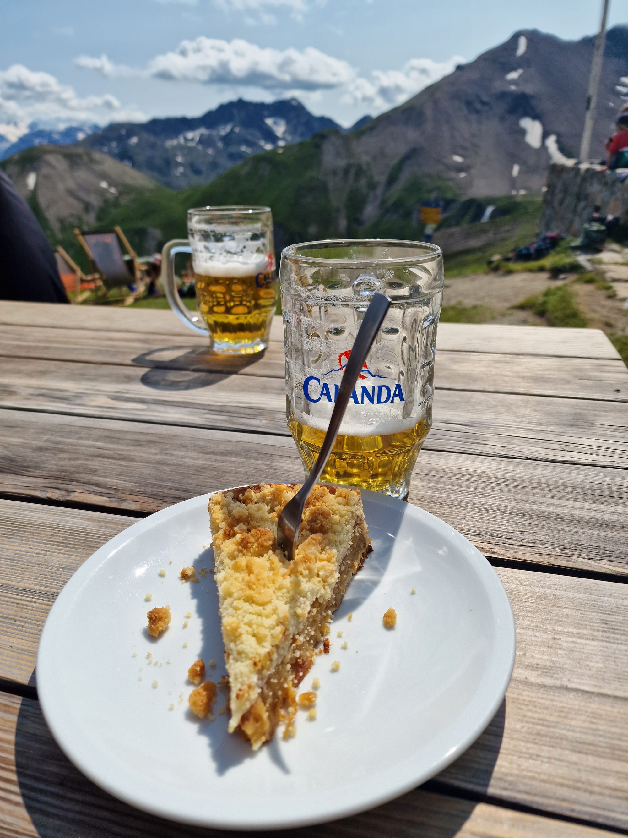 An der Hütte angekommen, waren wir überglücklich. Eine wunderschöne, einfache Unterkunft mit einer tollen Aussicht, wir genossen Bier, Aperol Spritz und Kuchen in der Sonne und fühlten uns wie Könige.