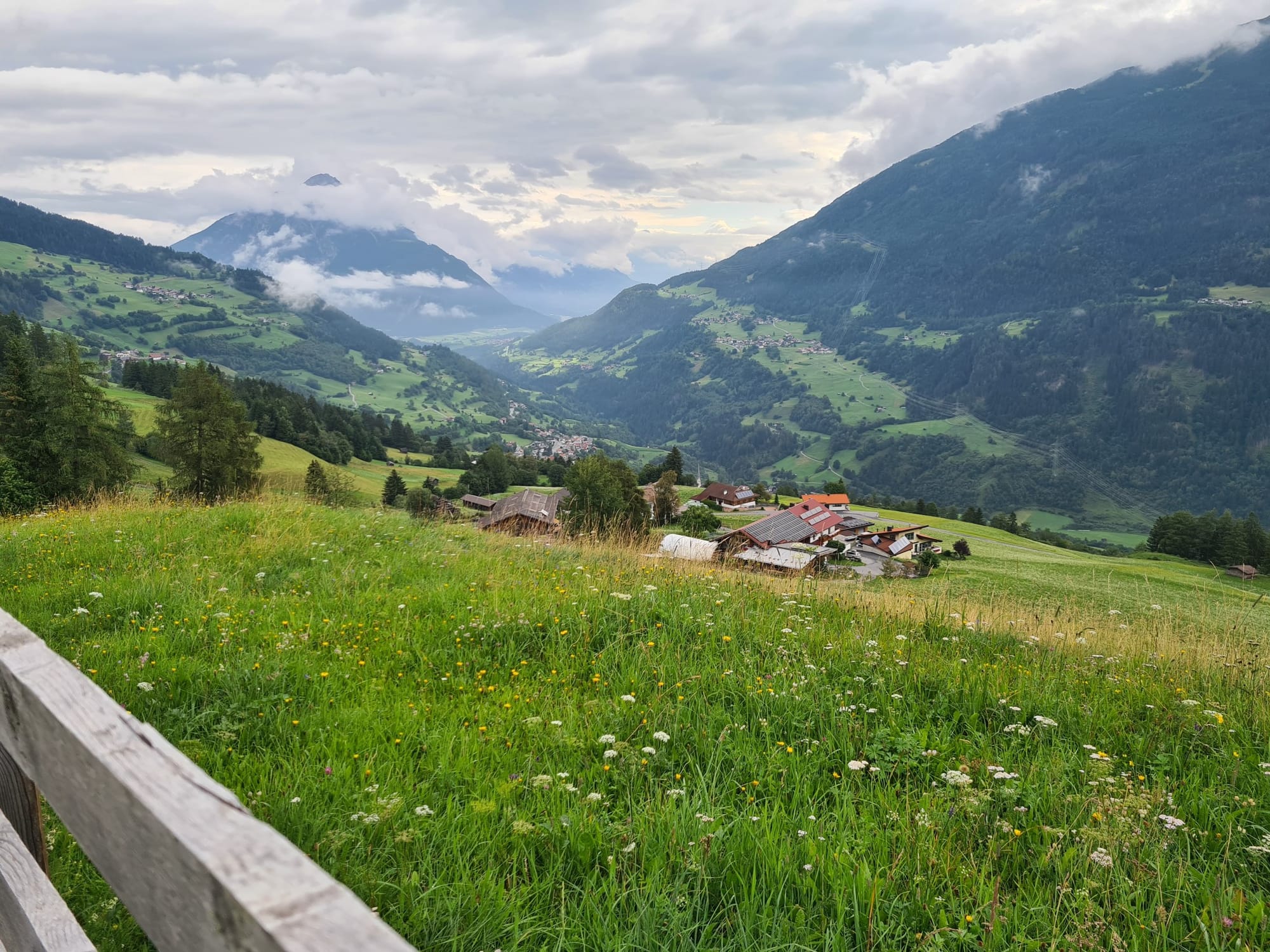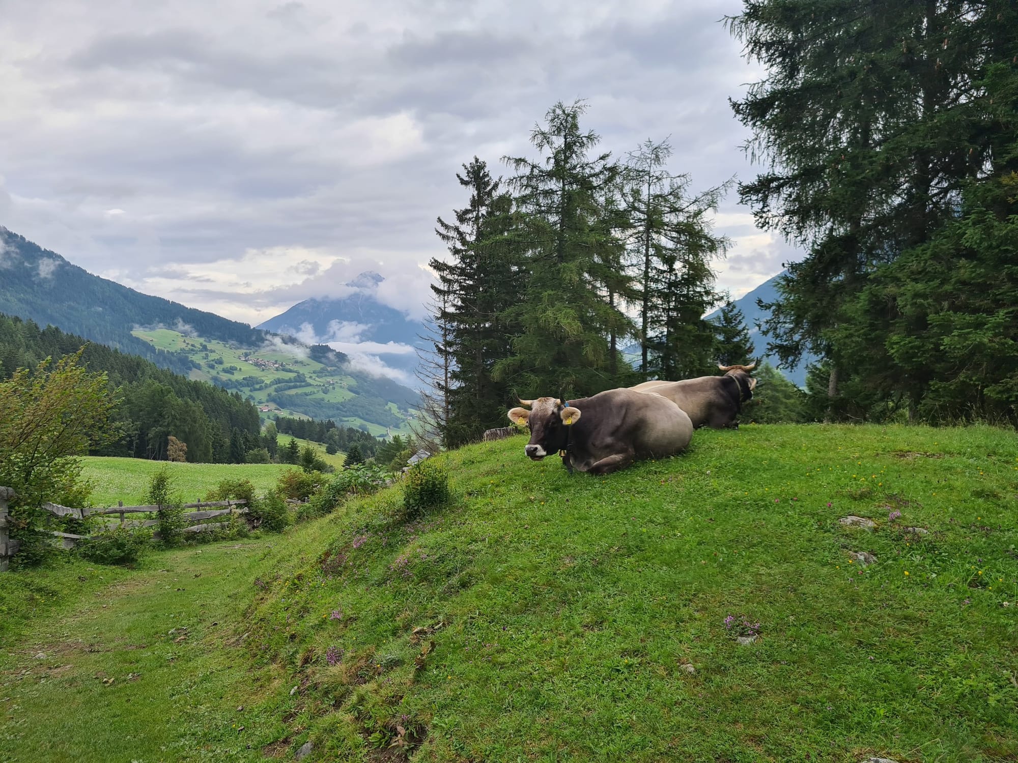 Der Morgen auf der Larcher-Alm war bezaubernd, nach einem stärkenden Frühstück in unserer Gruppe liefen wir hinab nach Wenns, einem kleinen Dörfchen am Eingang des Pitztals.