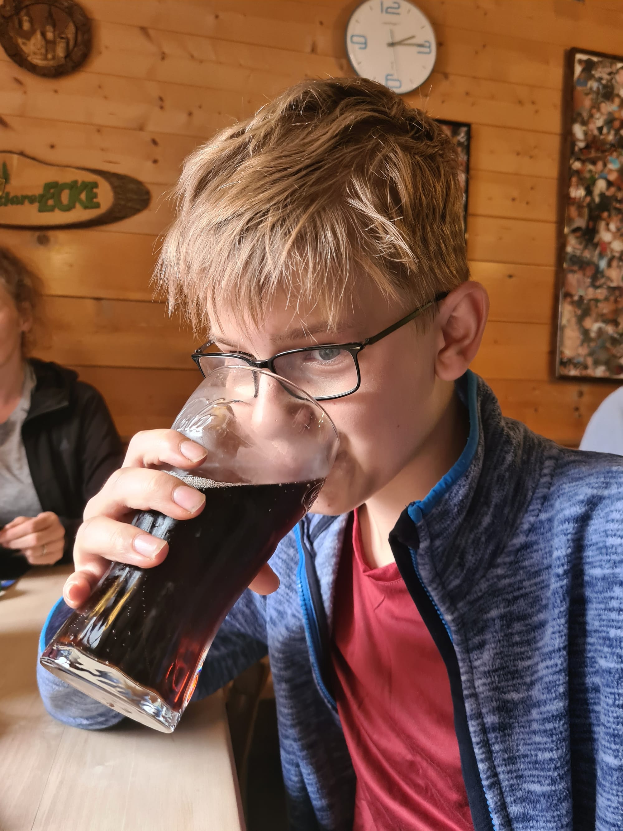 Es folgte die obligatorische Schnapps-Runde und auch mein Sohn kam auf seine Kosten, der Schokoladenkuchen war seiner Meinung nach einer der Besten, den er je gegessen hatte. Ich kann mich noch felsenfest an das T-Shirt des Hüttenwirts erinnern, auf dem geschrieben stand: