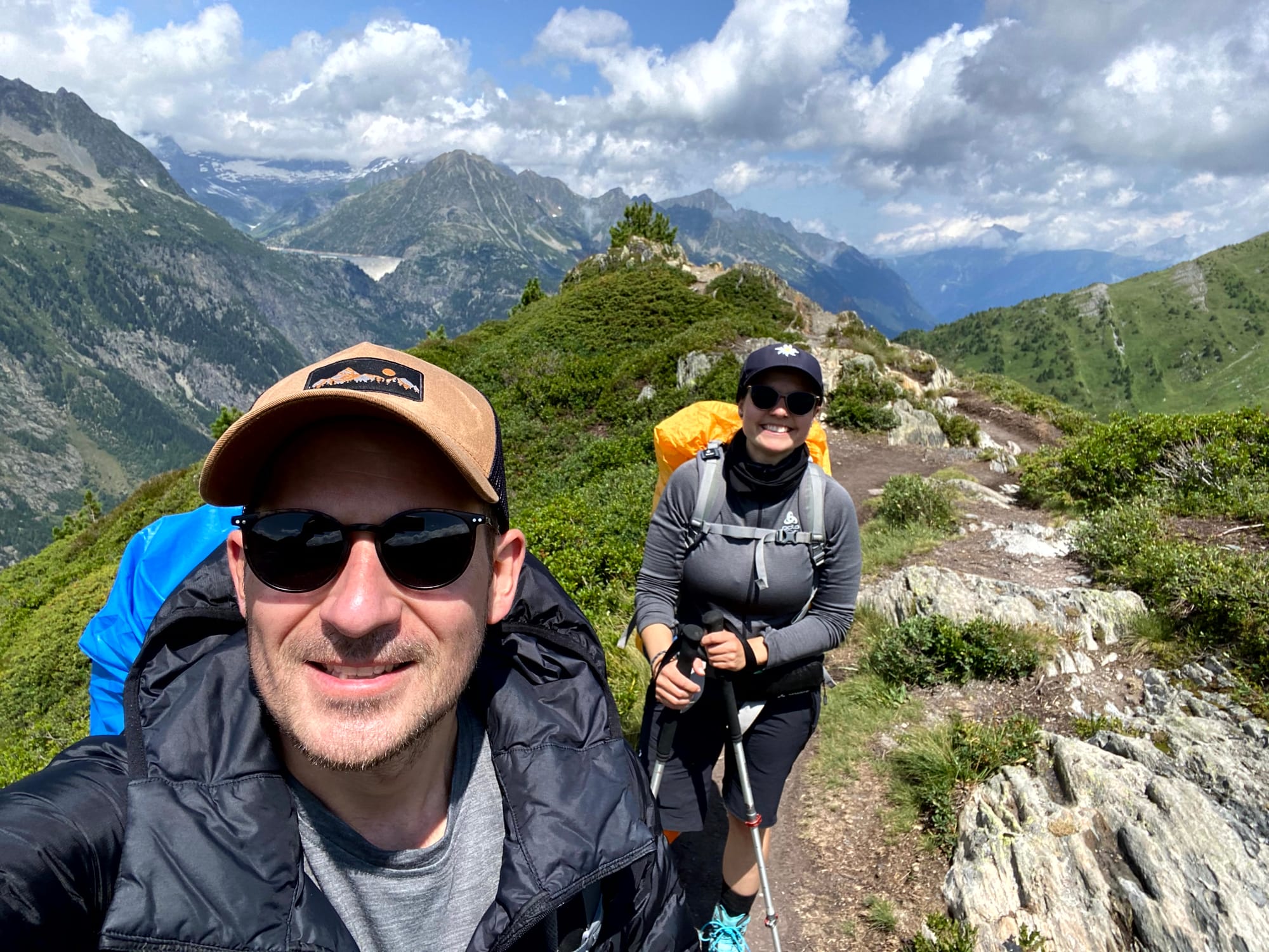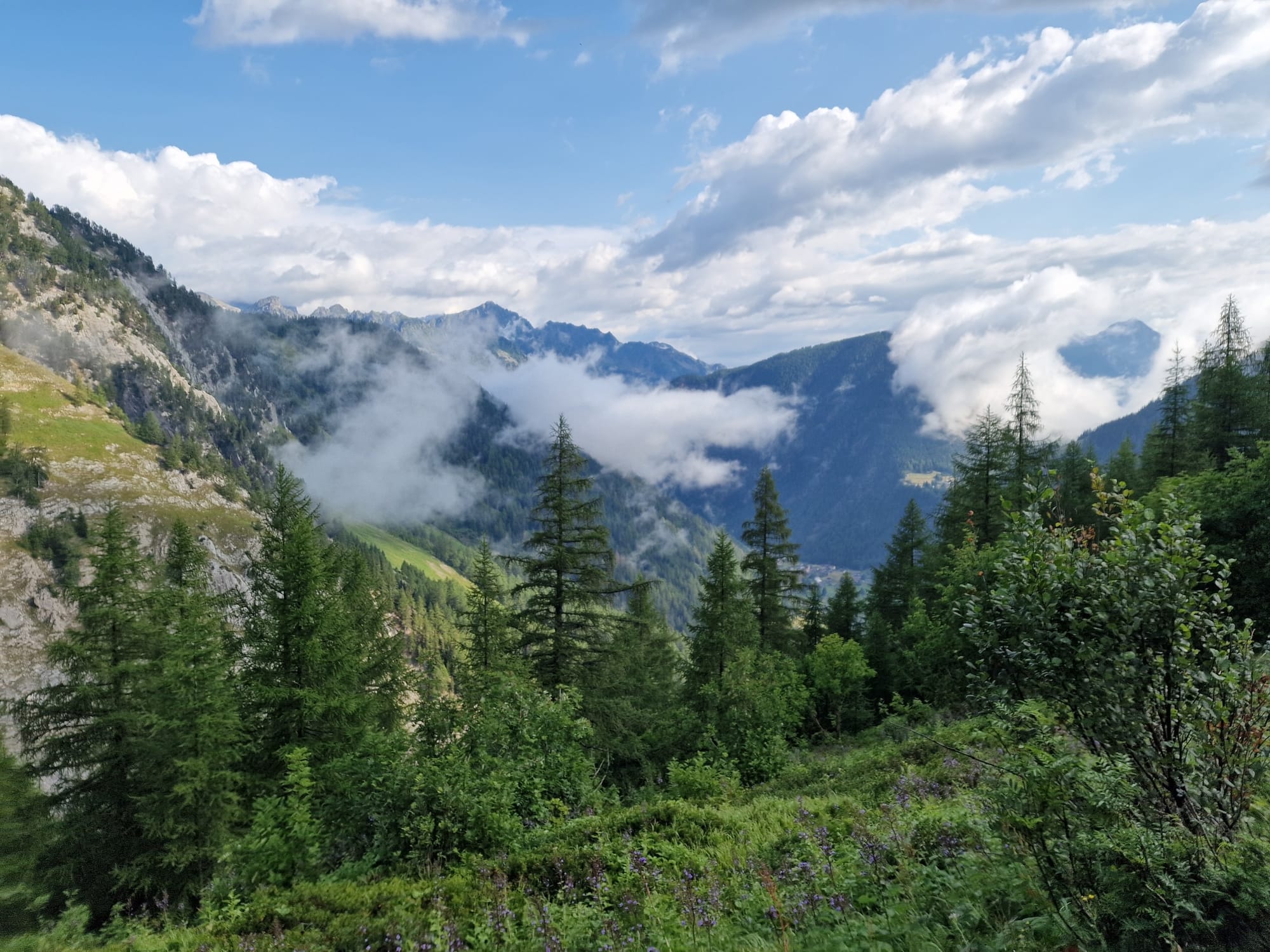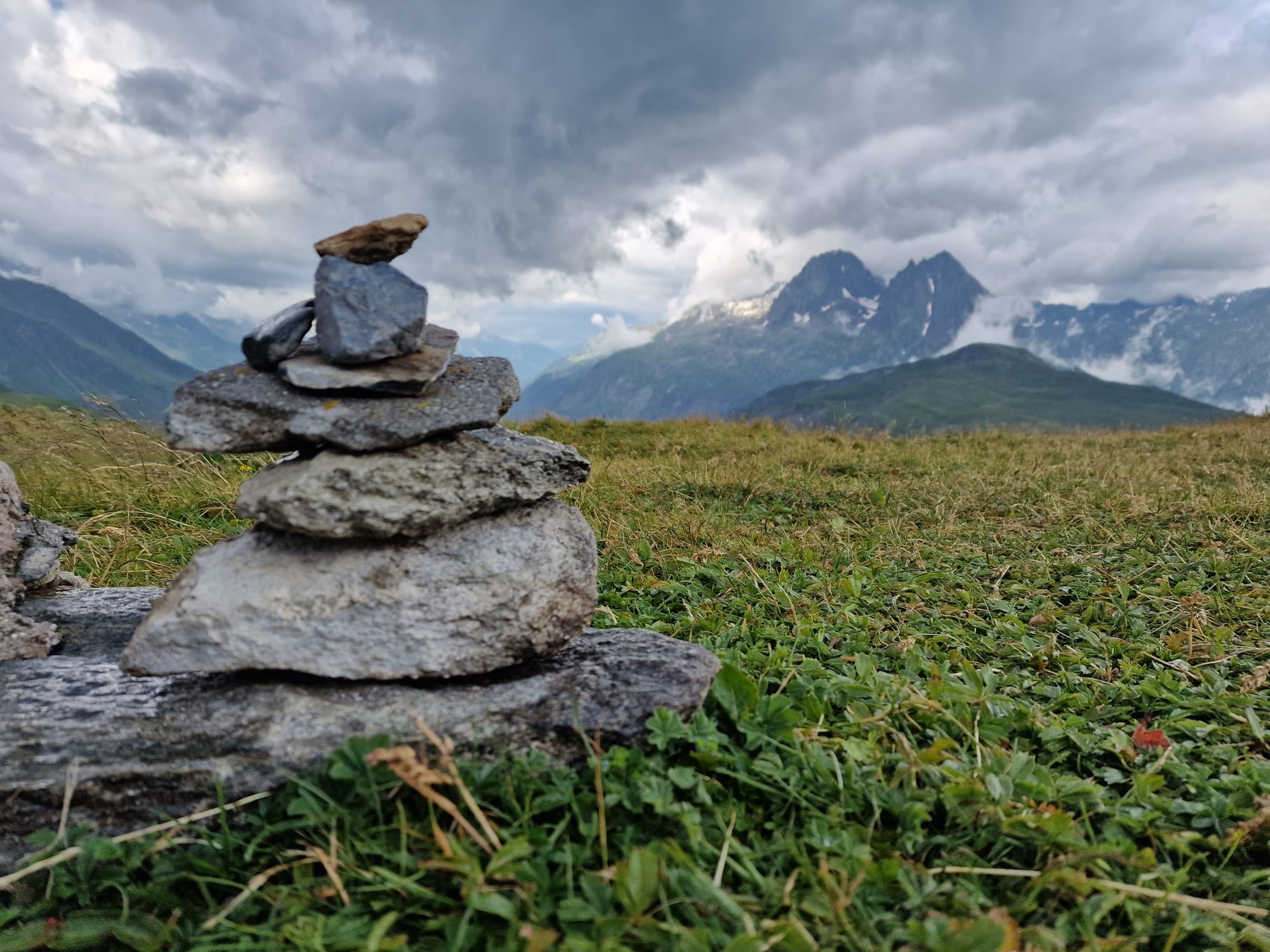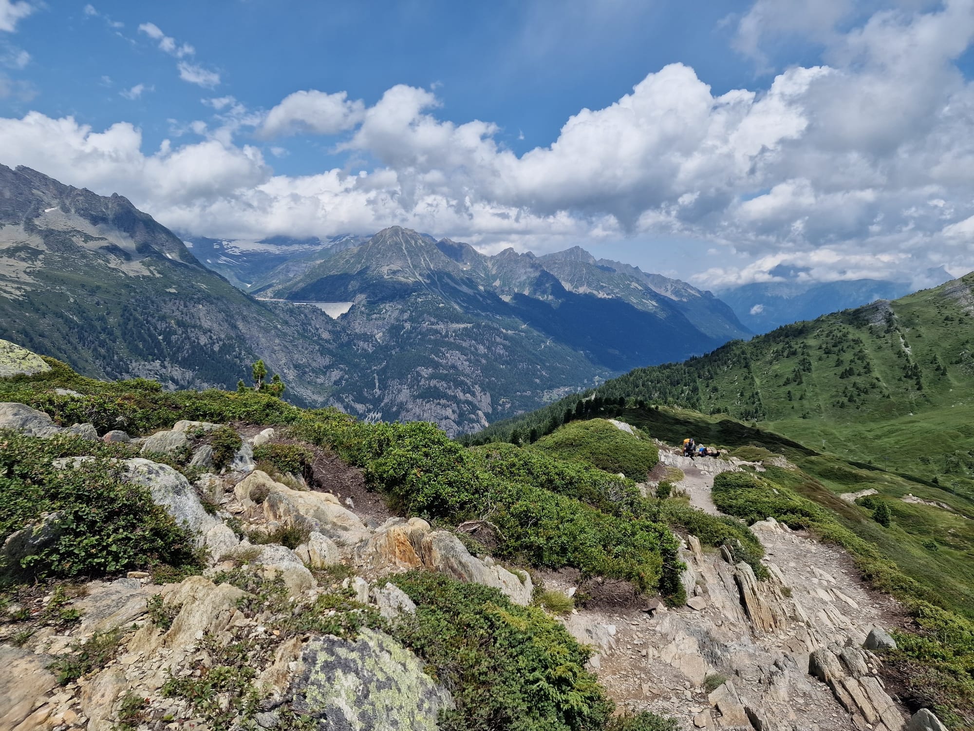 Am fünften Tag starteten wir in Trient, um über den Pass bei der Refugé du Col de Balme wieder nach Frankreich zu wandern. Eine wunderschöne Tour, auf der wir so viele traumhafte Bilder gesehen und gemacht haben. Unser Weg begann aber gleich mit einem ordentlichen Aufstieg, bei dem Daniel kurz vor dem Erreichen des Passes wieder in einem Affenzahn nach oben stiefelte, dass ich kaum hinterherkam. Es war wieder ein Gewitter, zumindest aber schlechtes Wetter im Anmarsch.