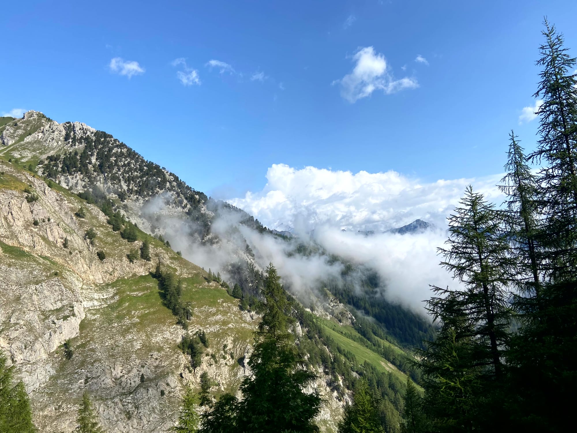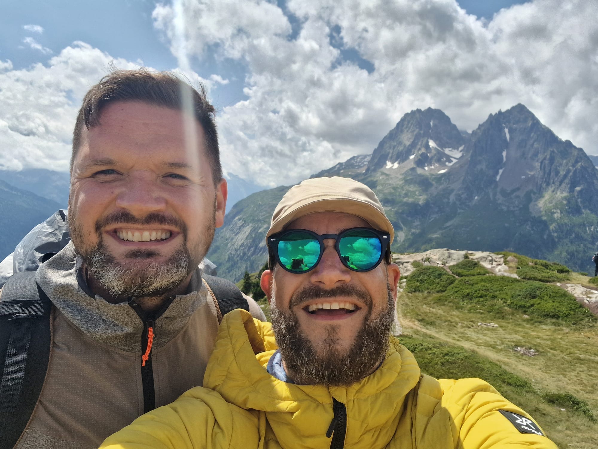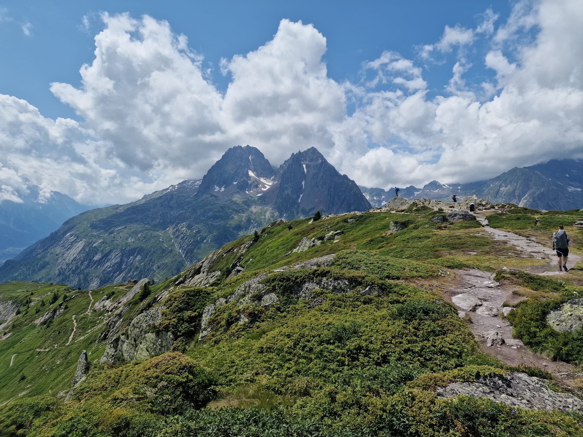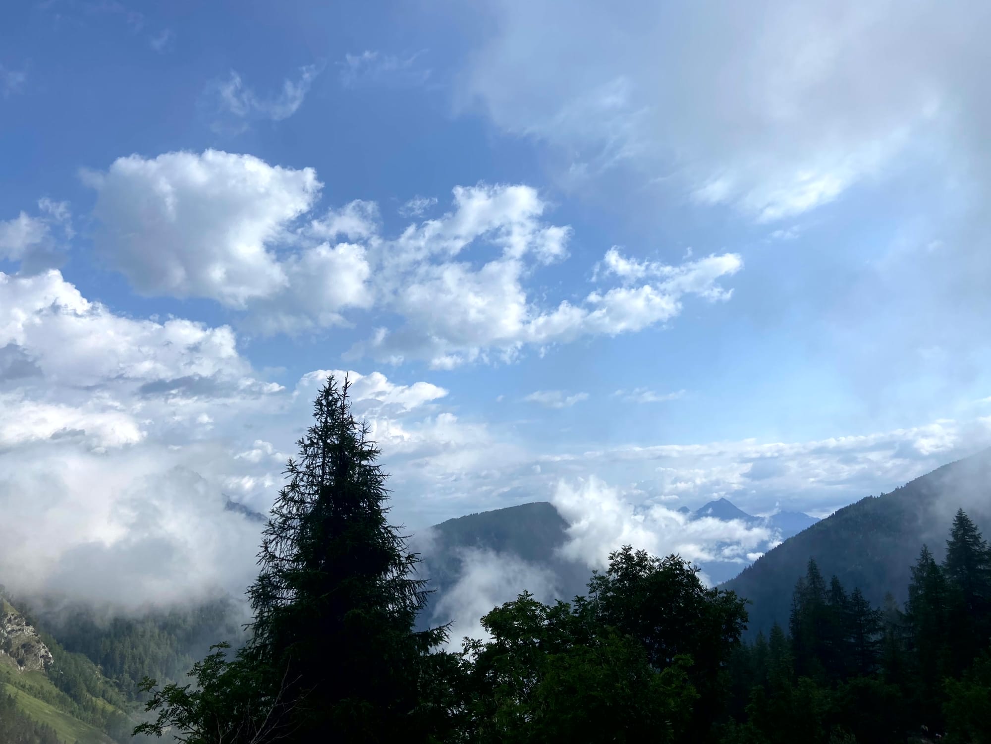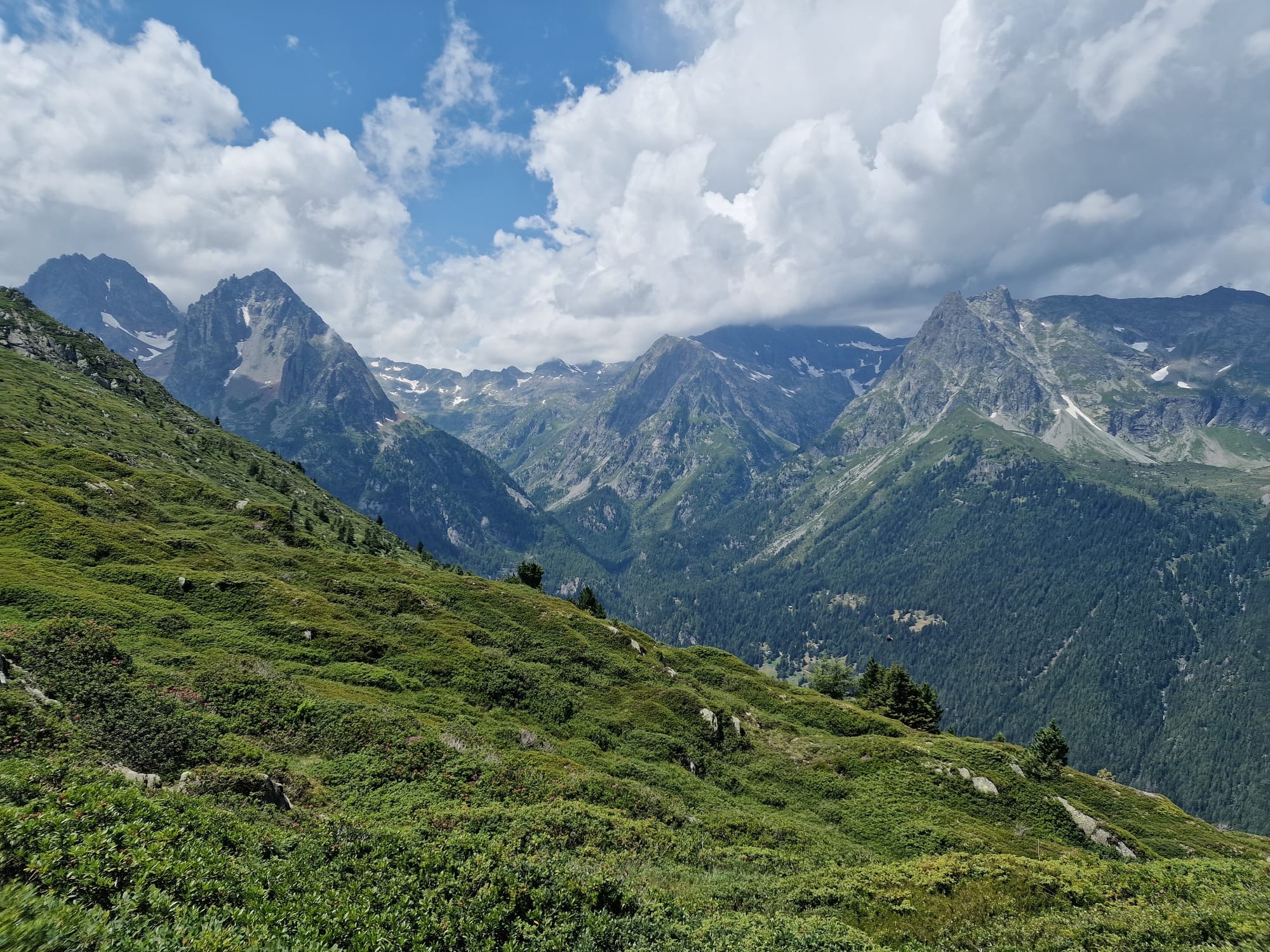 Am fünften Tag starteten wir in Trient, um über den Pass bei der Refugé du Col de Balme wieder nach Frankreich zu wandern. Eine wunderschöne Tour, auf der wir so viele traumhafte Bilder gesehen und gemacht haben. Unser Weg begann aber gleich mit einem ordentlichen Aufstieg, bei dem Daniel kurz vor dem Erreichen des Passes wieder in einem Affenzahn nach oben stiefelte, dass ich kaum hinterherkam. Es war wieder ein Gewitter, zumindest aber schlechtes Wetter im Anmarsch.
