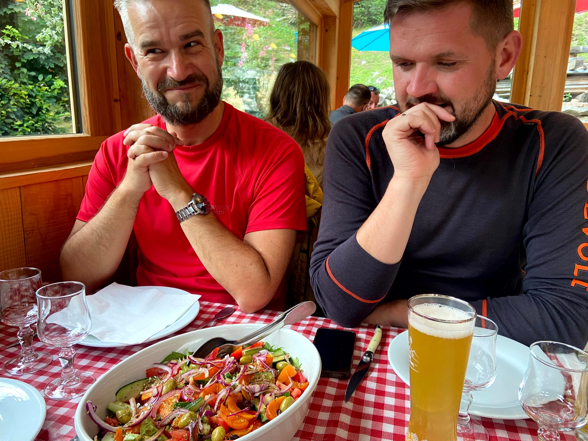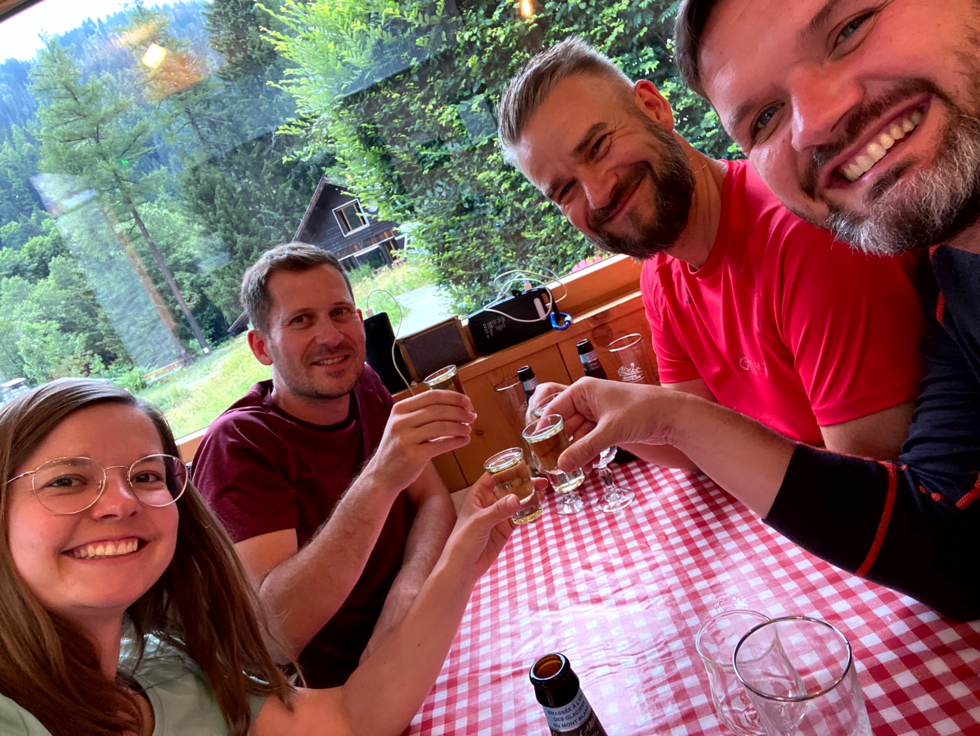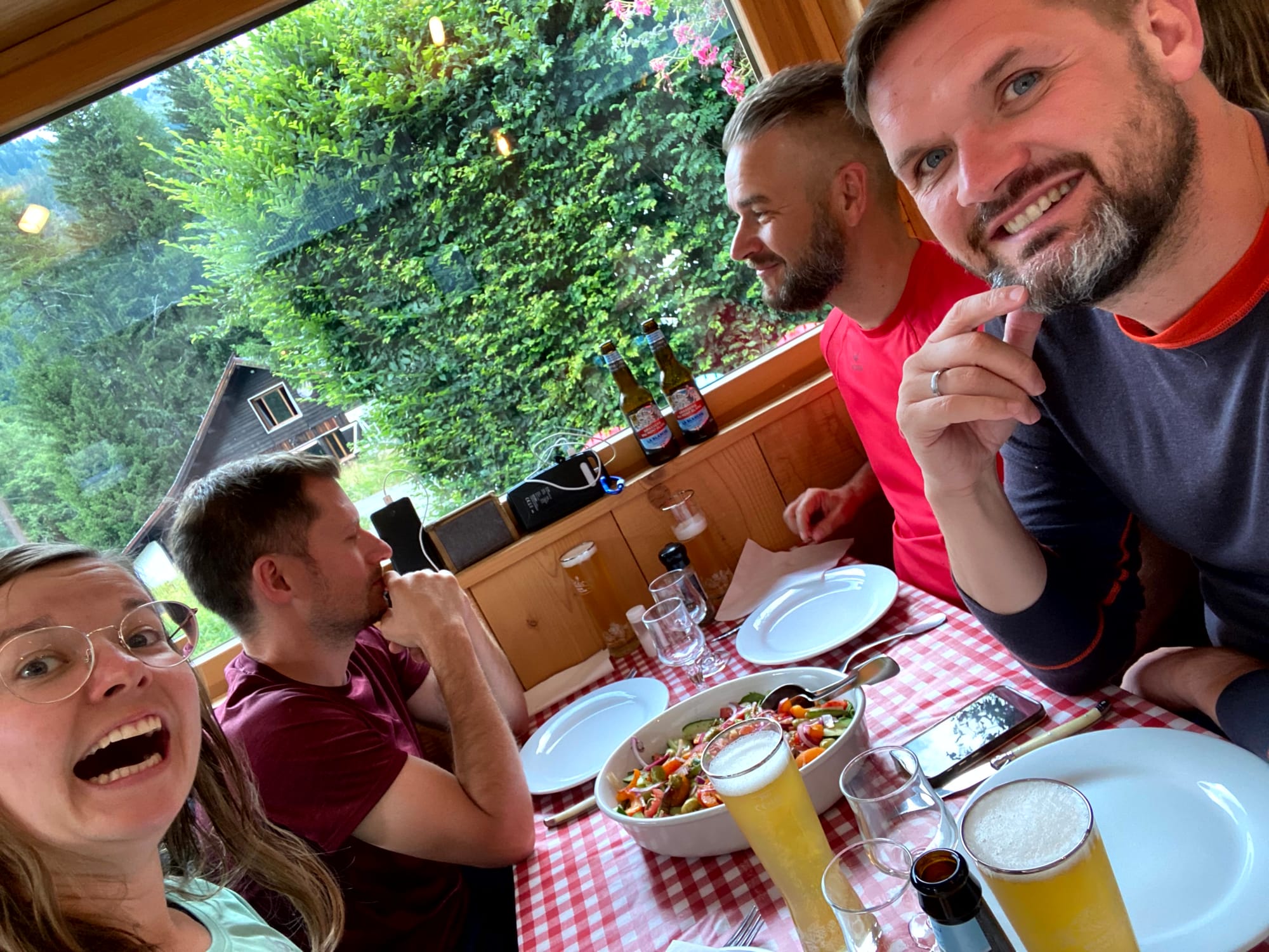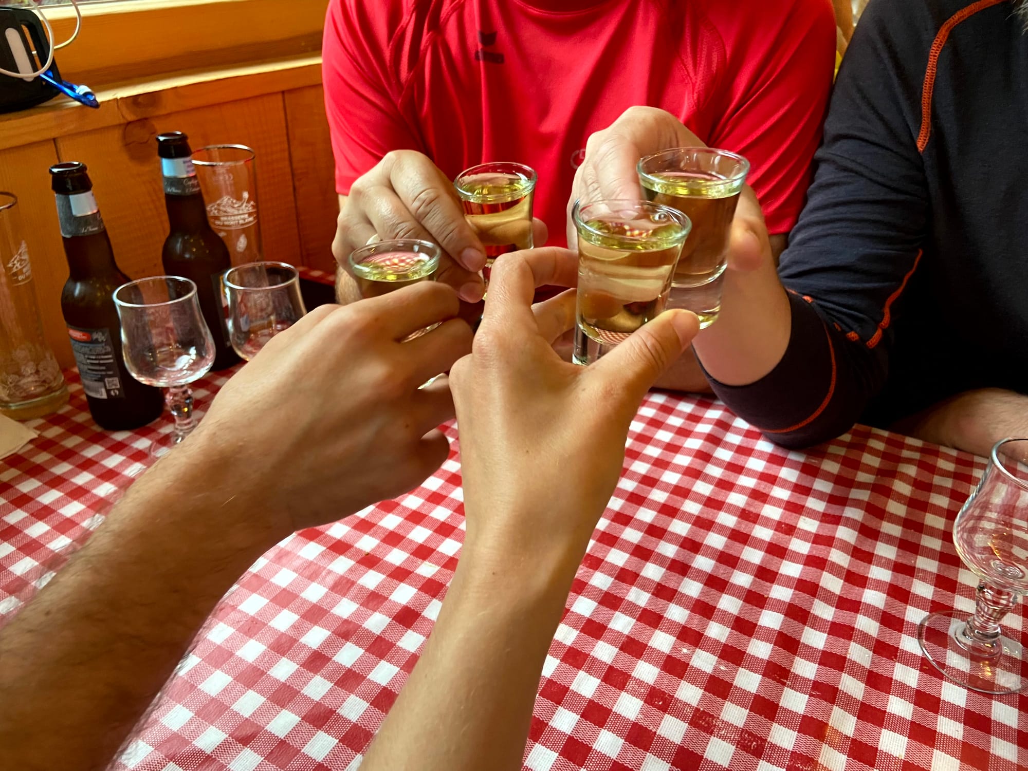 Und so machten wir Pause und warteten auf Mareike und Felix, die es deutlich ruhiger angingen - und auch unbeschadet oben ankamen. Wir nutzen die Gelegenheit und machten in der Hütte eine Rast.