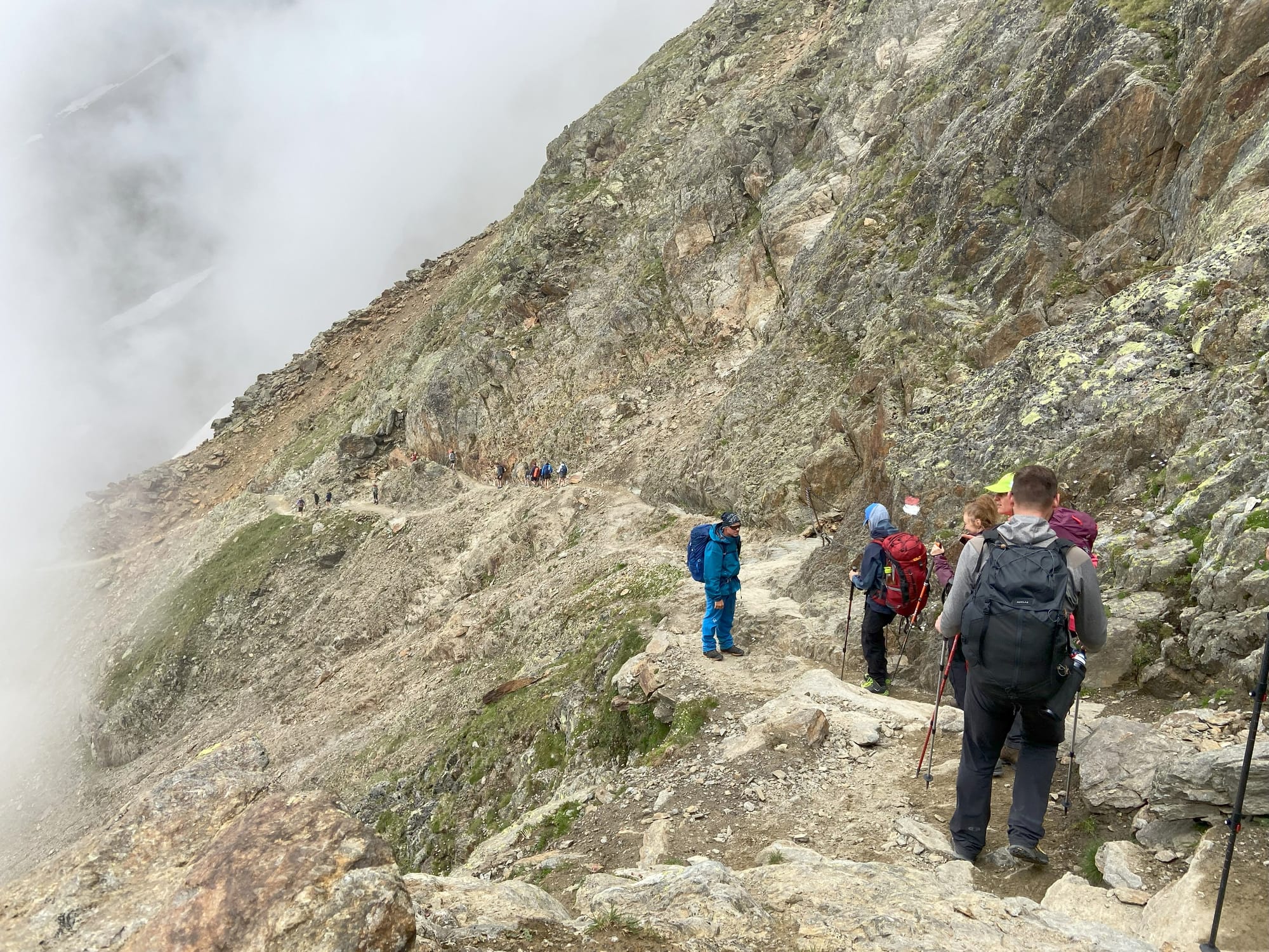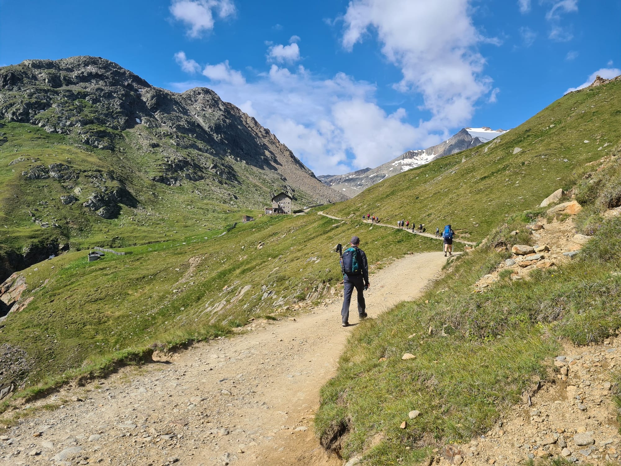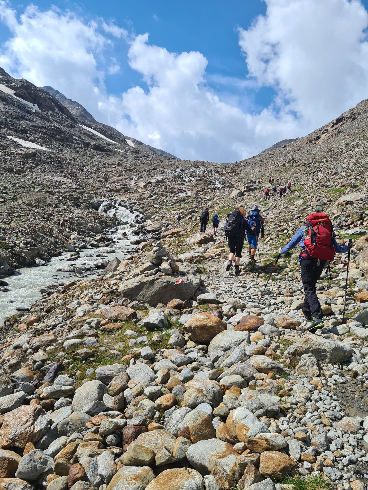 Und es ging erneut hinauf, unser erstes Ziel war die Similaun-Hütte auf 3.000 Metern. Zunächst liefen wir auf einem breiten Zufahrtsweg zur Martin-Busch-Hütte.