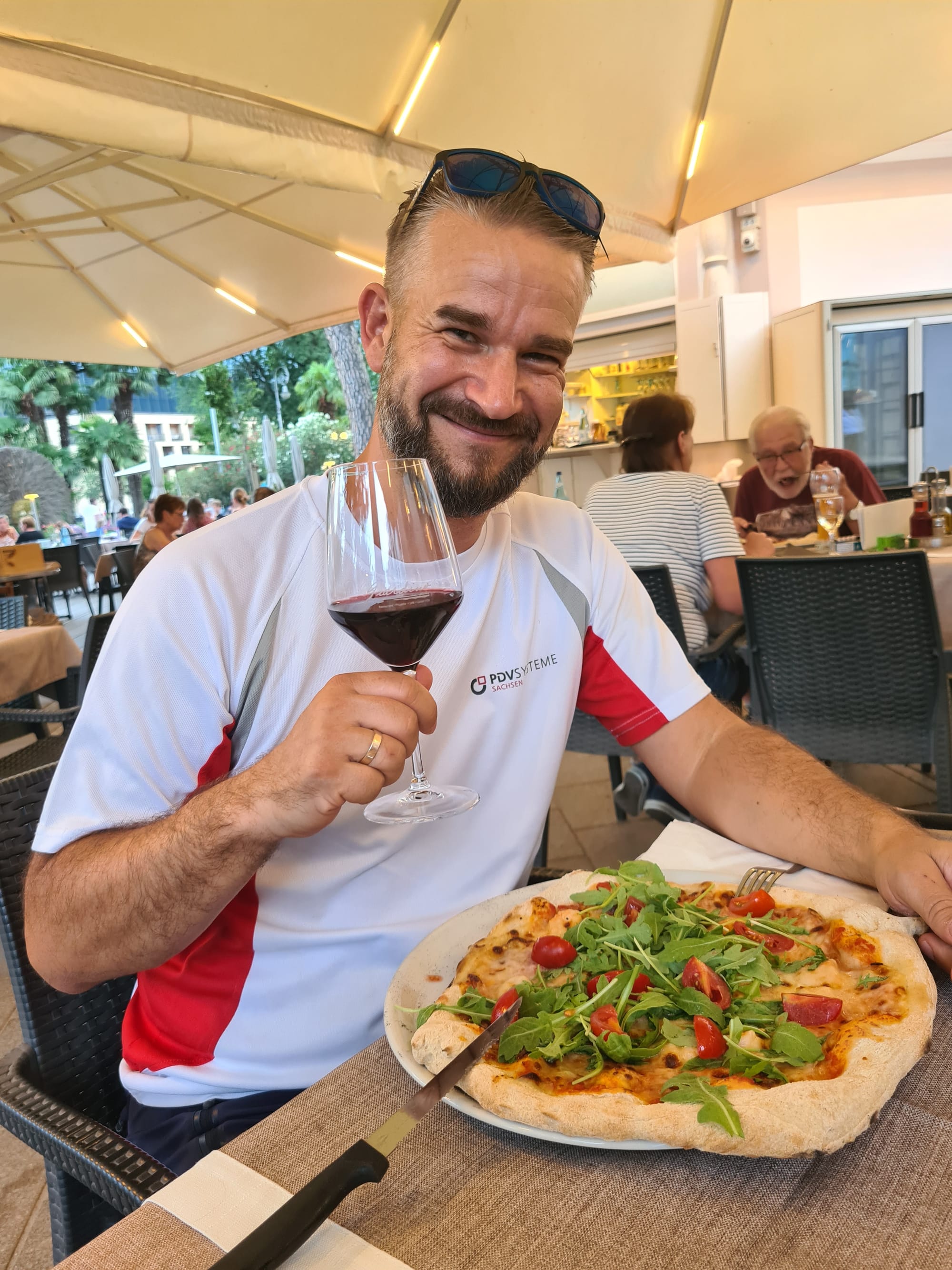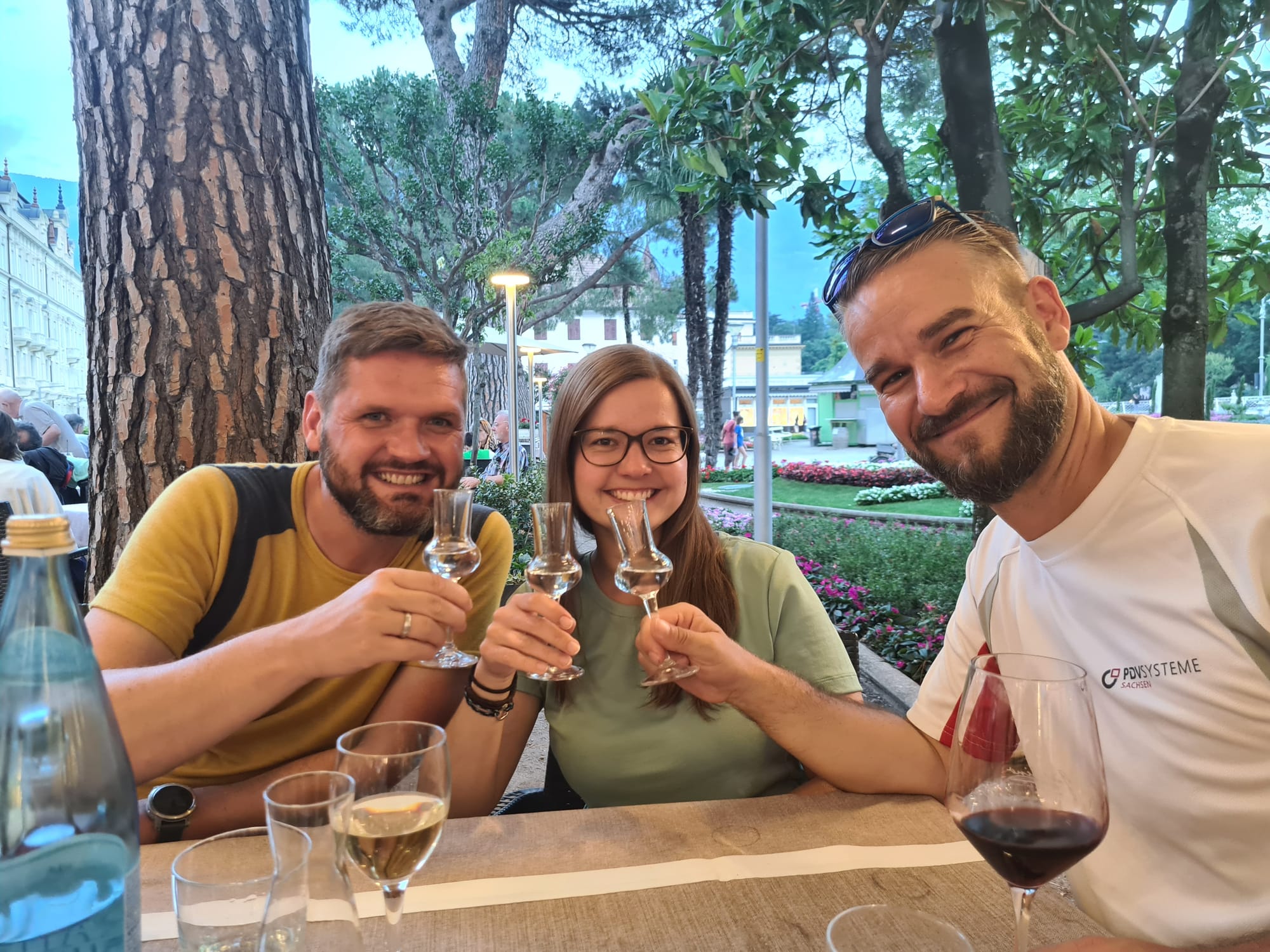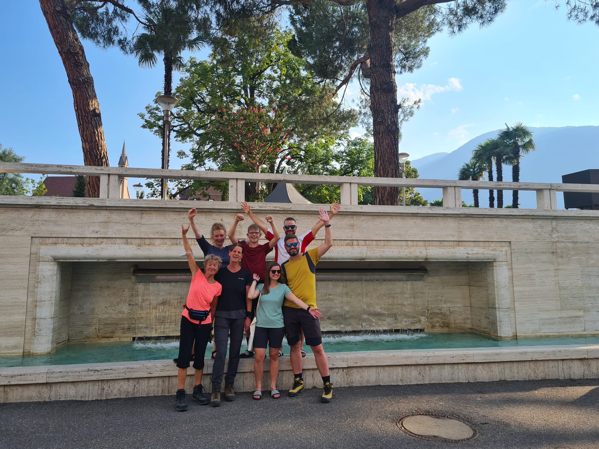 Wir tranken unseren Pflicht-Schnapps direkt an der Hütte am Stausee und wurden danach mit einem Kleinbus nach Meran gebracht. Dort verlebten wir einen Abend, der uns allen noch lange in unseren Schädeln nachwirkte, aber an den wir uns auf allen weiteren Wanderungen immer wieder gern erinnern.