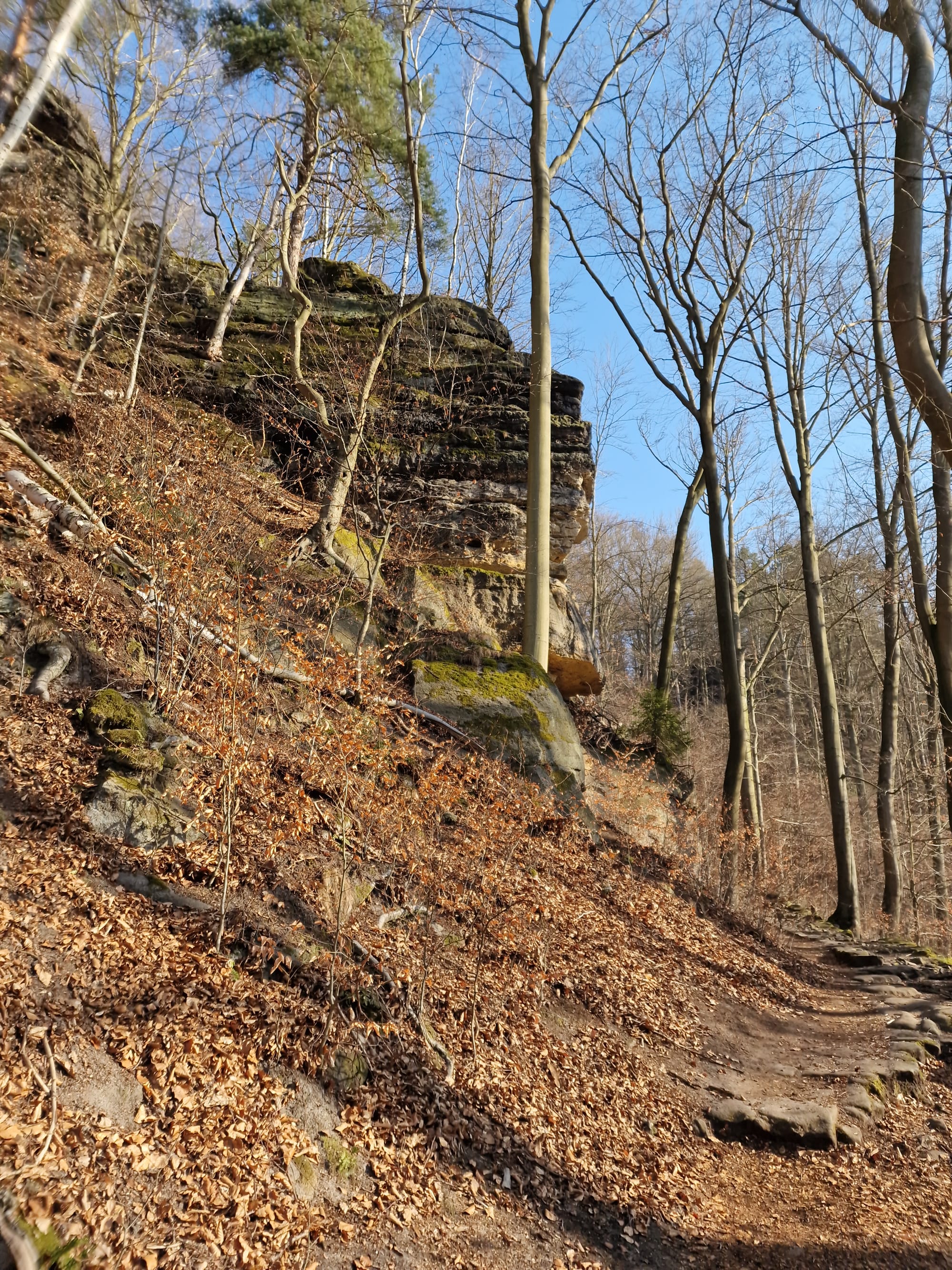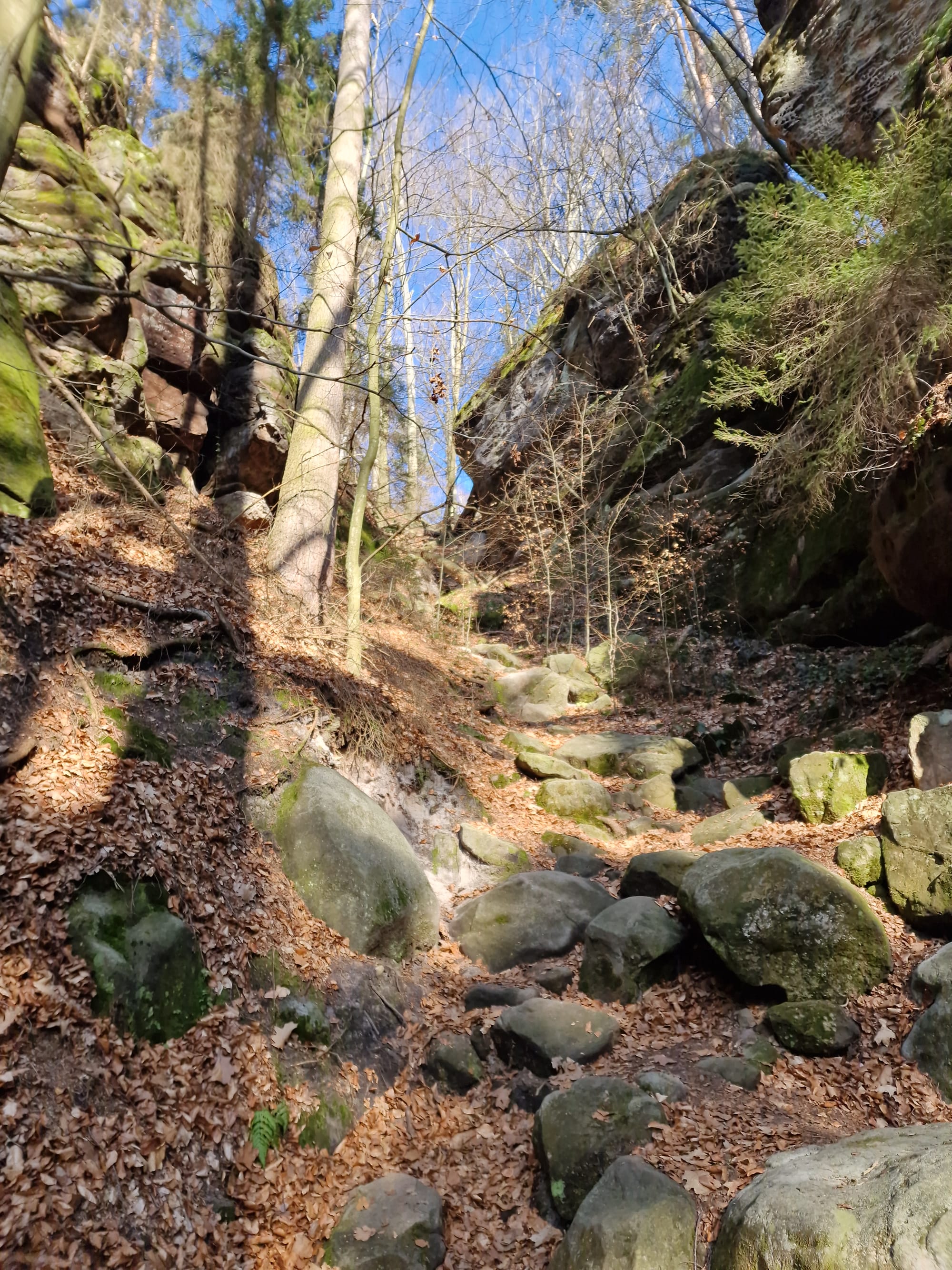 In Rathen setzte ich dann mit der Gierseilfähre über die Elbe auf die andere Elbseite. Von dort lief ich auf dem Rauensteinweg, vorbei an den Laasensteinen auf den Rauenstein.