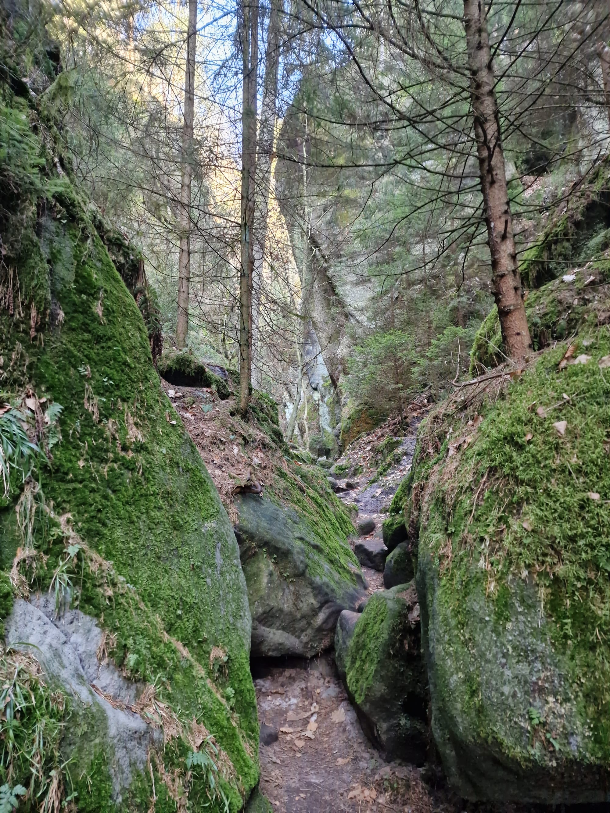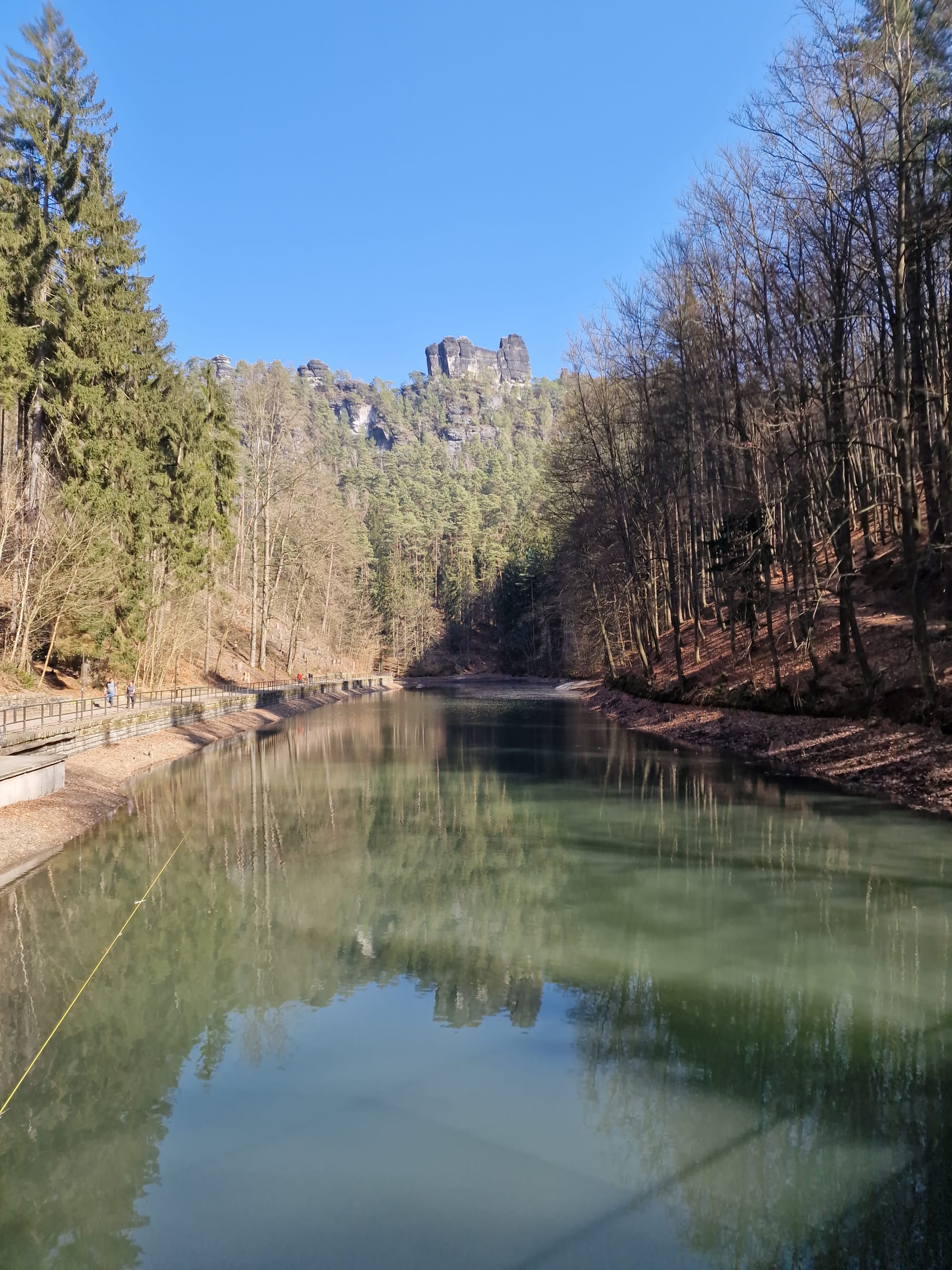 Von der großen Gans ging es durch die Schwedenlöcher hinab in den Amselgrund, entlang des Grünbaches, Amselsees zur Forellenschänke. Ein jedes Mal genieße ich hier eine geräucherte Forelle, wenn ich in der Gegend unterwegs bin.