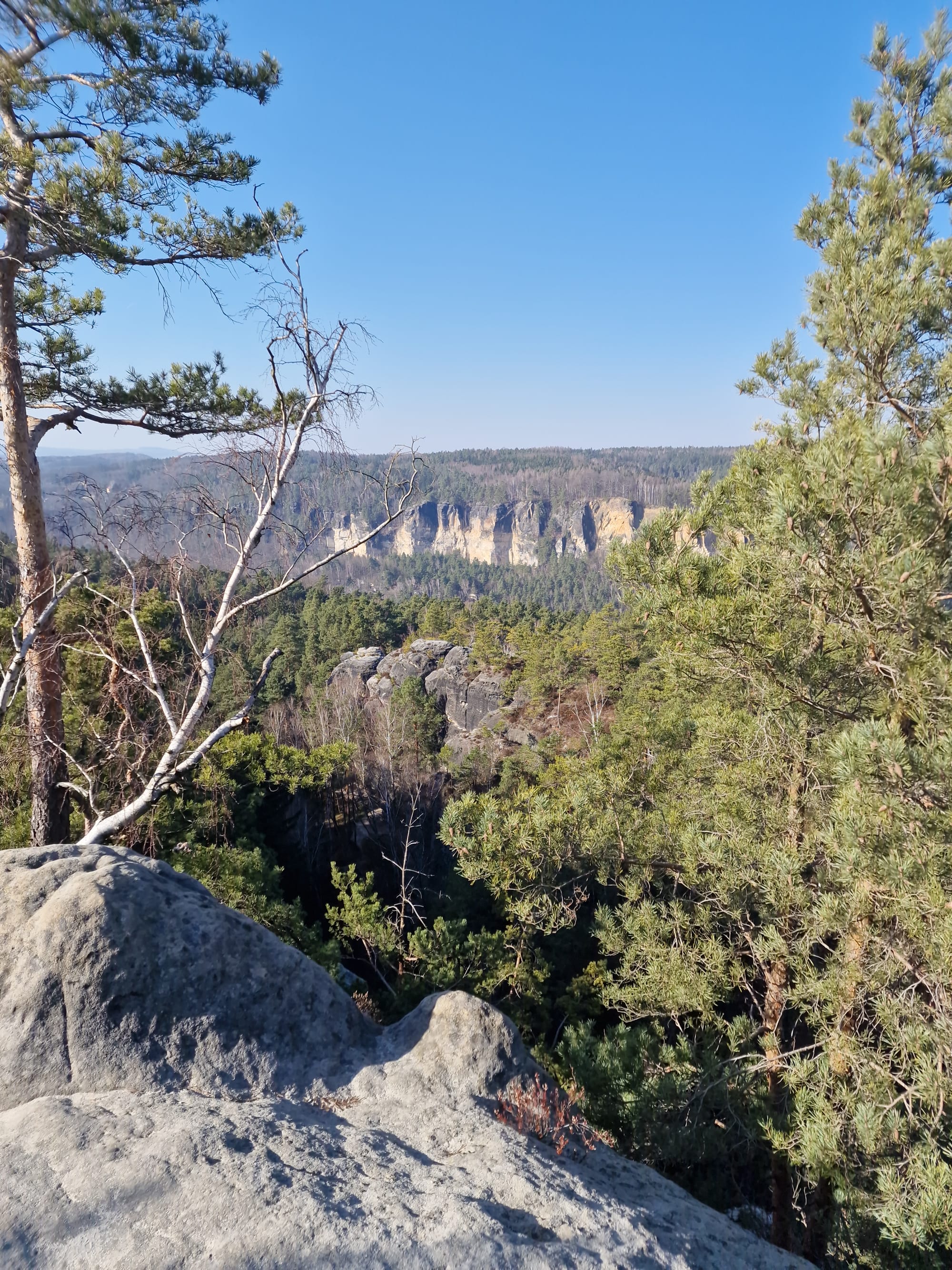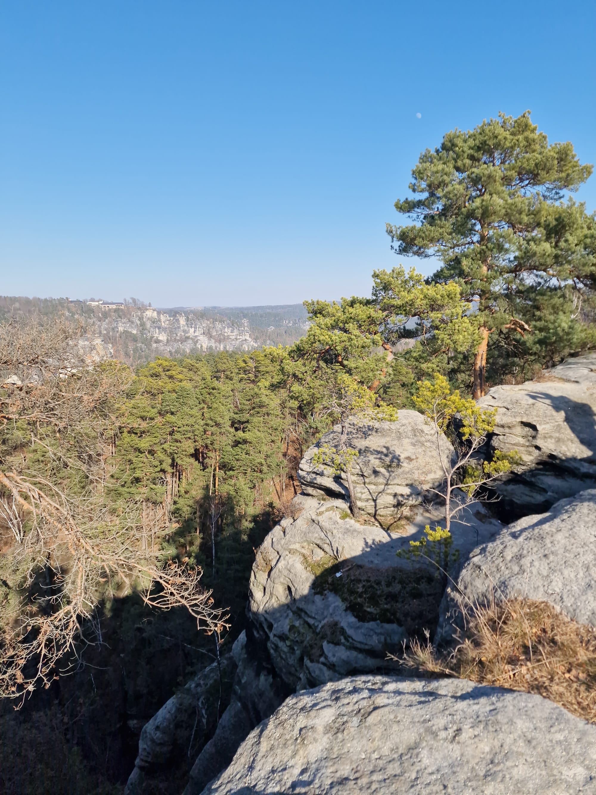 Vom Griesgund ging es danach vor zur Bastei und im Anschluss über den Gansweg vor in Richtung der großen Gans. Von dort hat man einen fantastischen Blick in das Elbtal.