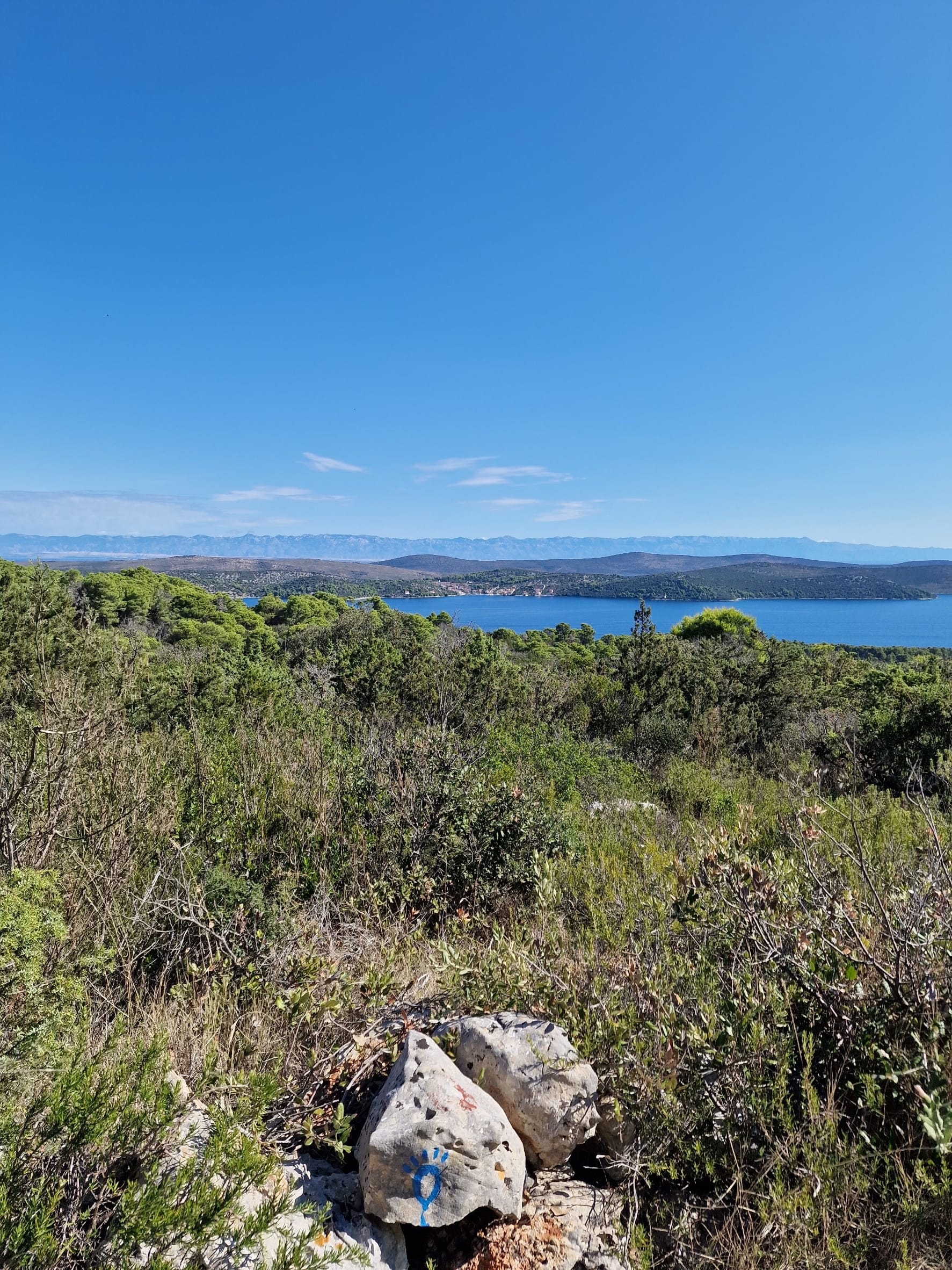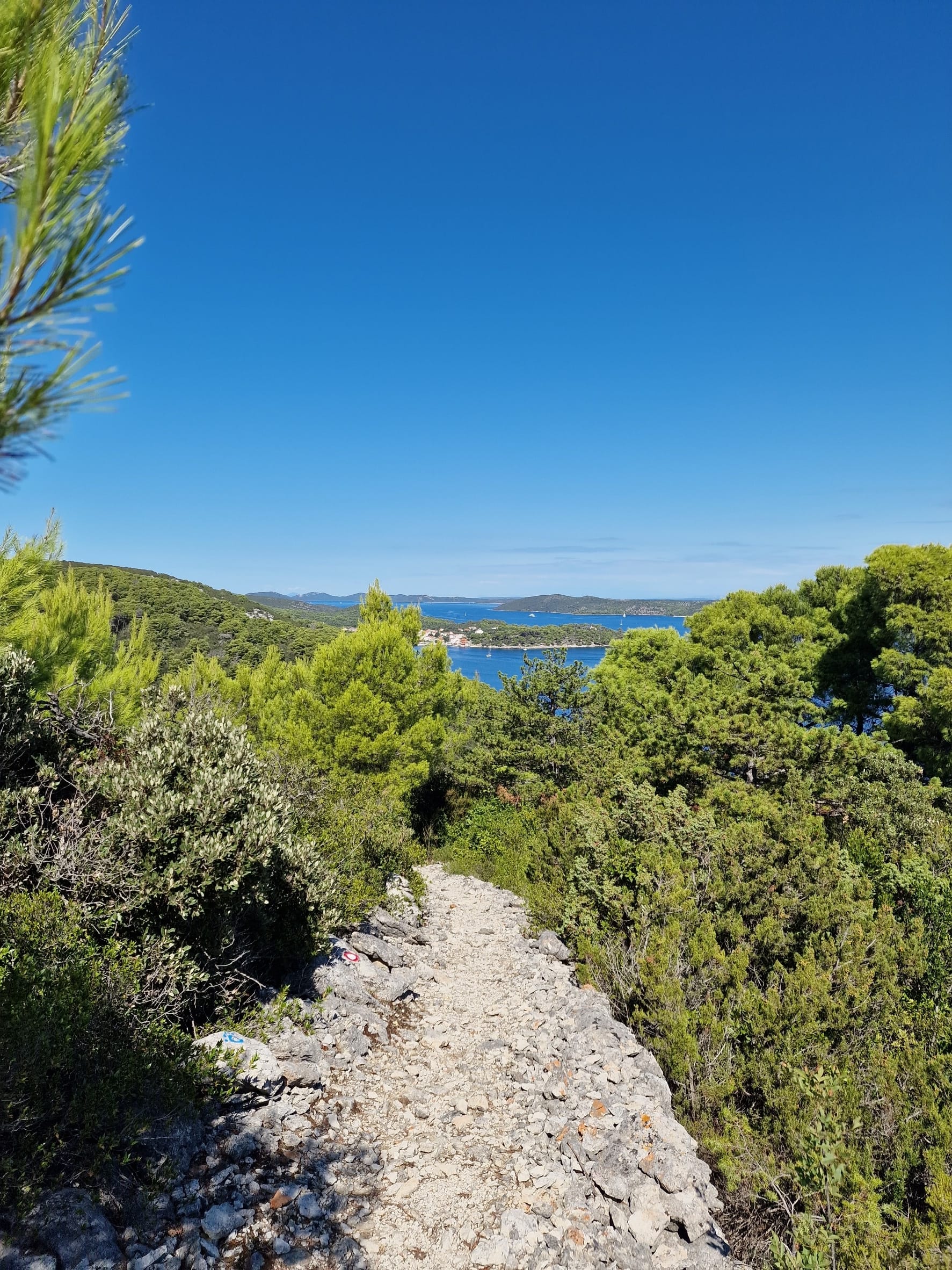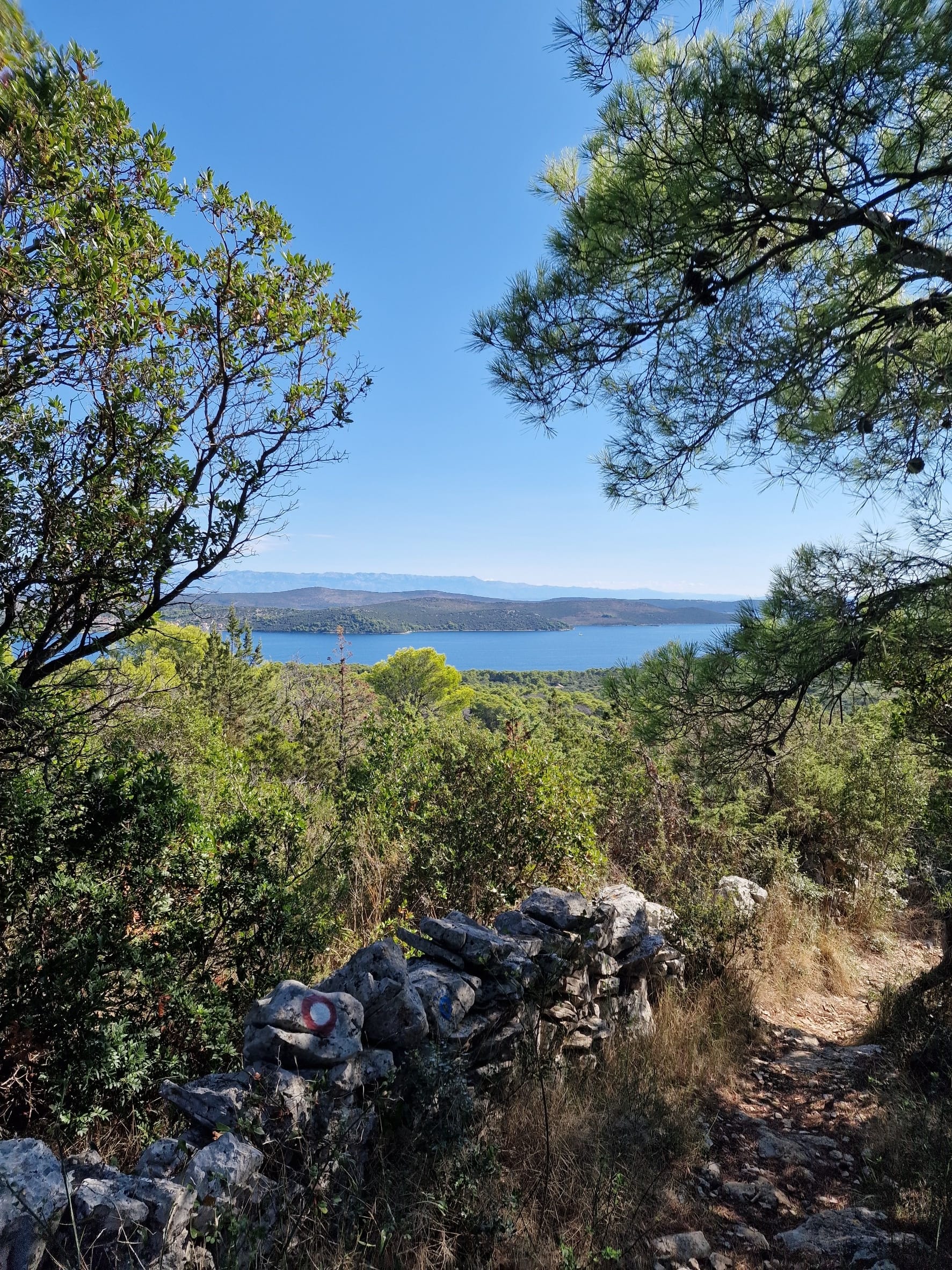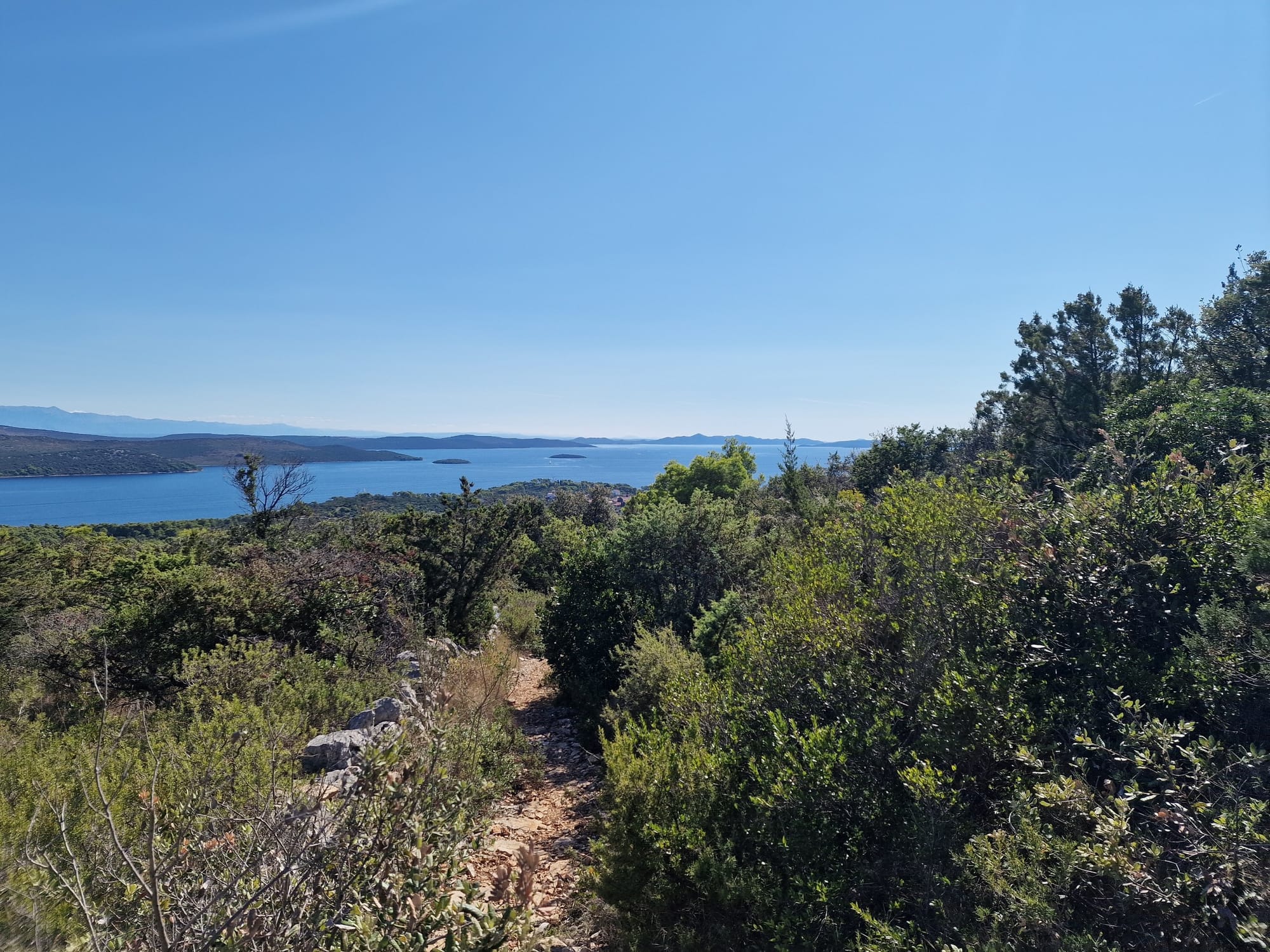 In Božava lief ich am Hafen vorbei und im Anschluss einen traumhaften Küstenpfad in Richtung Süden. Den nächstmöglichen Pfad kletterte ich erneute auf einen Bergrücken, um meinen Rückweg anzutreten. Ich kam an einer kleinen Kapelle vorbei und musste dann leider, mangels eines alternativen Wanderwegs an der Straße entlang.
