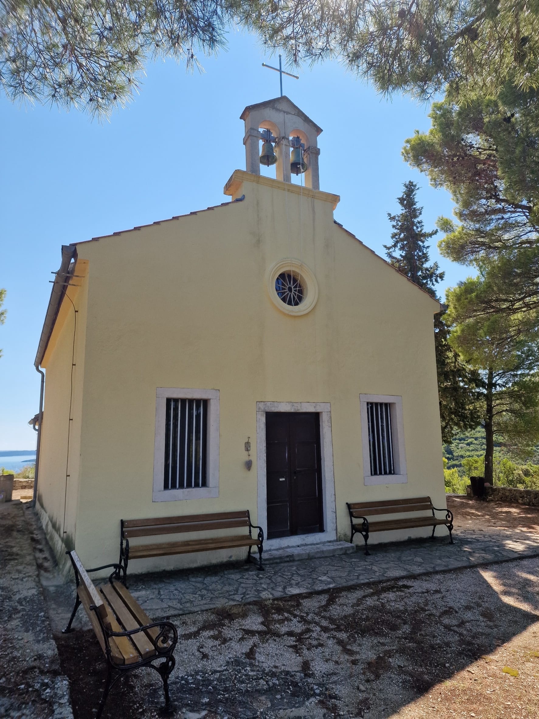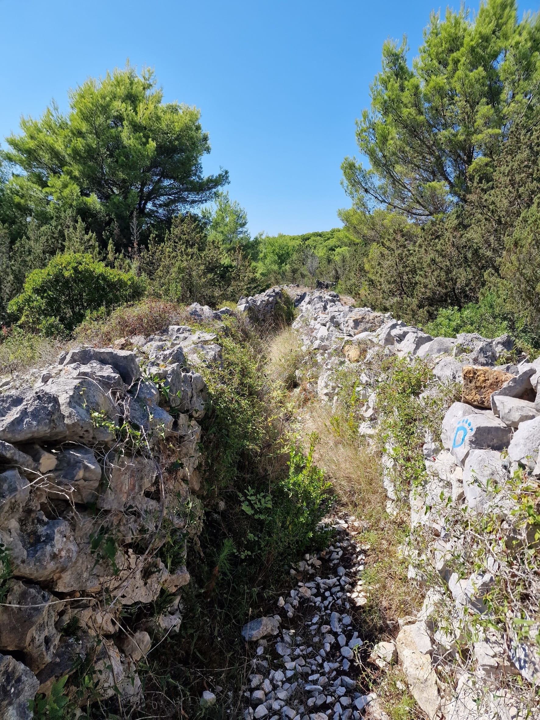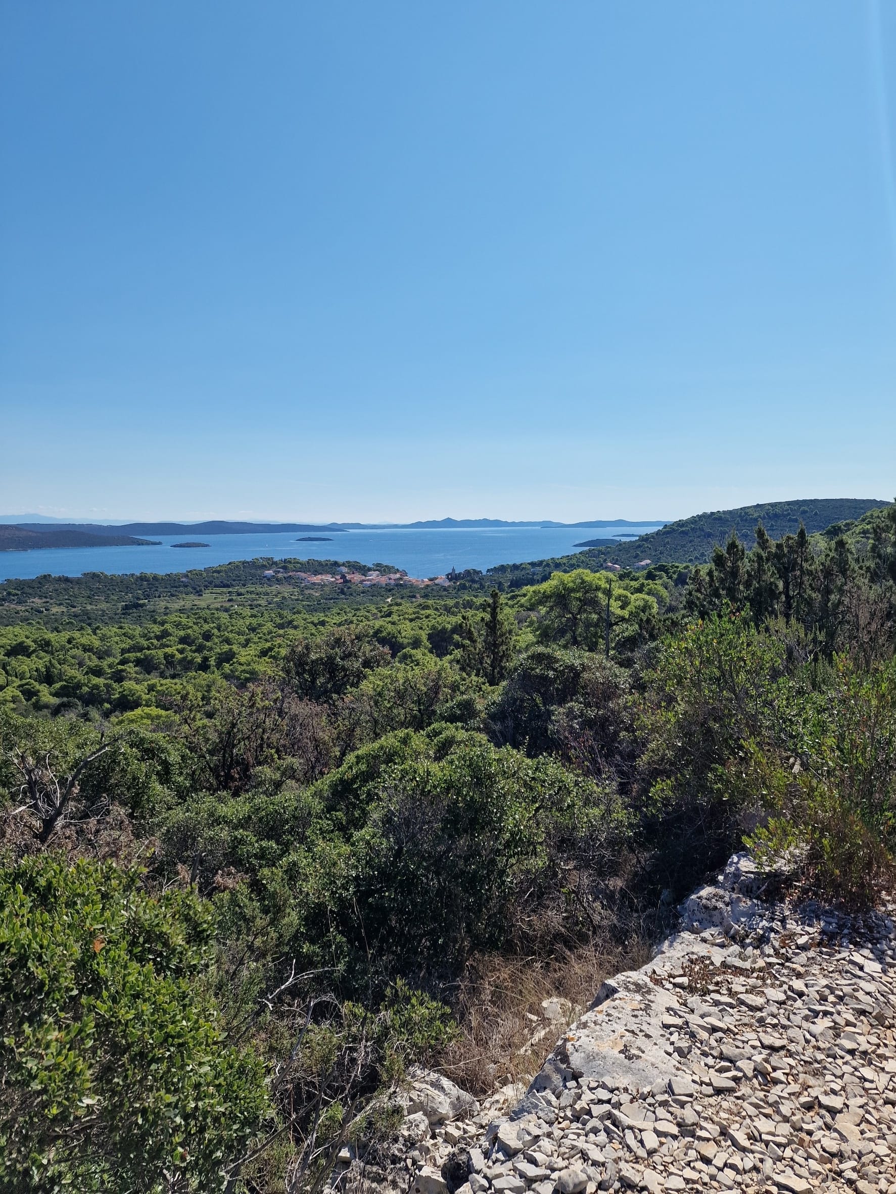 In Božava lief ich am Hafen vorbei und im Anschluss einen traumhaften Küstenpfad in Richtung Süden. Den nächstmöglichen Pfad kletterte ich erneute auf einen Bergrücken, um meinen Rückweg anzutreten. Ich kam an einer kleinen Kapelle vorbei und musste dann leider, mangels eines alternativen Wanderwegs an der Straße entlang.