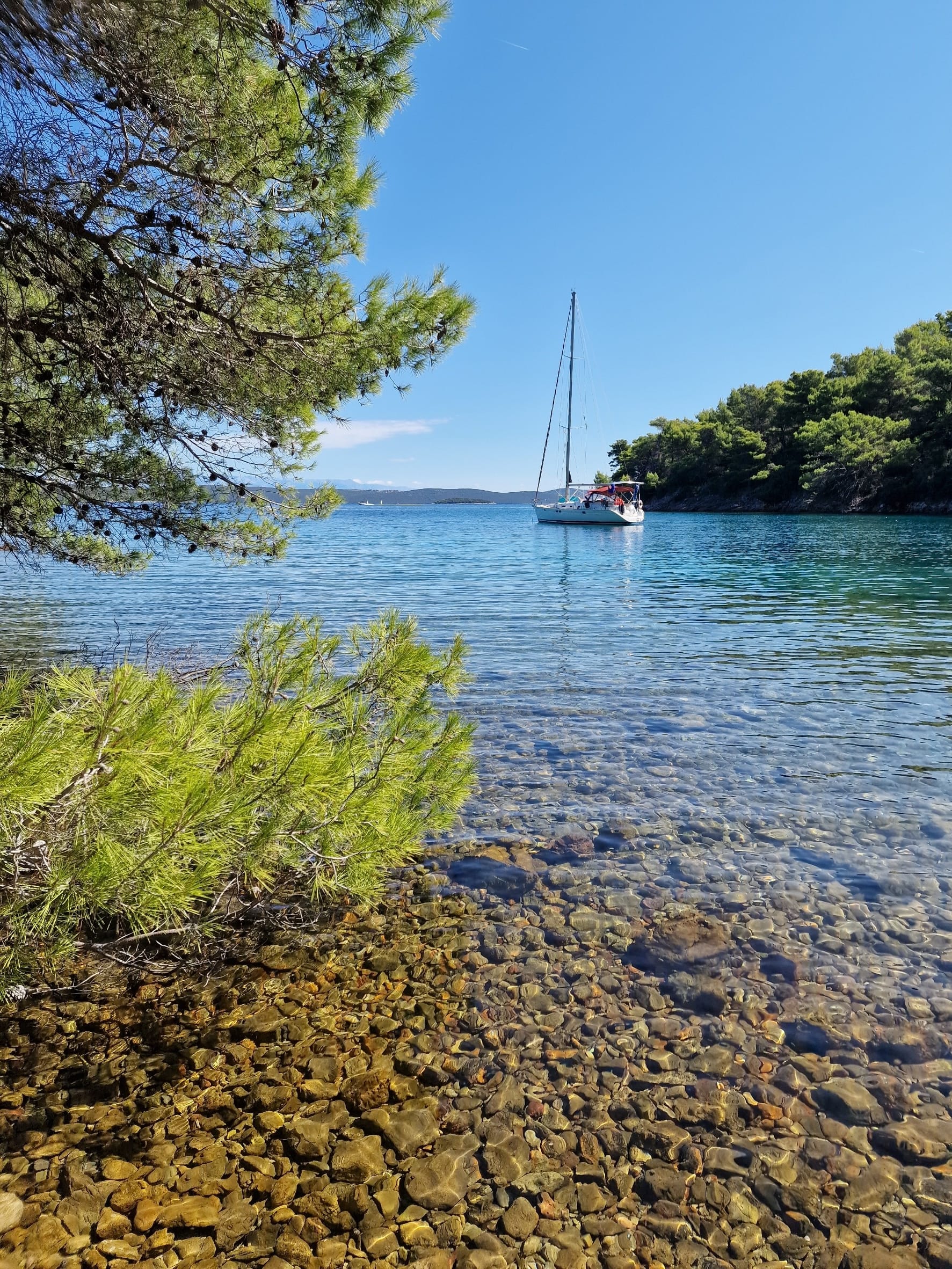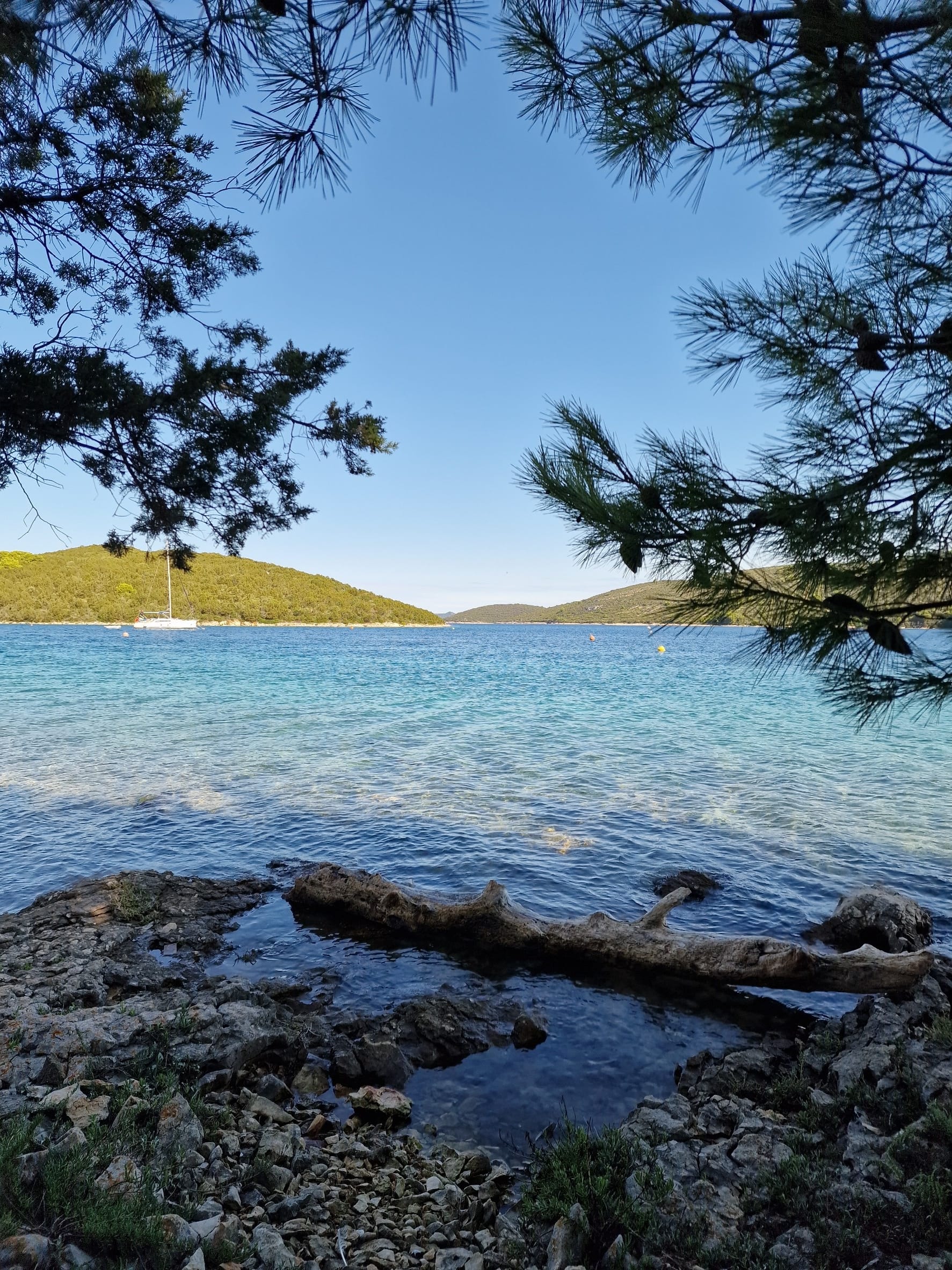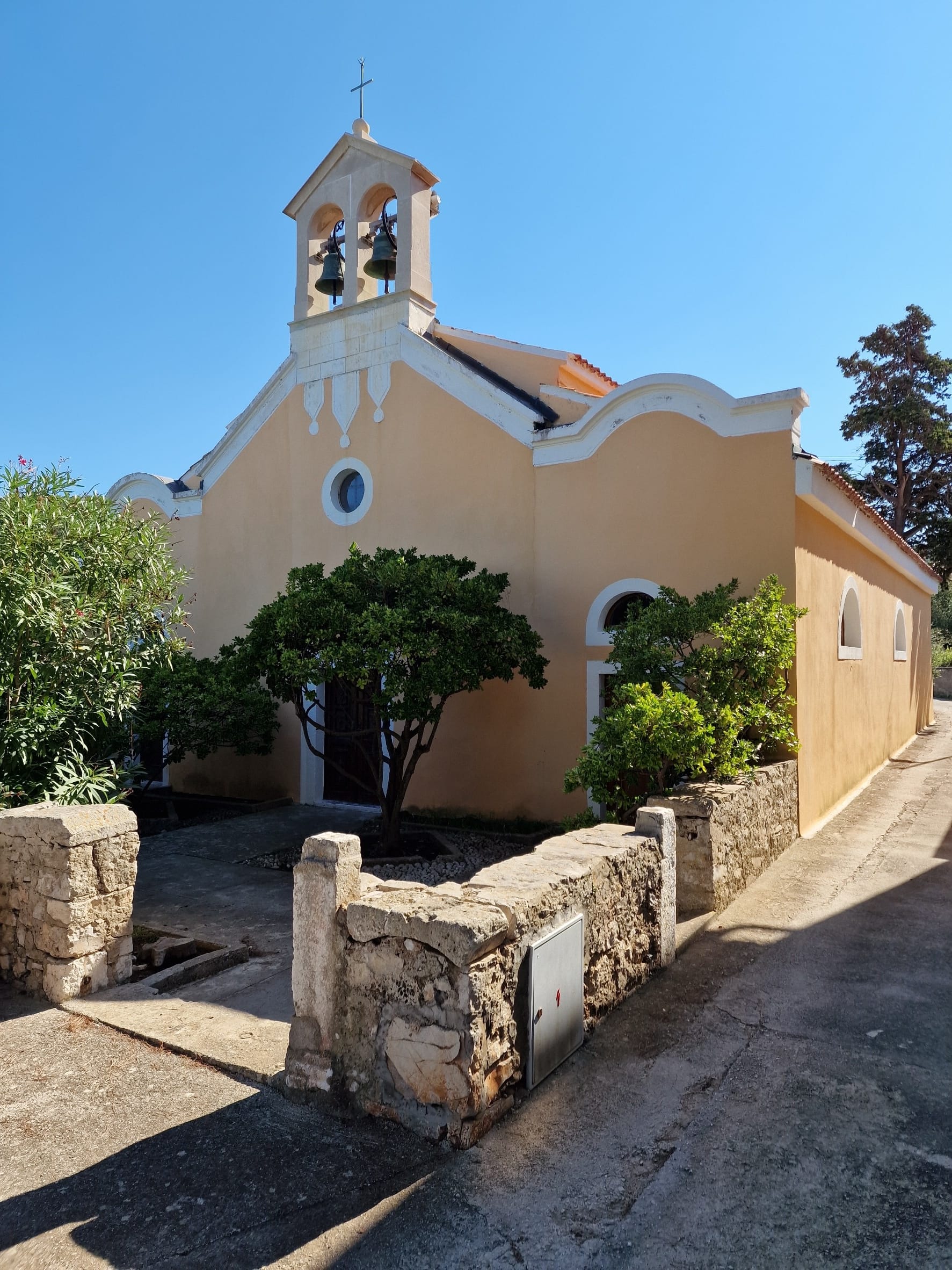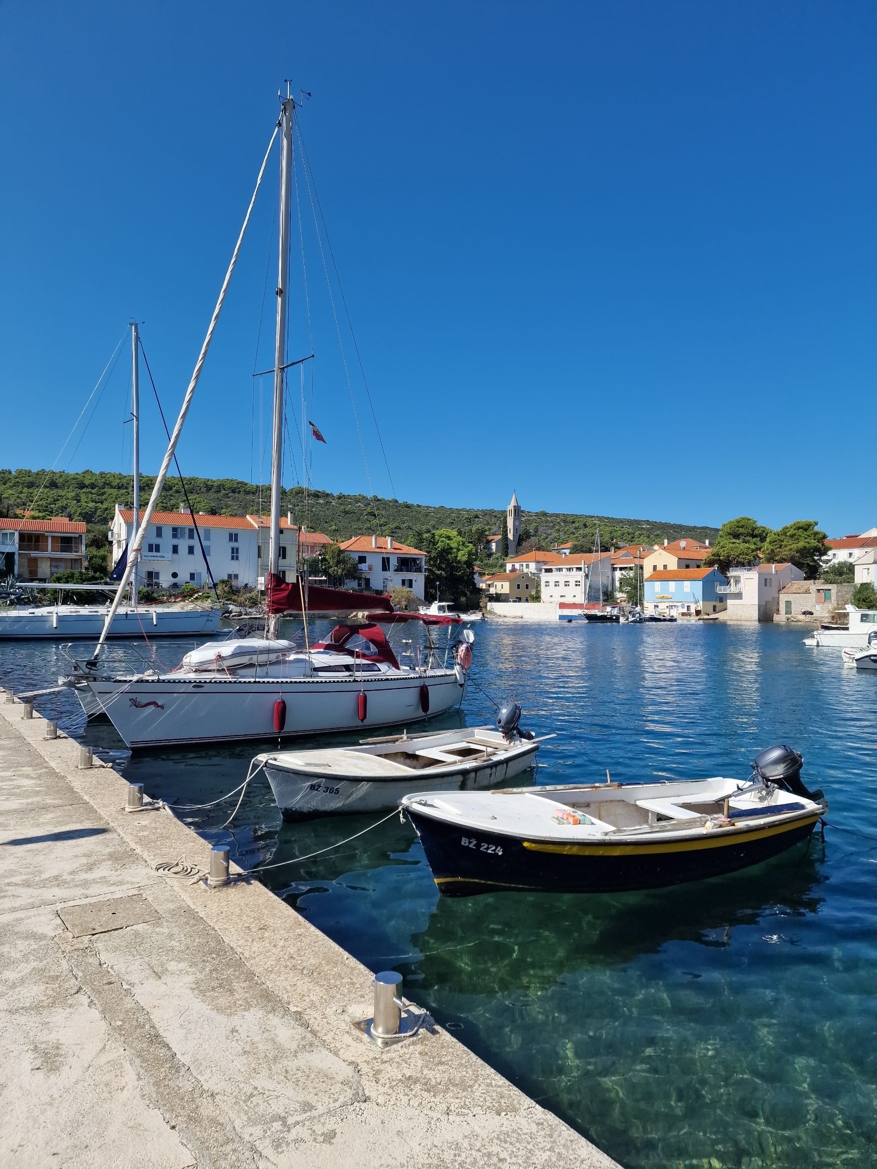 In Božava lief ich am Hafen vorbei und im Anschluss einen traumhaften Küstenpfad in Richtung Süden. Den nächstmöglichen Pfad kletterte ich erneute auf einen Bergrücken, um meinen Rückweg anzutreten. Ich kam an einer kleinen Kapelle vorbei und musste dann leider, mangels eines alternativen Wanderwegs an der Straße entlang.