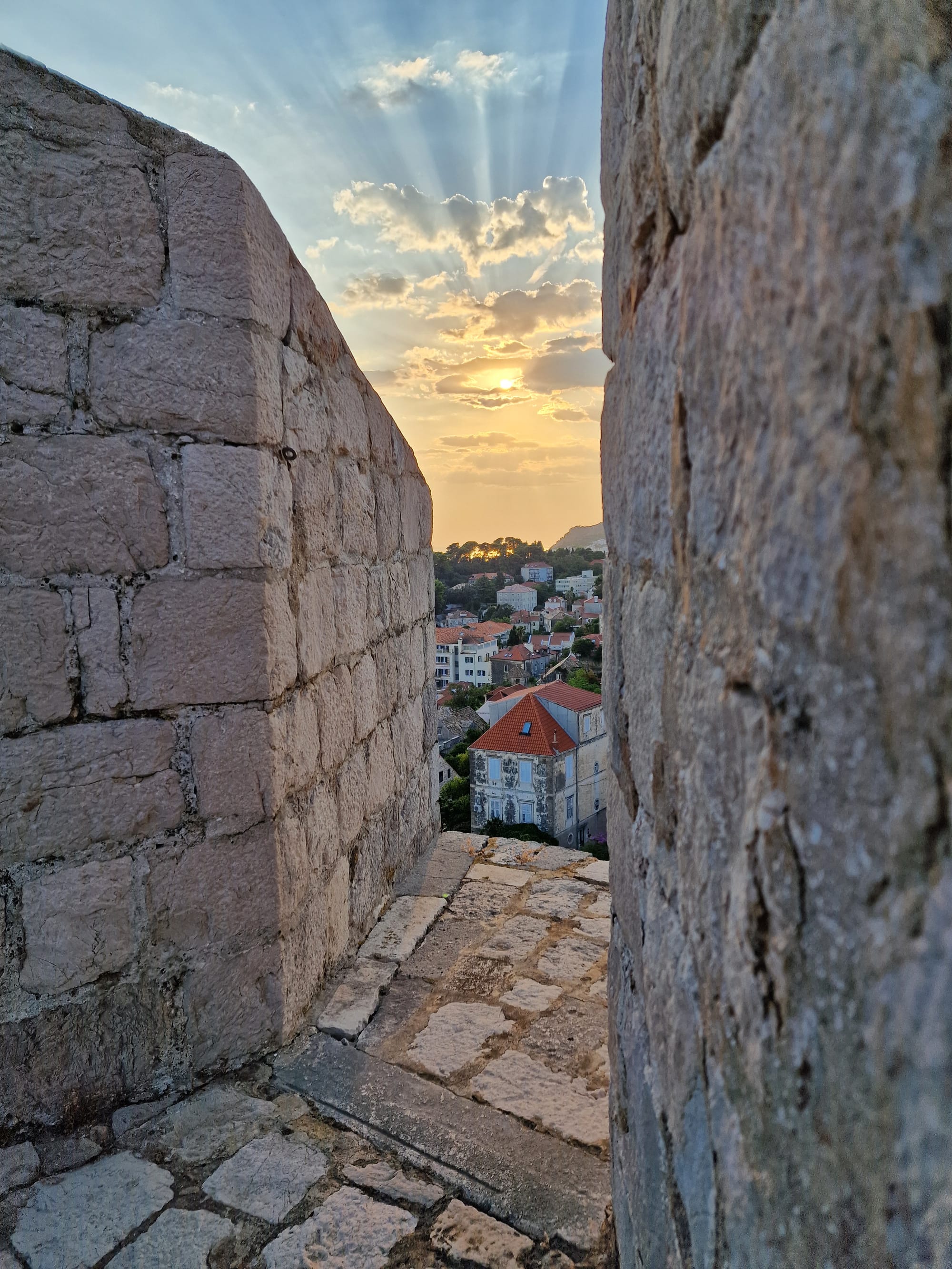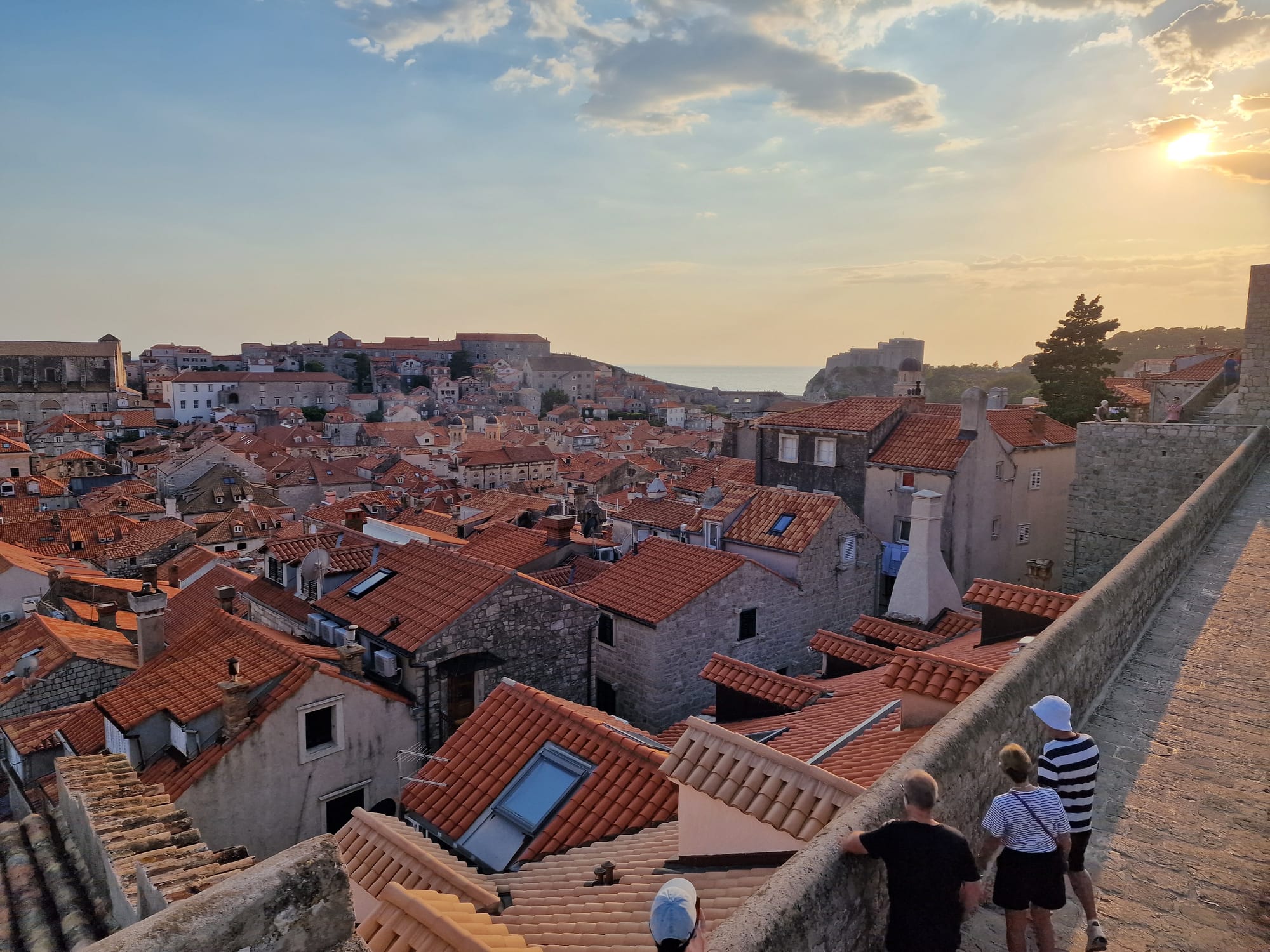 Auf dieser Stadtmauer kann man einen Rundgang machen, wir waren in den Abendstunden dort und konnten daher die untergehende Sonne erleben, die die Dächer der historischen Altstadt in ein zauberhaftes Licht hüllte.