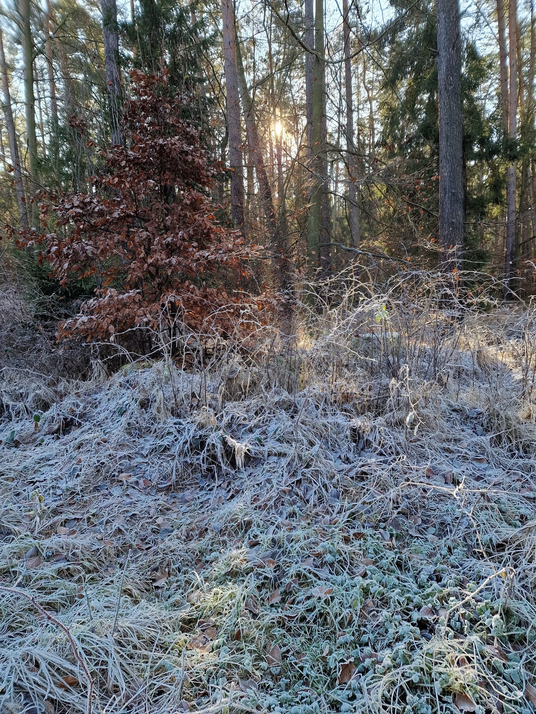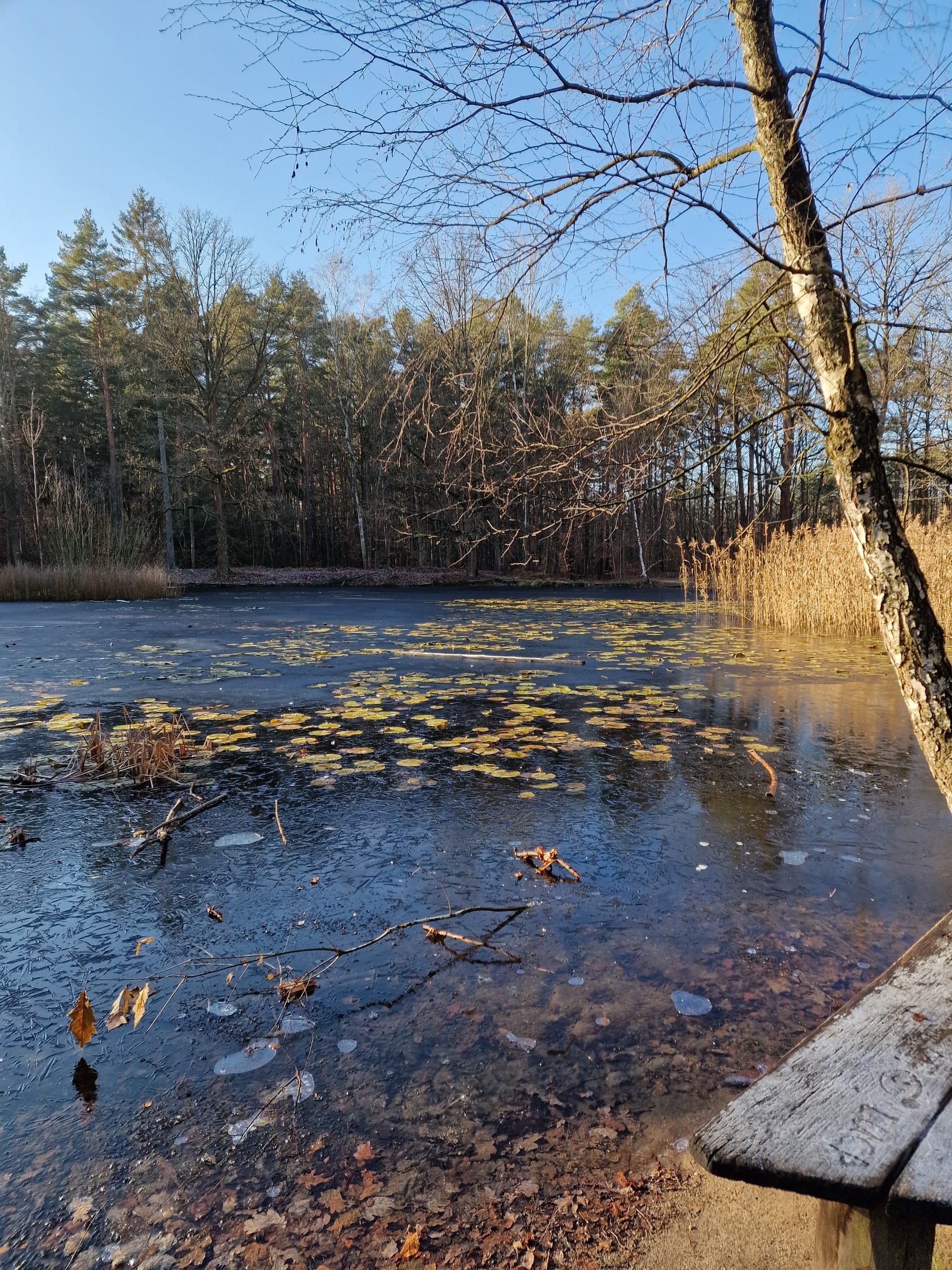 Am ersten Dezember nutzte ich das schöne Wetter und wanderte eine Runde durch die Dresdner Heide. Eine zauberhafte, gefrorene Natur bot sich mir auf diesem Weg.