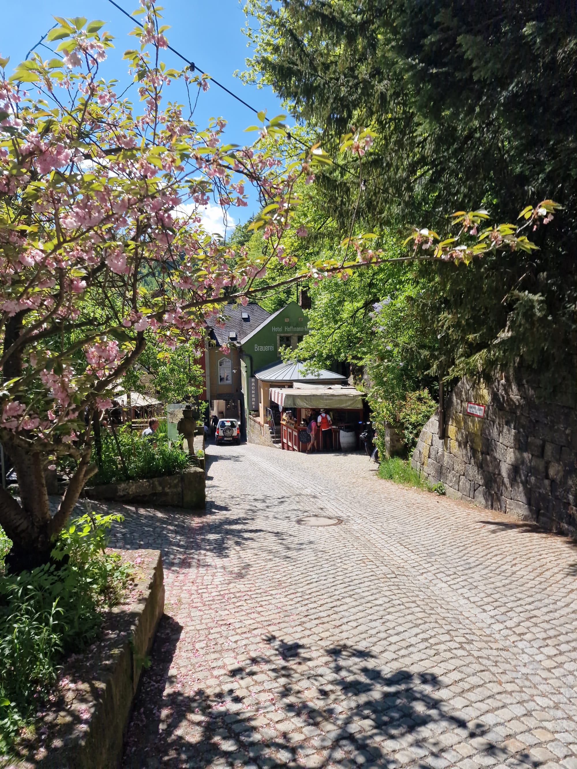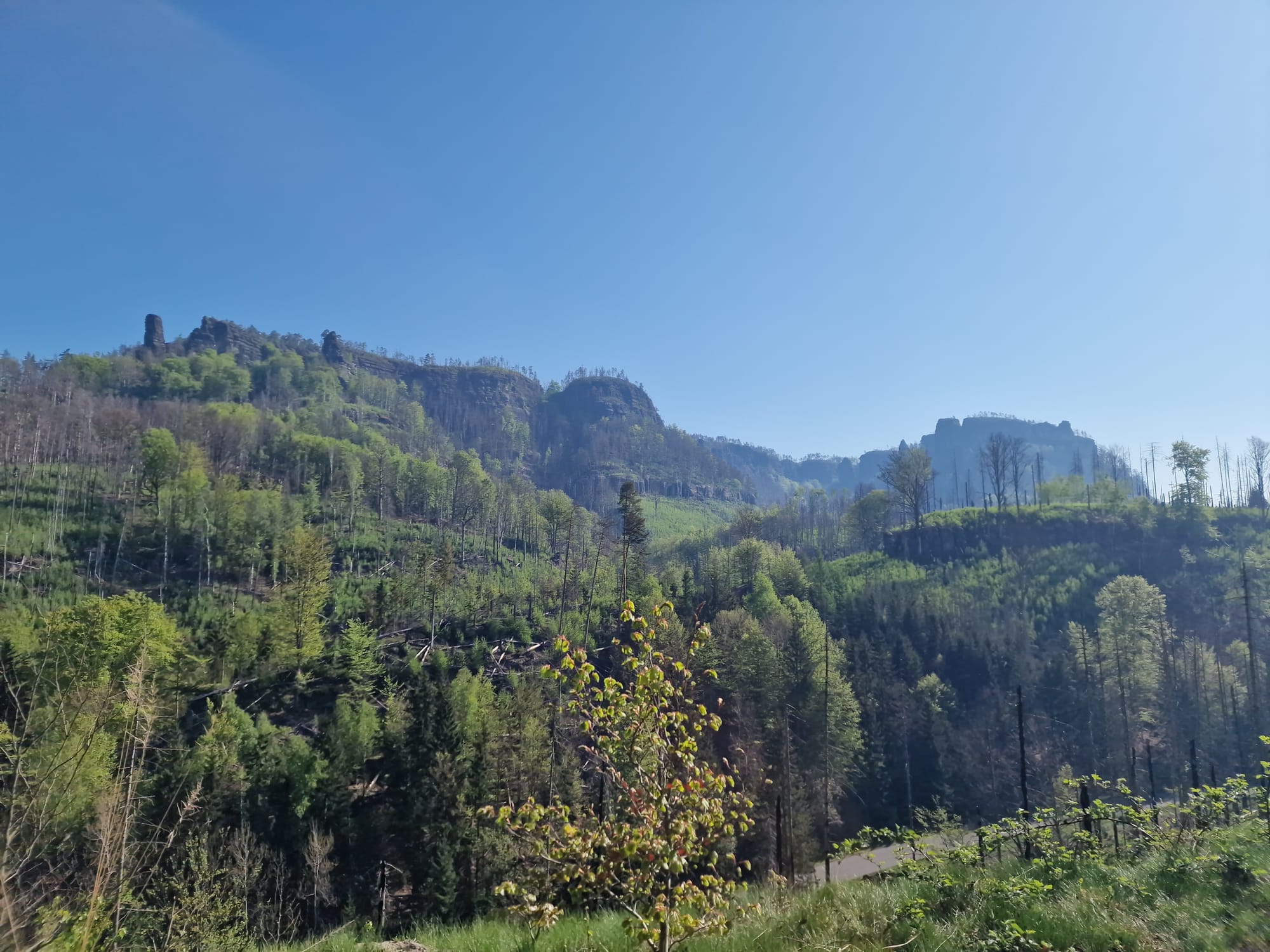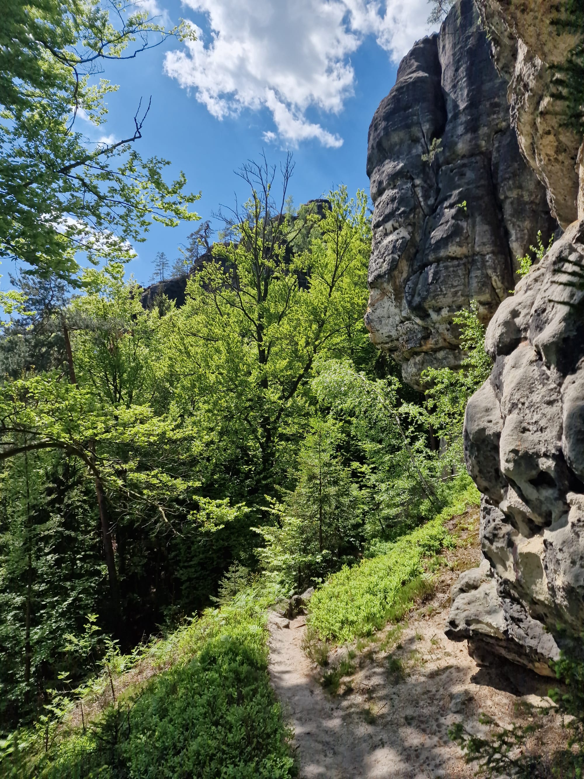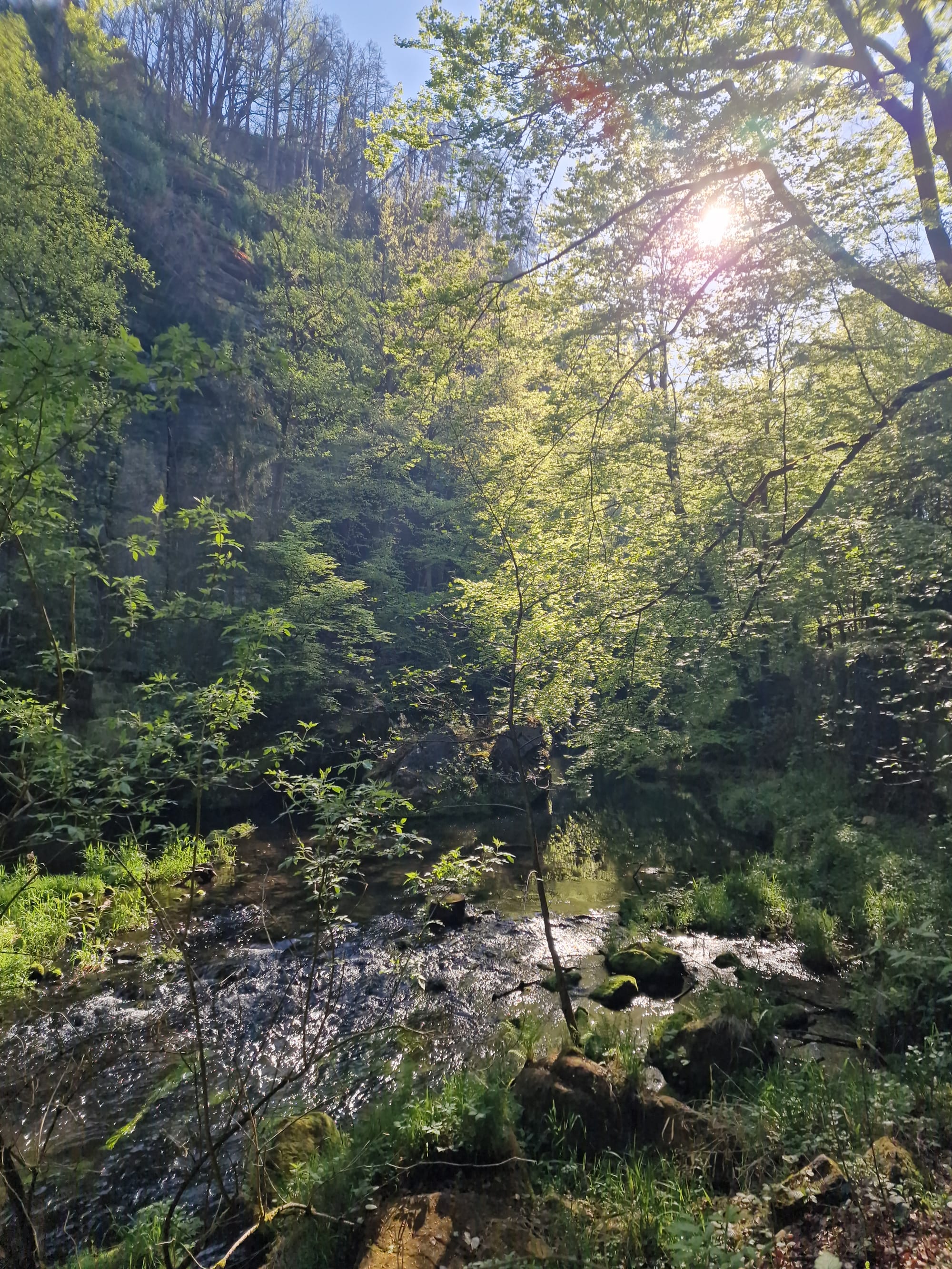 Am ersten Mai verhieß der Wetterbericht nur strahlenden Sonnenschein und so machte ich mich beizeiten auf und fuhr mit dem Auto in meine geliebte Sächsische Schweiz. Ich parkte in Schmilka und startete auf meine Wanderung, welche mich zunächst über die Grenze nach Hrensko in Tschechien führte.