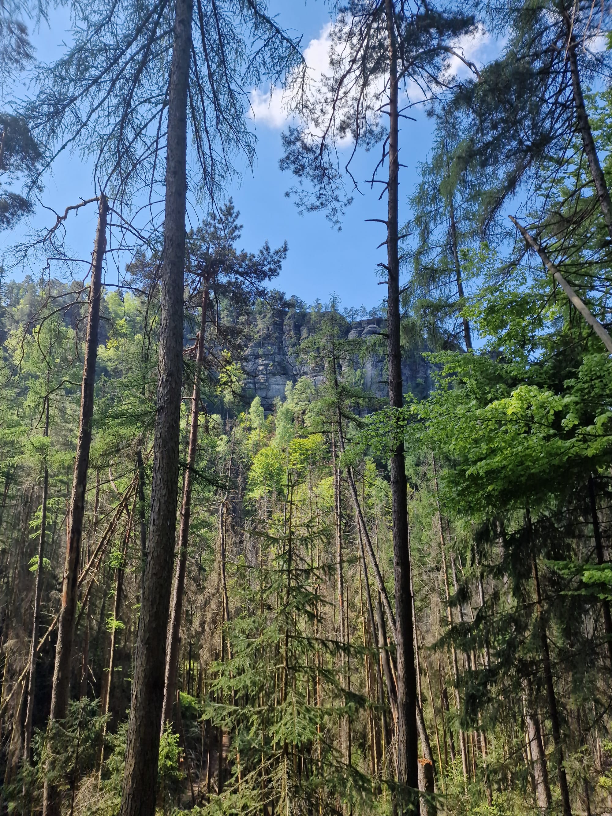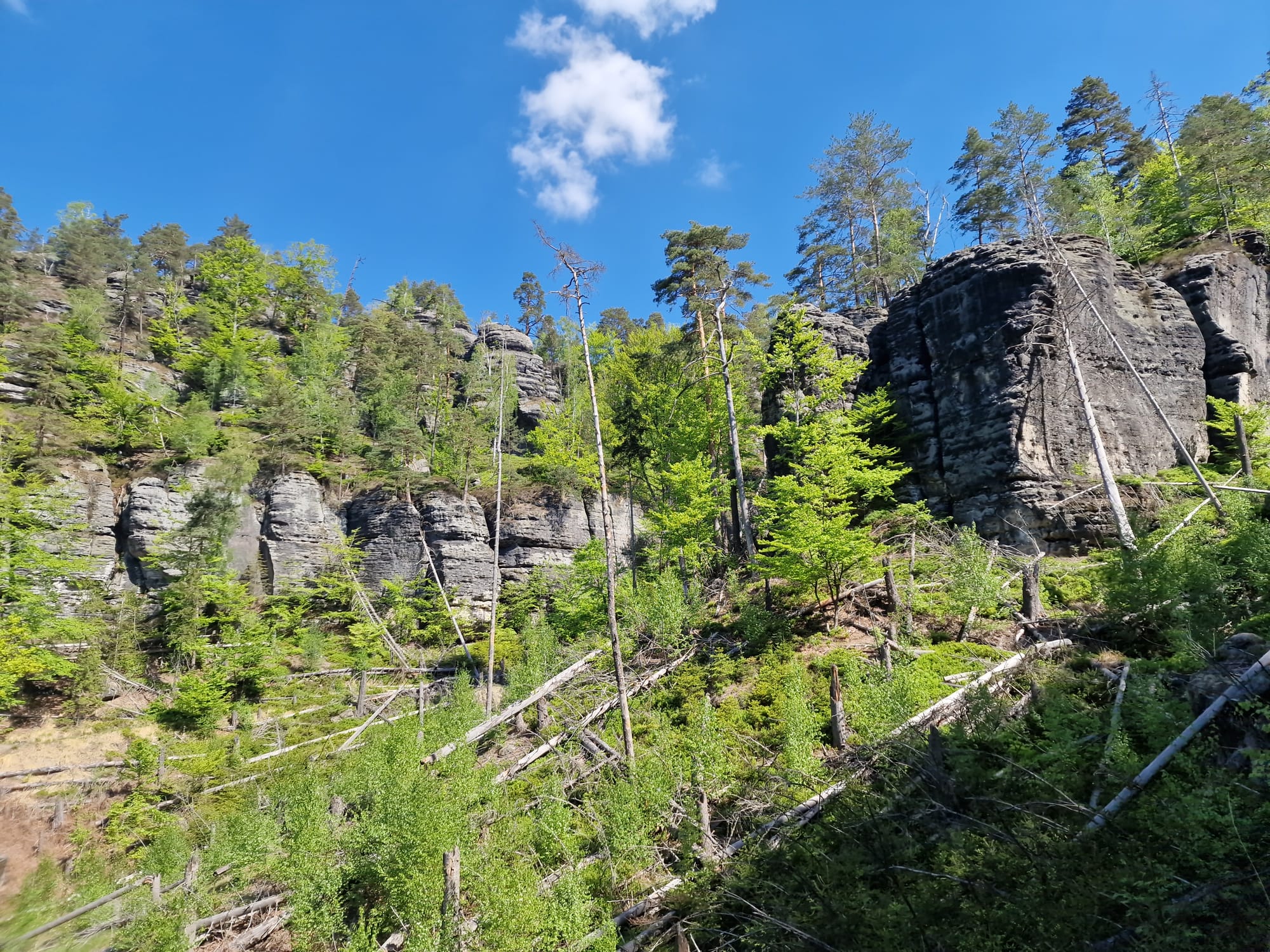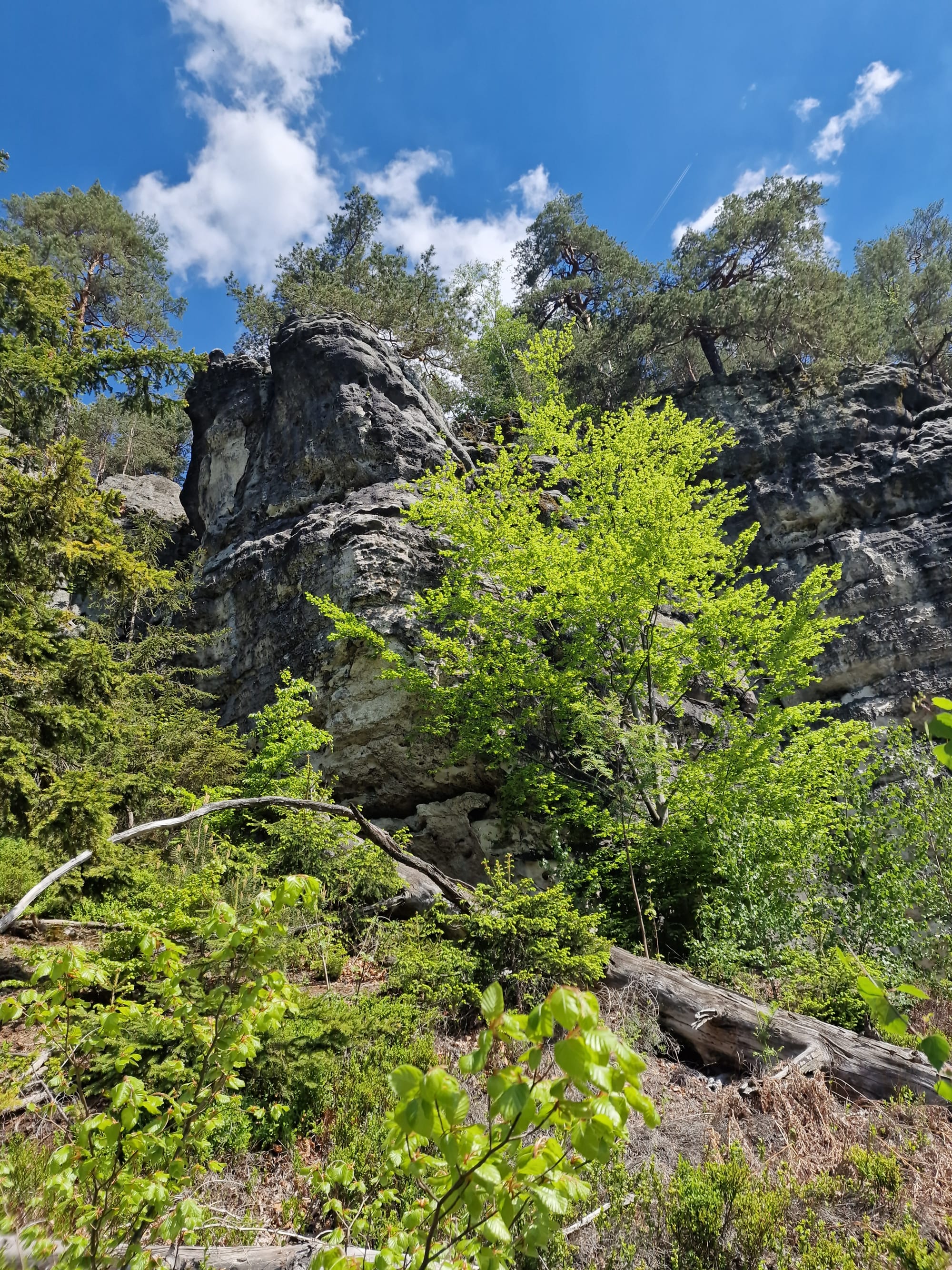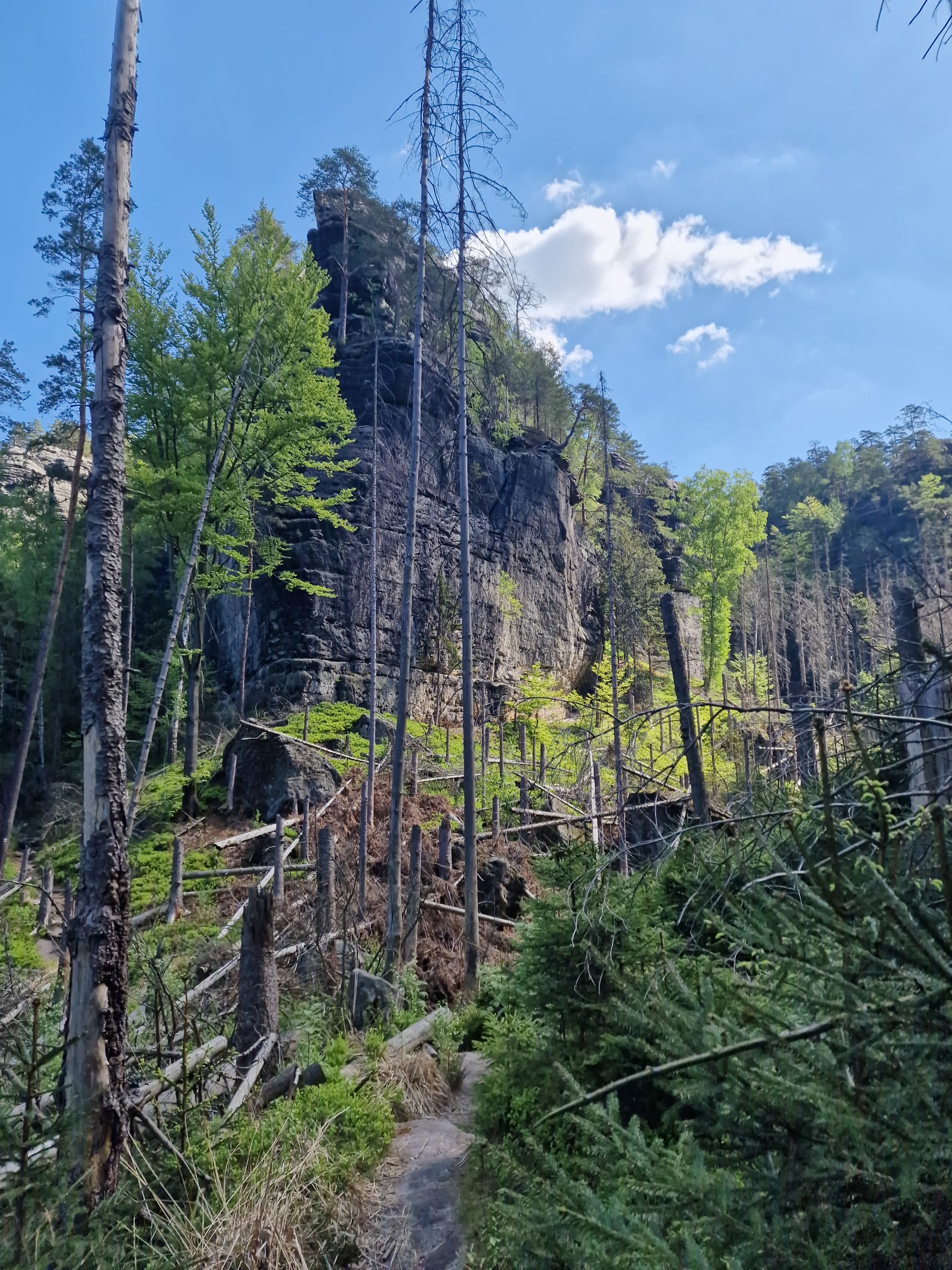 Am ersten Mai verhieß der Wetterbericht nur strahlenden Sonnenschein und so machte ich mich beizeiten auf und fuhr mit dem Auto in meine geliebte Sächsische Schweiz. Ich parkte in Schmilka und startete auf meine Wanderung, welche mich zunächst über die Grenze nach Hrensko in Tschechien führte.