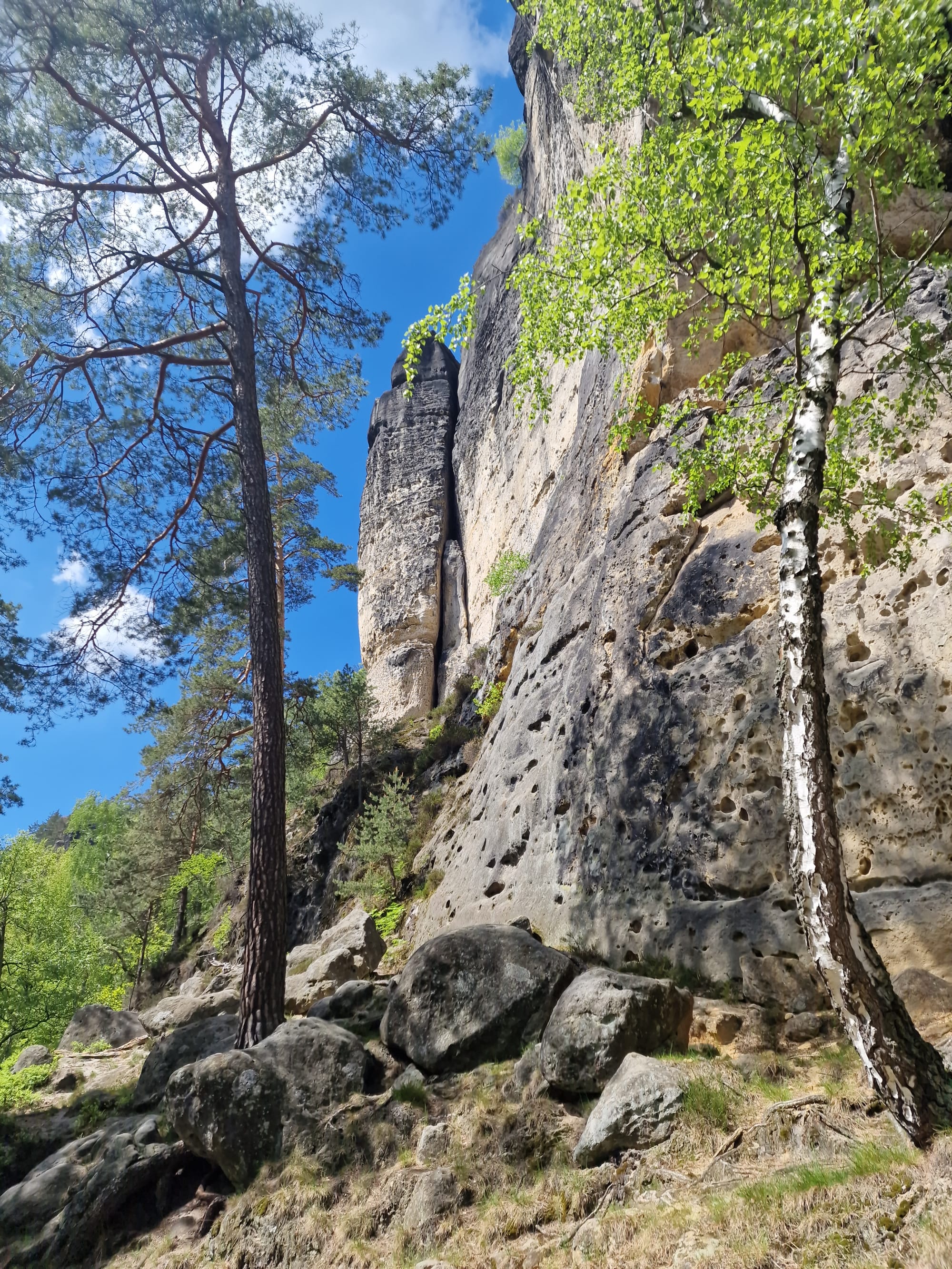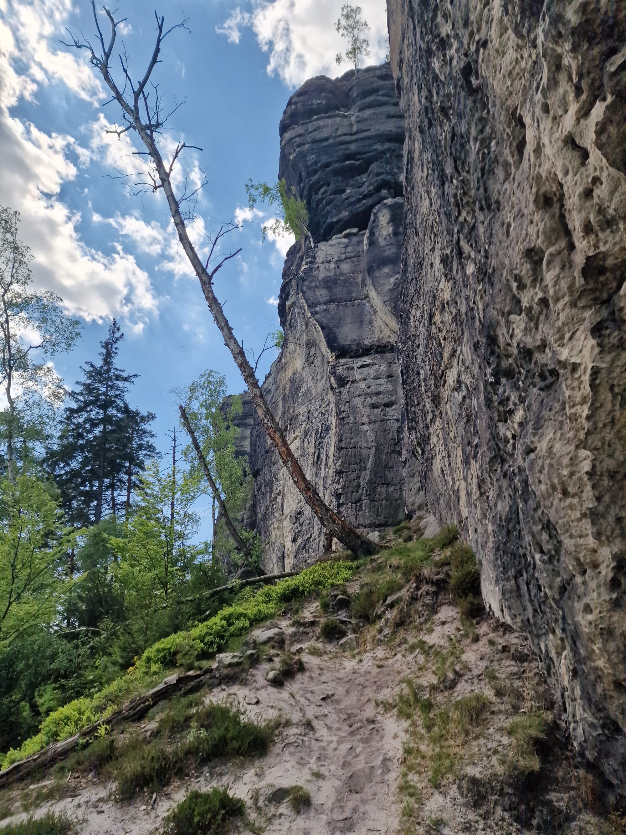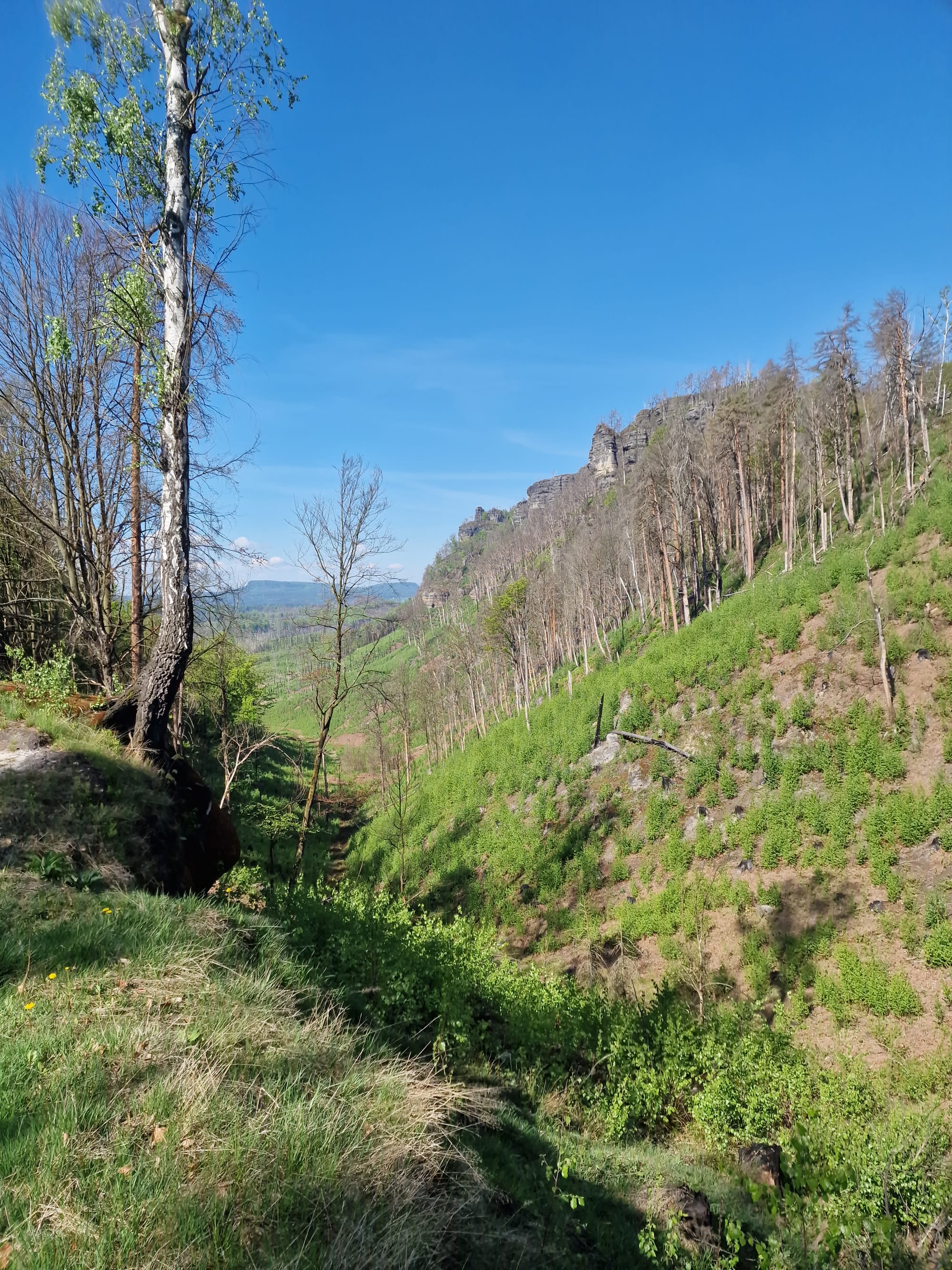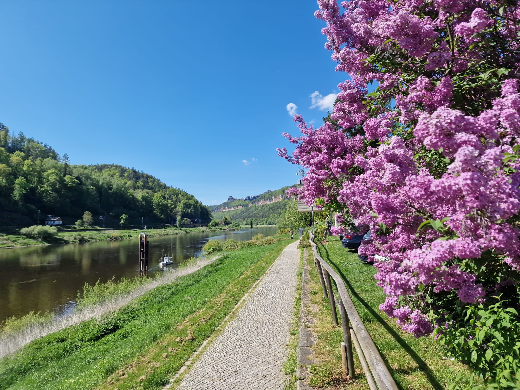 Am ersten Mai verhieß der Wetterbericht nur strahlenden Sonnenschein und so machte ich mich beizeiten auf und fuhr mit dem Auto in meine geliebte Sächsische Schweiz. Ich parkte in Schmilka und startete auf meine Wanderung, welche mich zunächst über die Grenze nach Hrensko in Tschechien führte.