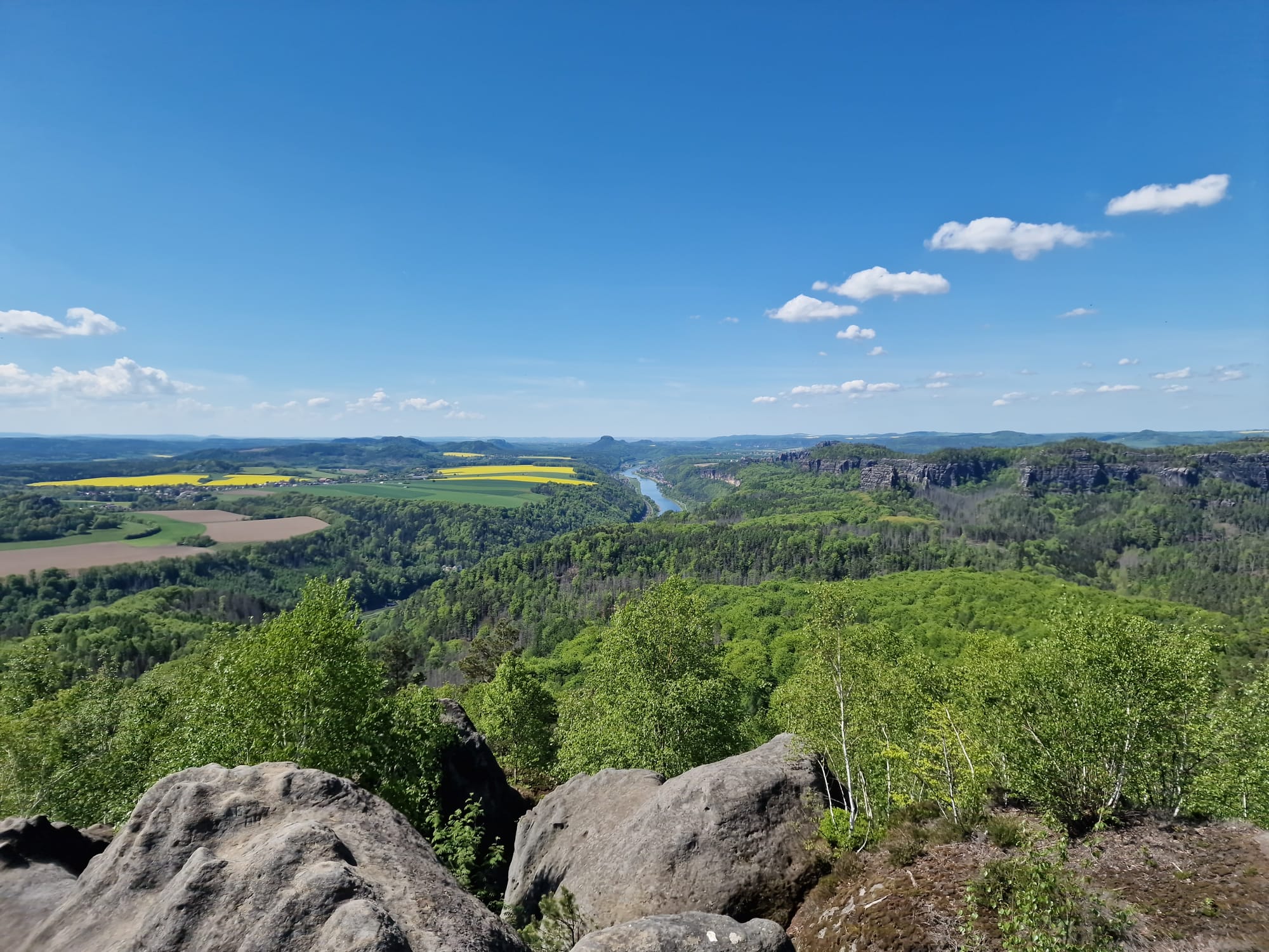 Danach lief ich den Fremdenweg zur Kipphornaussicht am großen Winterberg. Was für eine traumhafte Aussicht sich mir über das Elbtal bot. Im Anschluss stieg ich über den Bergsteig hinab und zurück nach Schmilka.