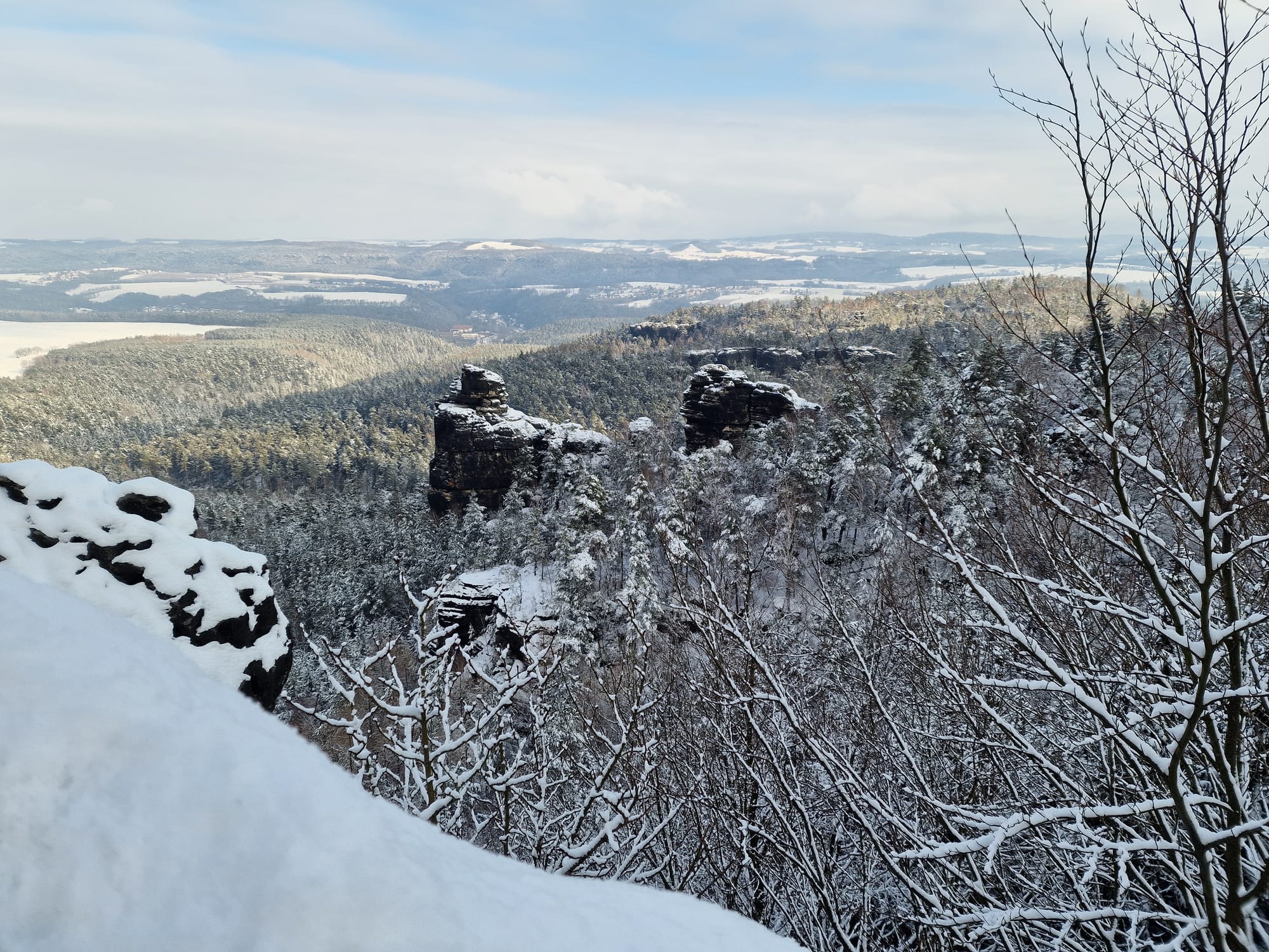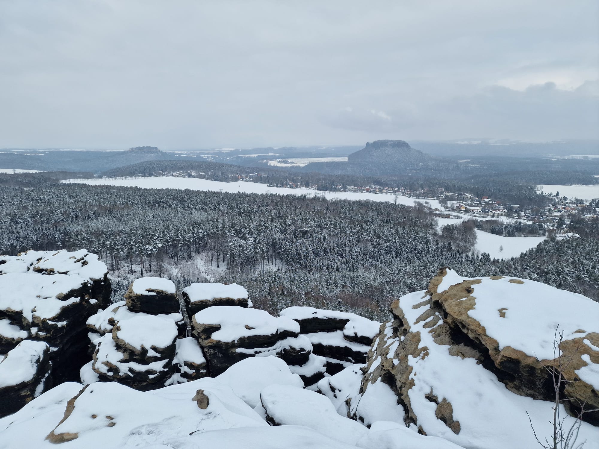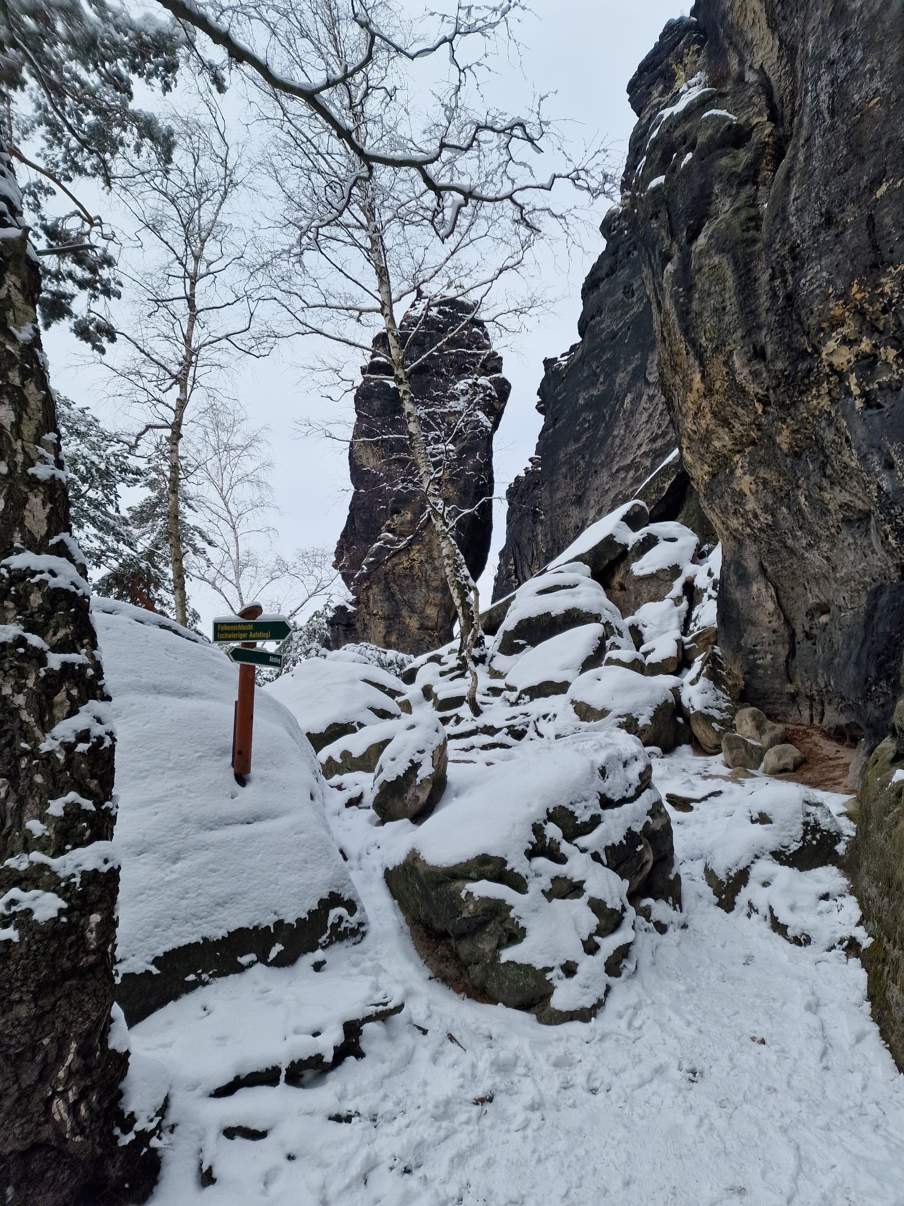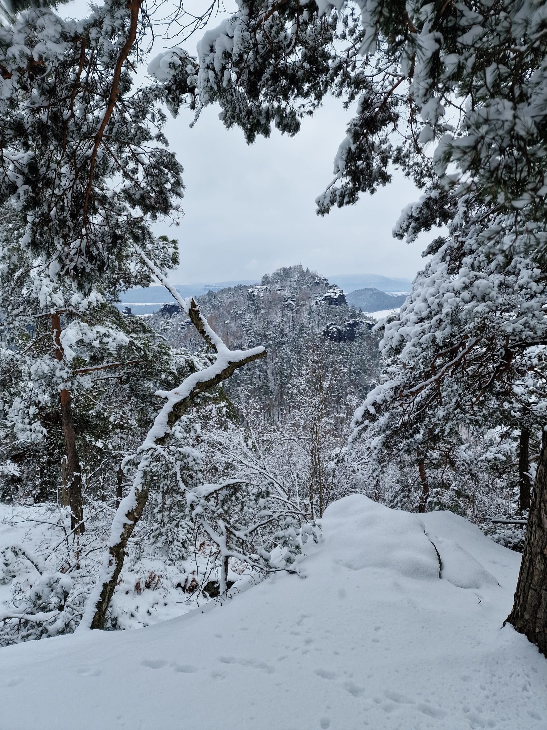 An diesem Wintertag erlebte ich die Sächsische Schweiz in einem zauberhaften weißen Kleid, es kommt nicht so häufig vor, dass so viel Schnee liegt, dass die gesamte Landschaft in dicken Schnee gehüllt wird.