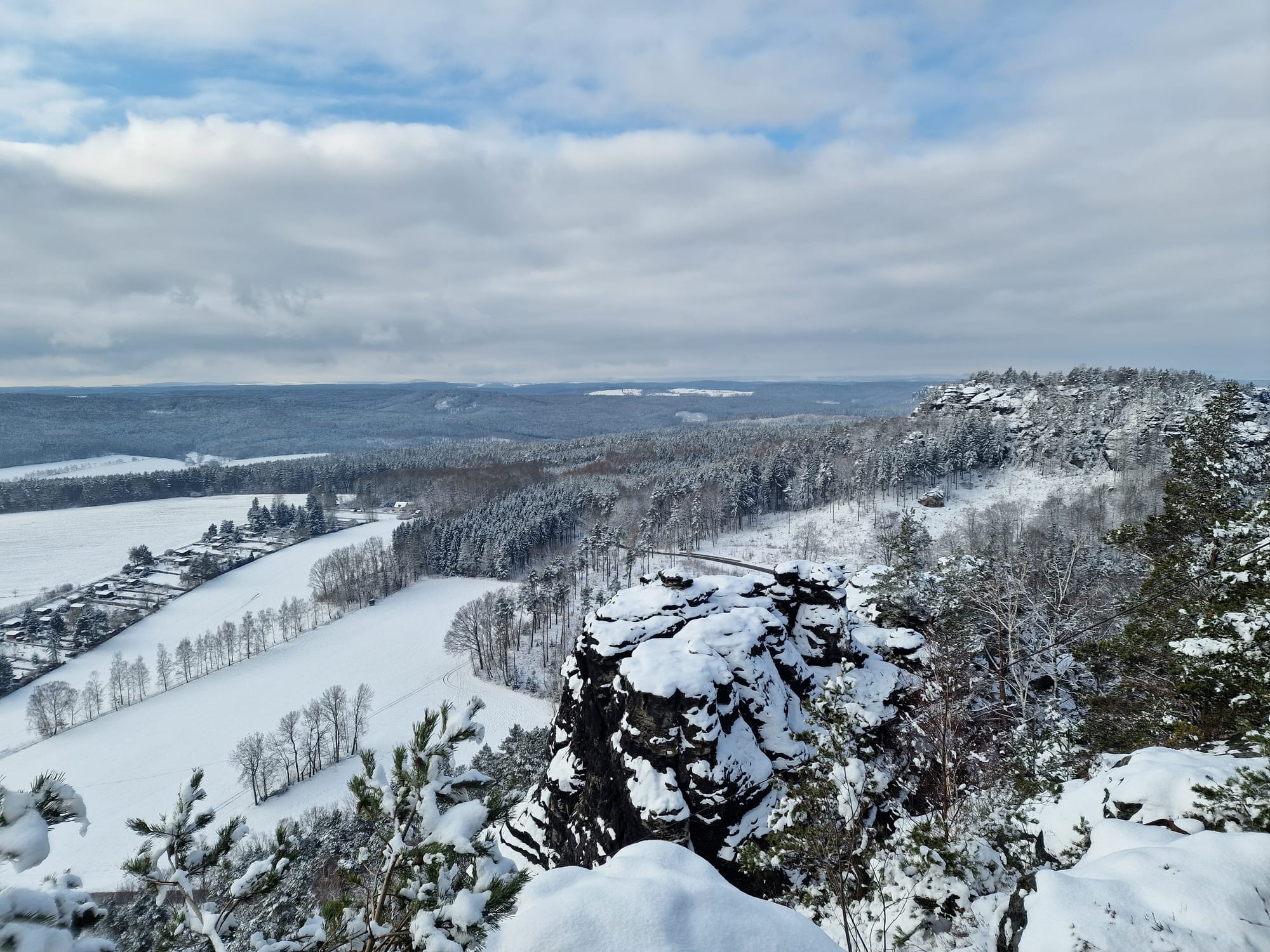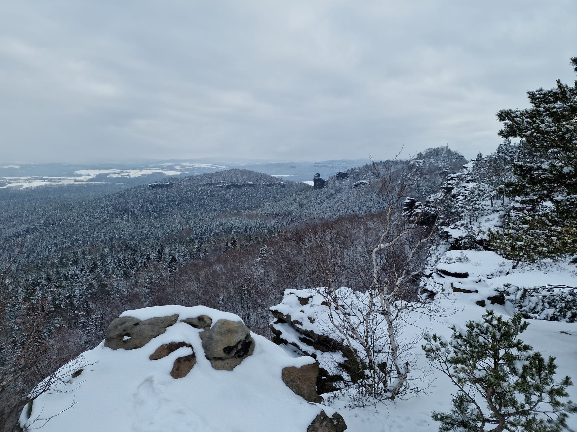 Vom Kleinhennersdorfer Stein ging es danach hinüber zum Papststein, inzwischen kam die Sonne heraus und ließ die ohnehin schon zauberhafte Landschaft noch schöner erscheinen.